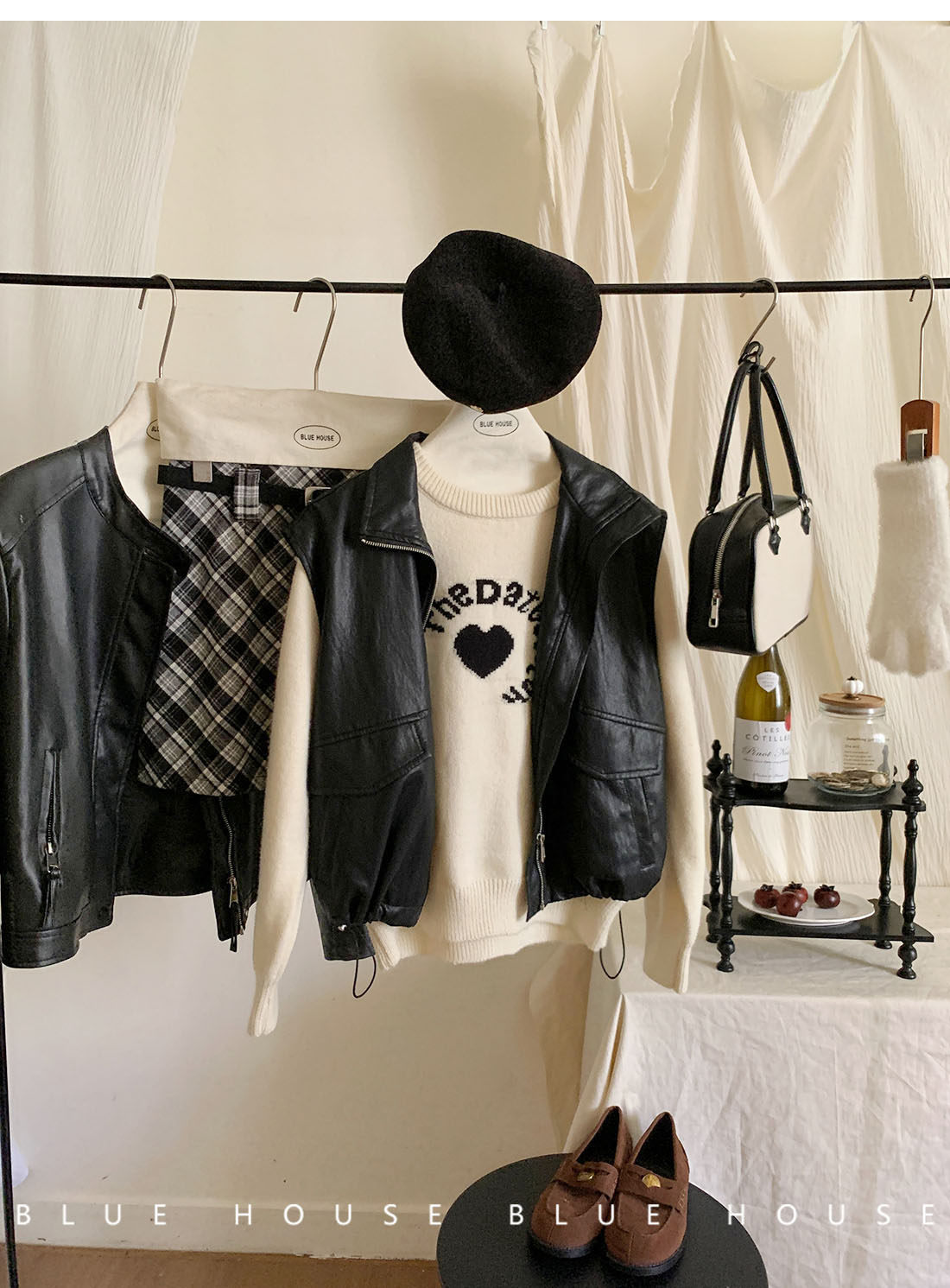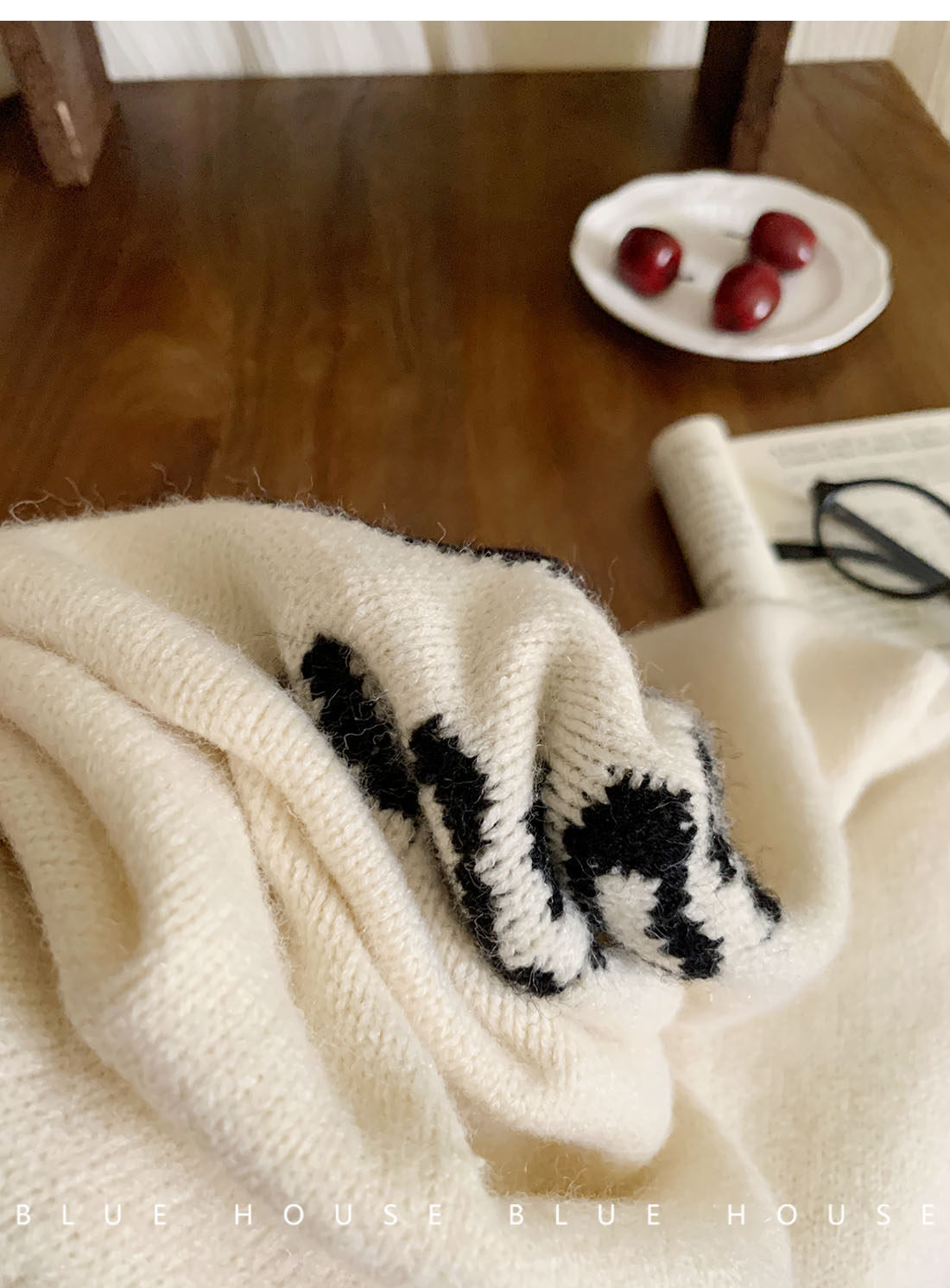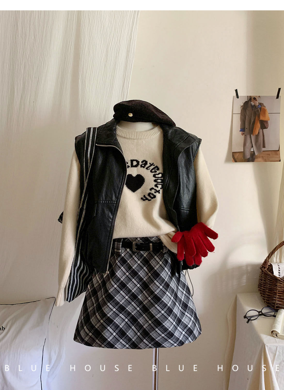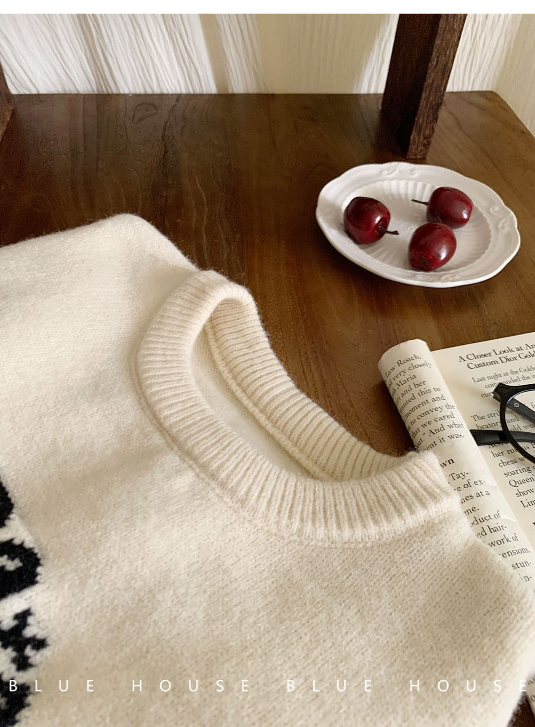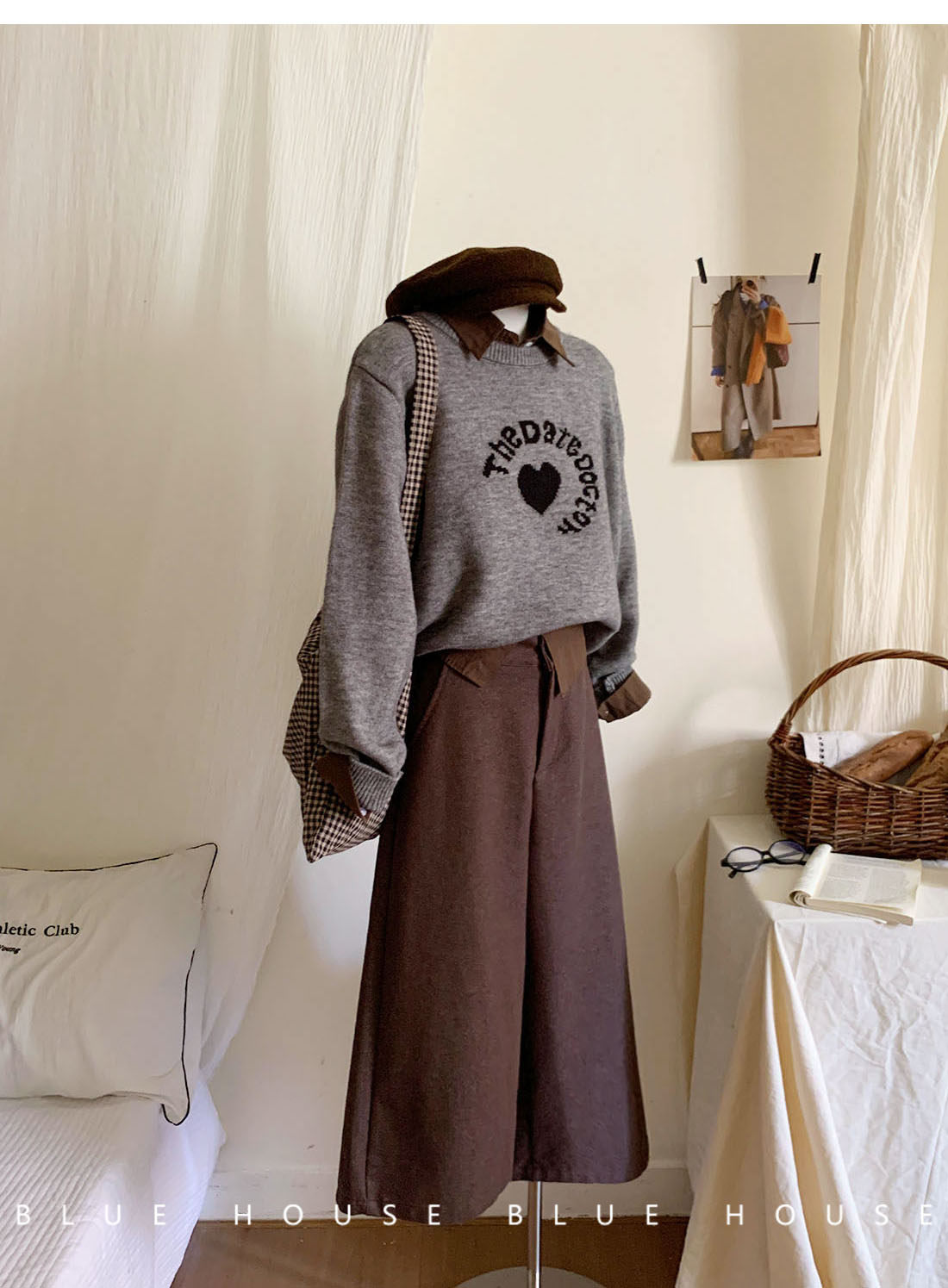 韓系簡約愛心字母提花針織上衣女秋冬季復古寬松外穿內搭套頭毛衣