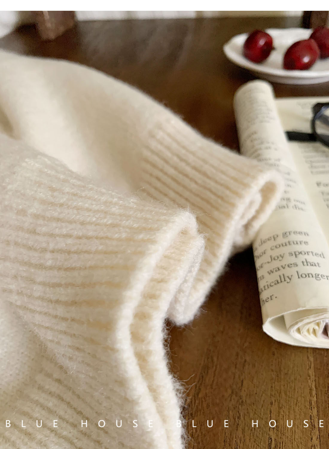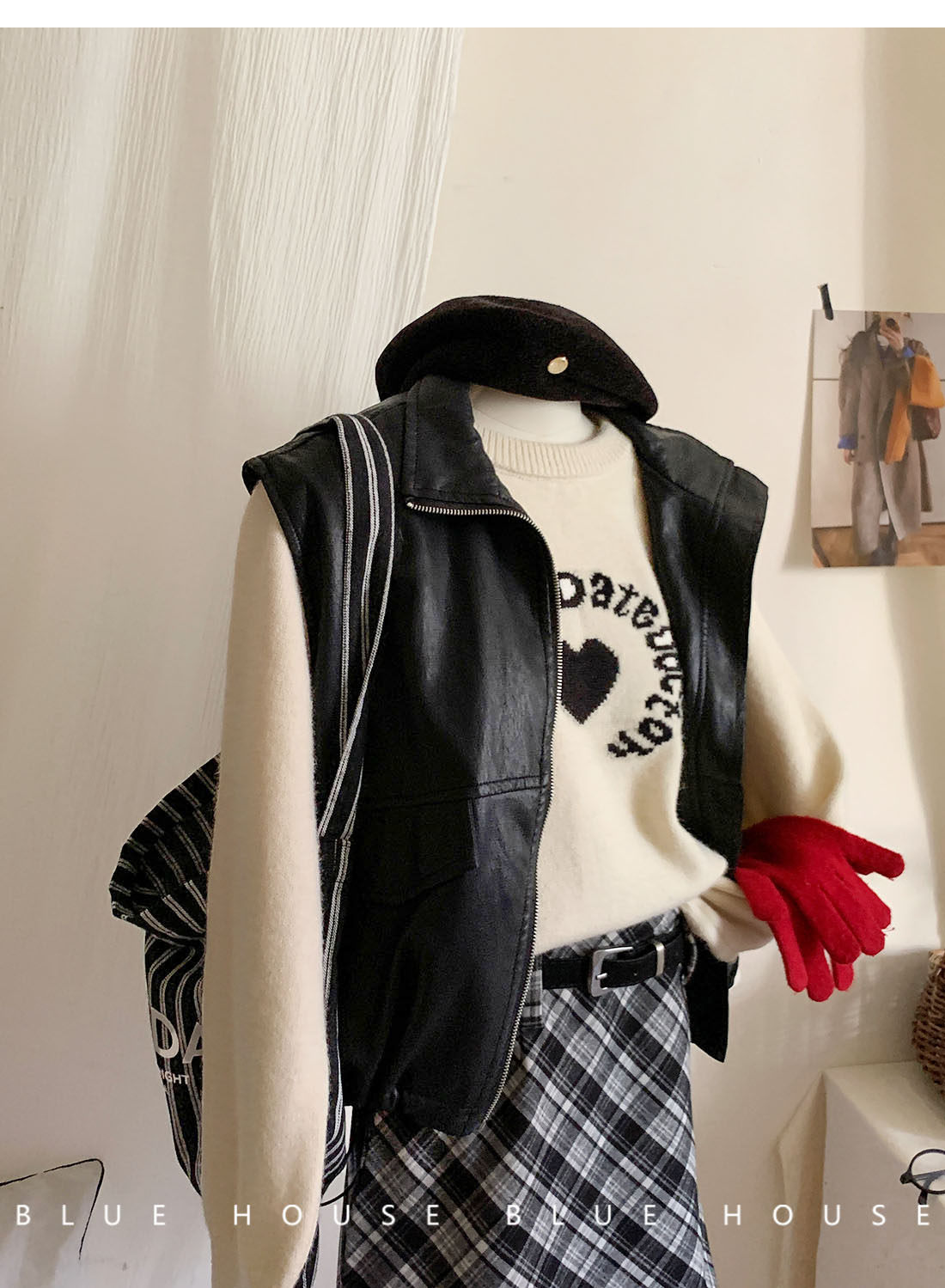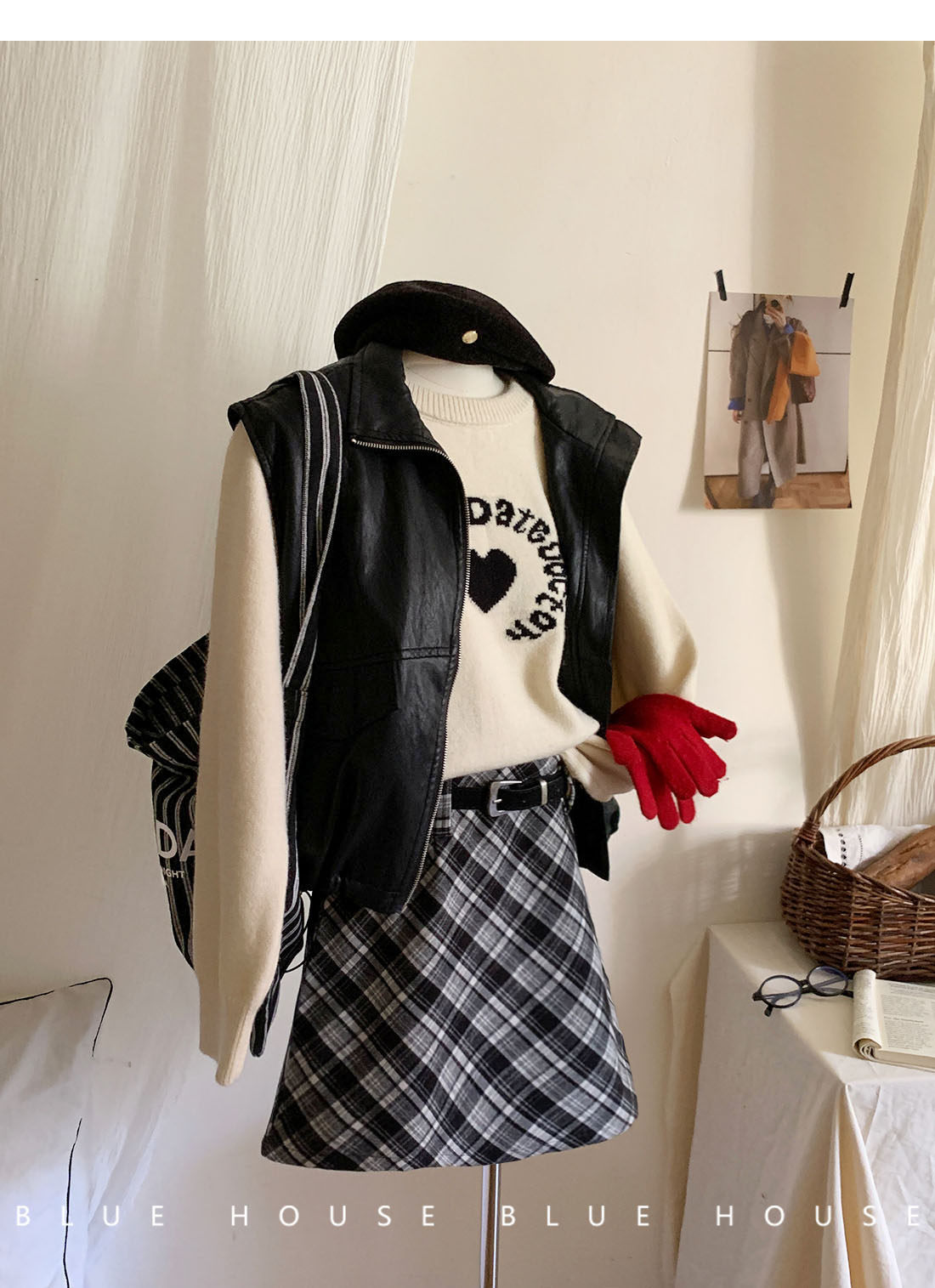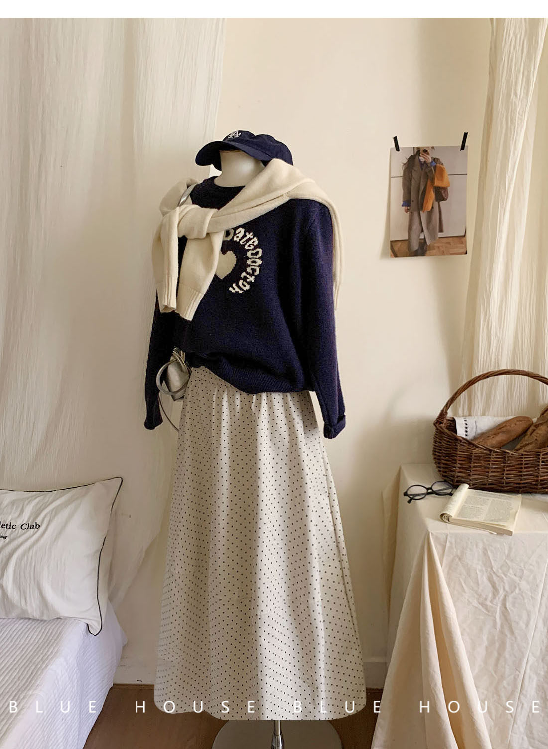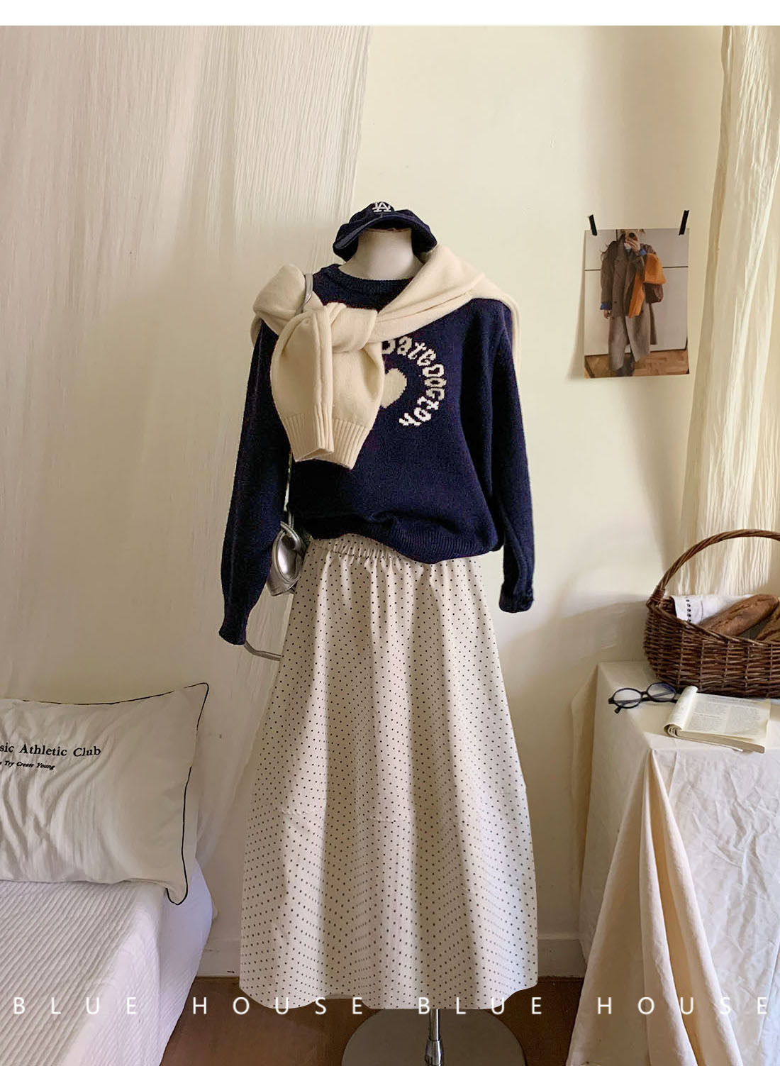 韓系簡約愛心字母提花針織上衣女秋冬季復古寬松外穿內搭套頭毛衣
