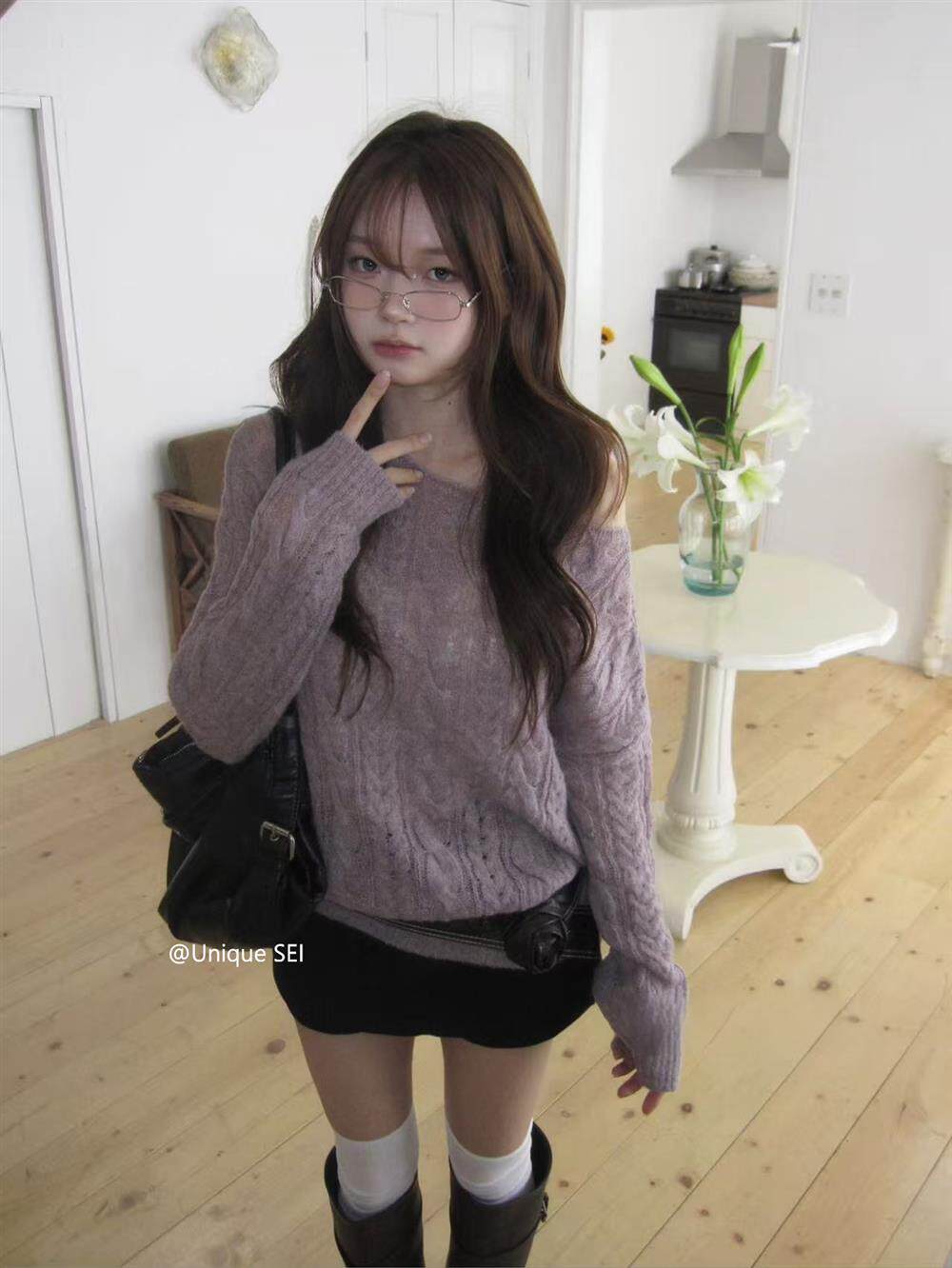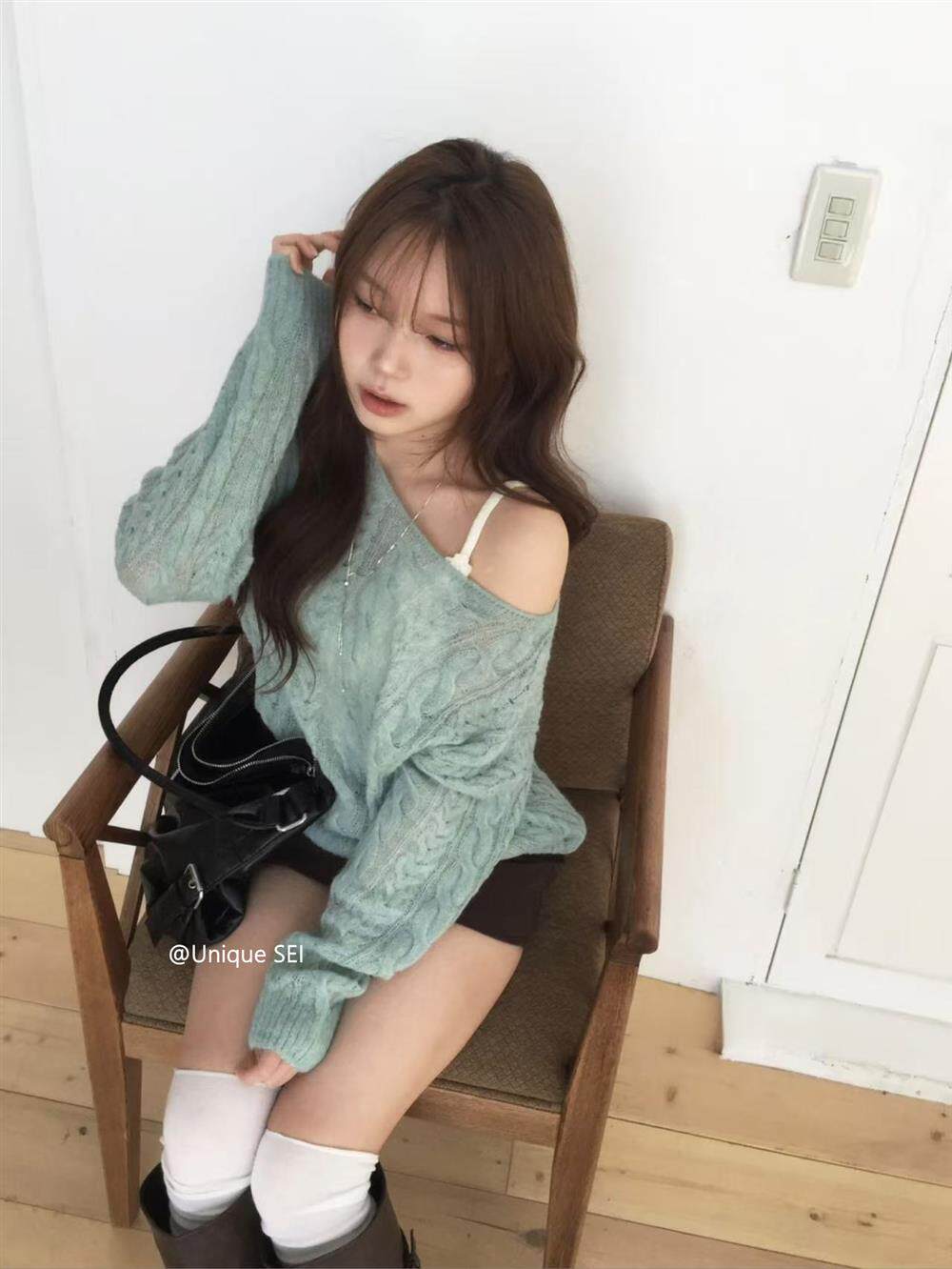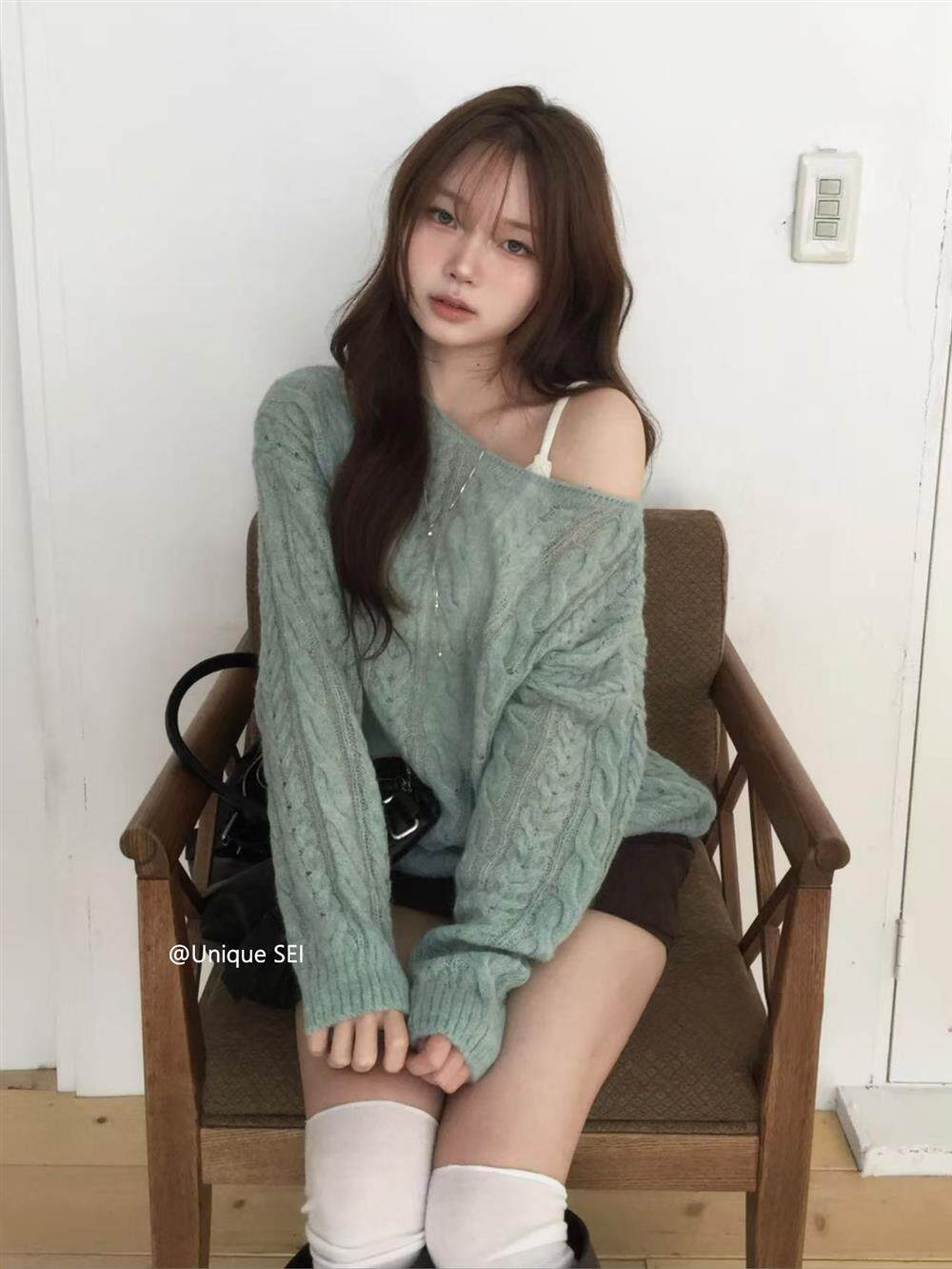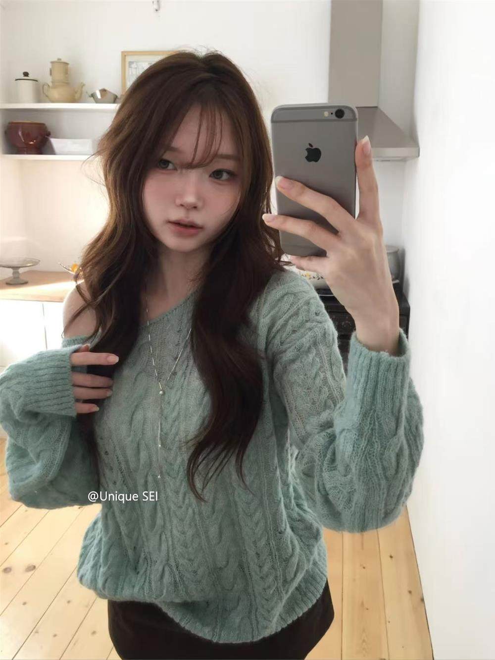 2025早秋韓系清冷感休閒百搭秋冬復古寬松麻花紋長袖針織衫毛衣女