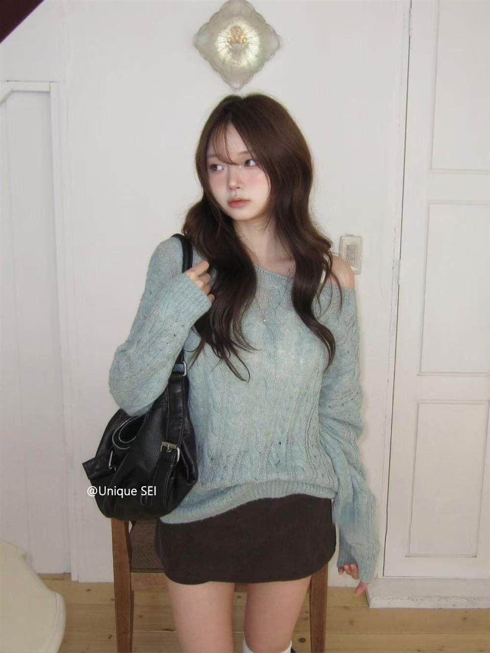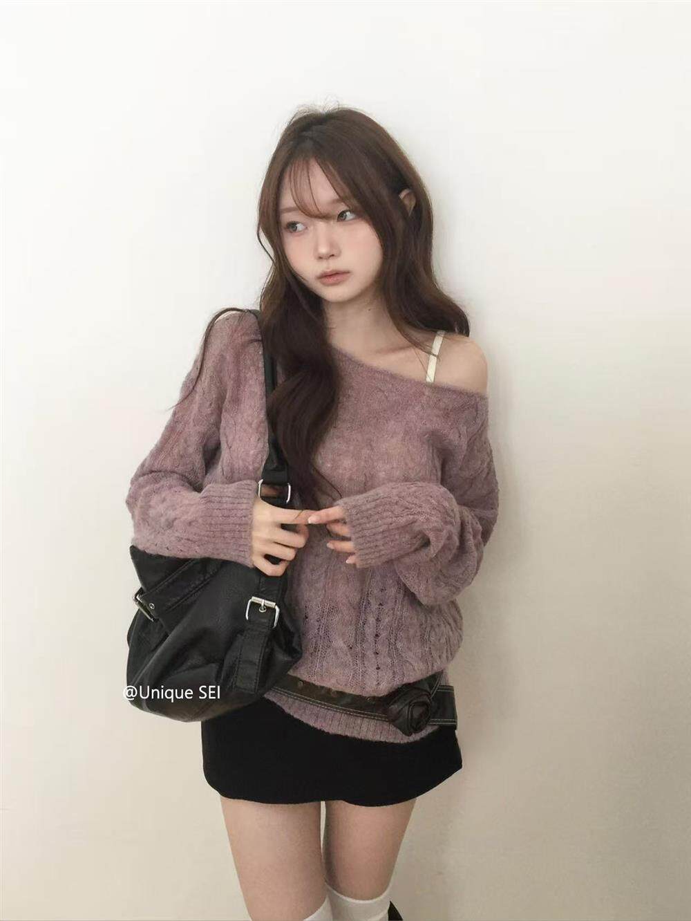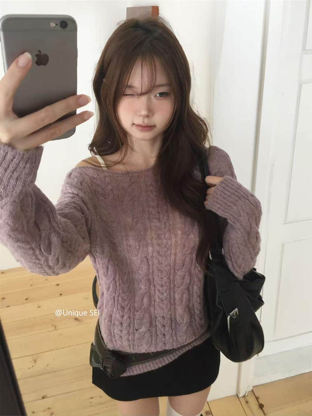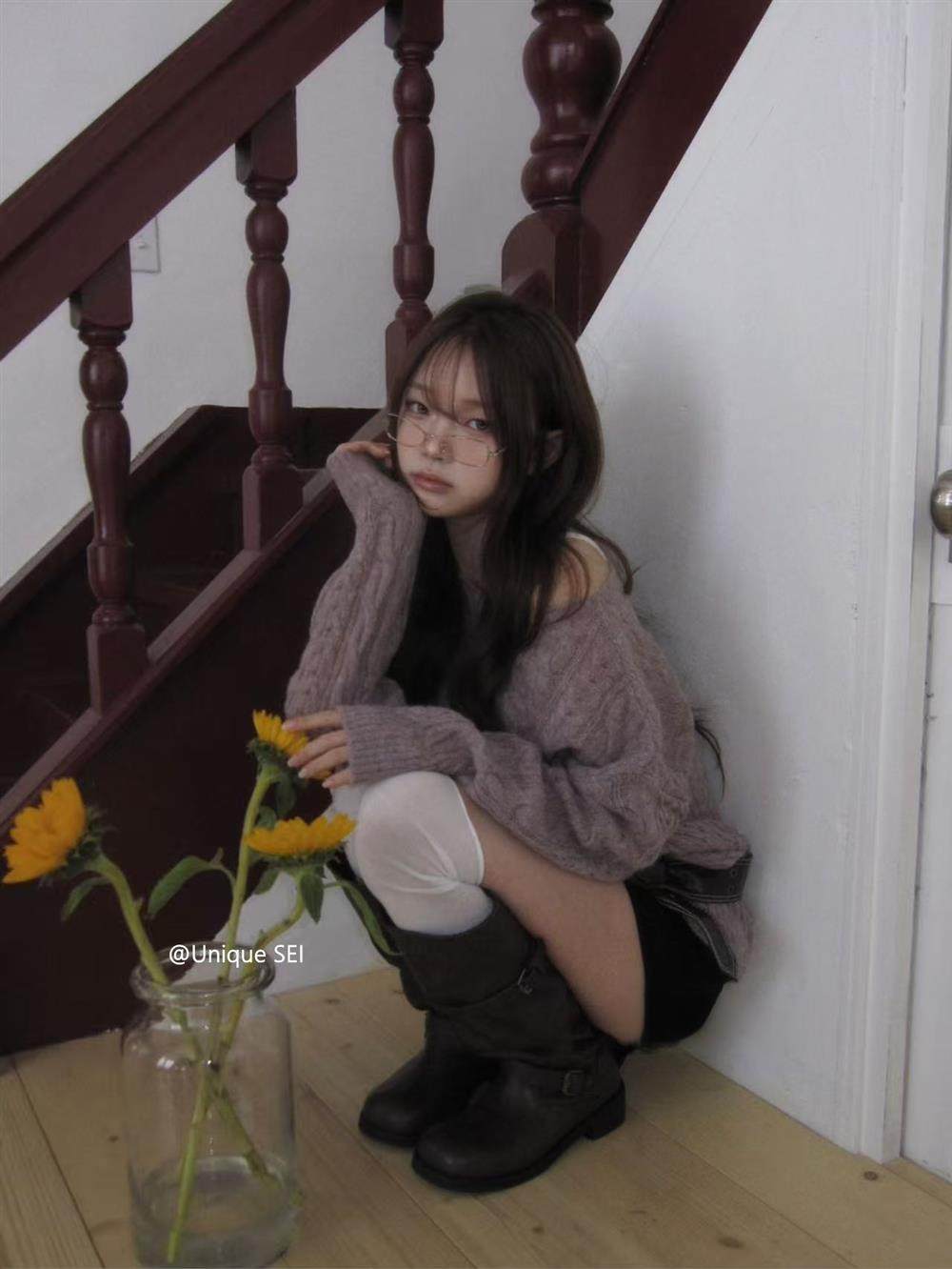 2025早秋韓系清冷感休閒百搭秋冬復古寬松麻花紋長袖針織衫毛衣女