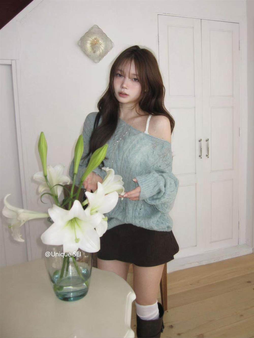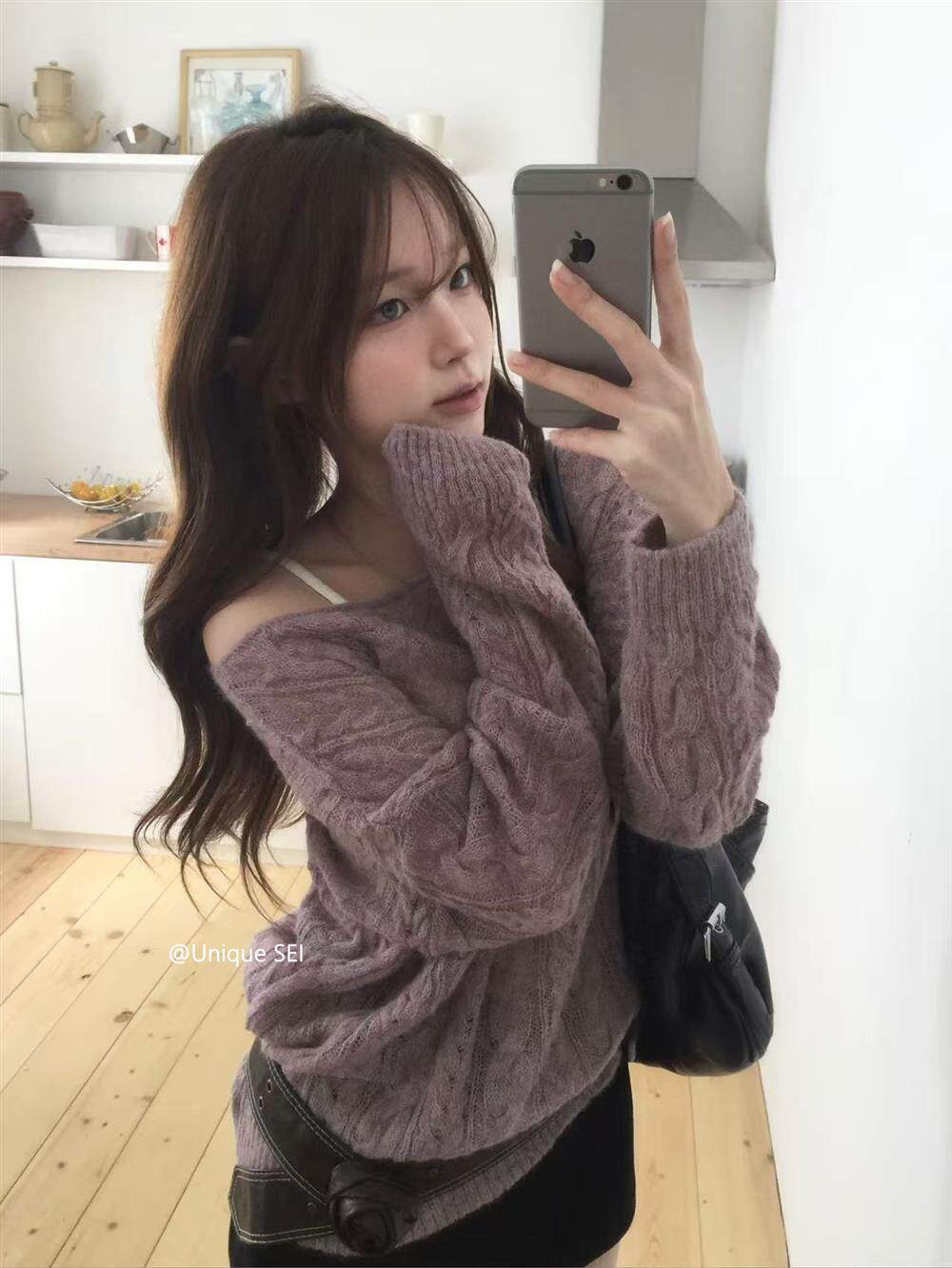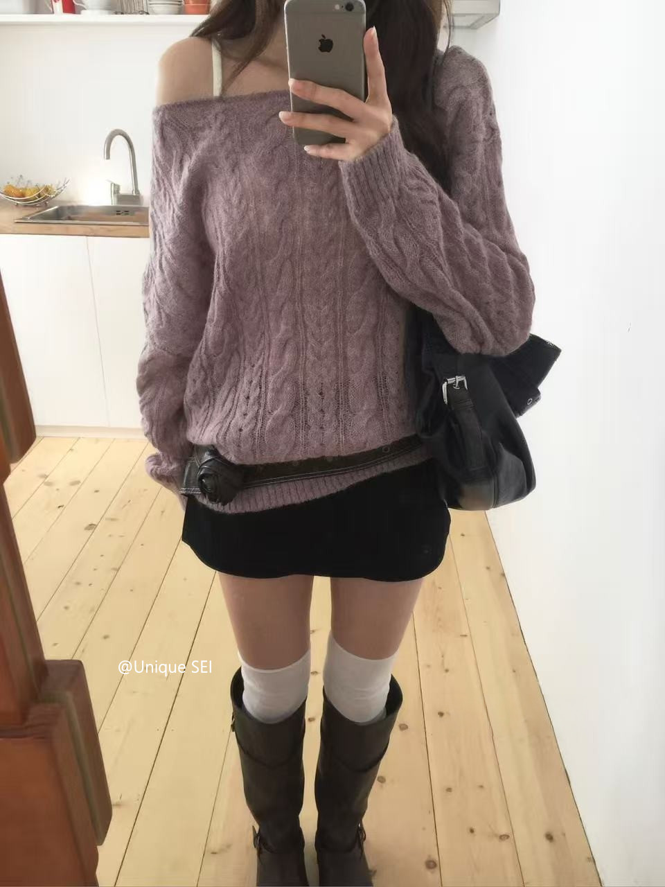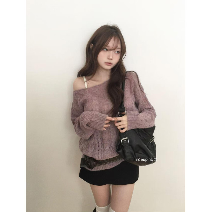 2025早秋韓系清冷感休閒百搭秋冬復古寬松麻花紋長袖針織衫毛衣女