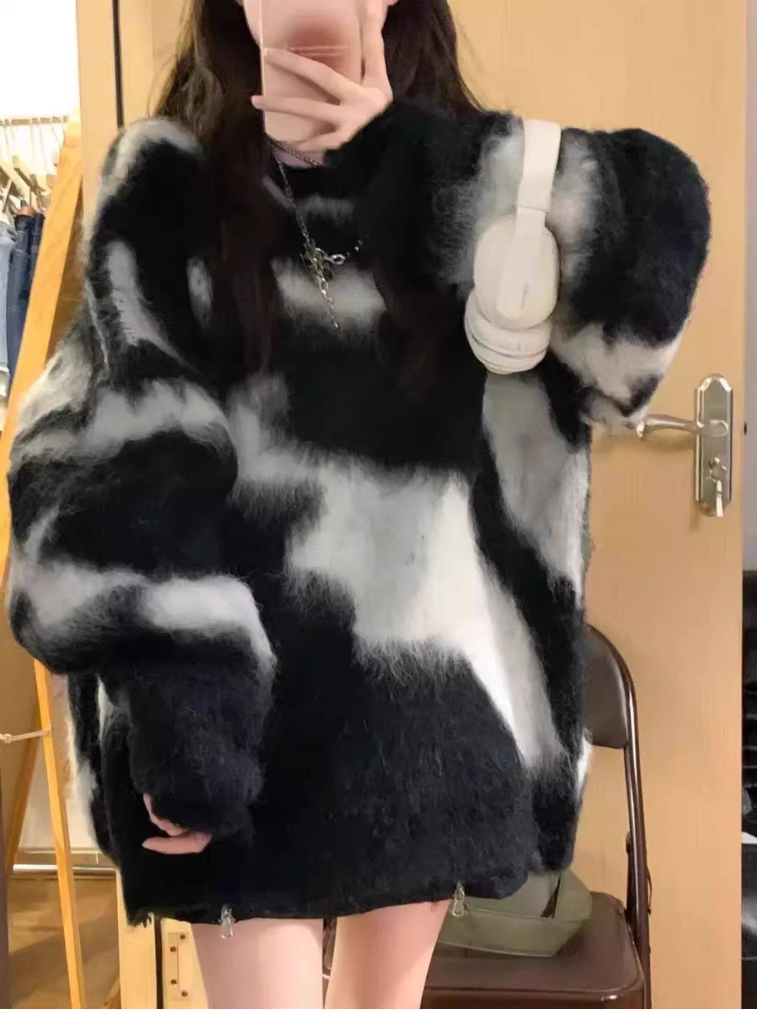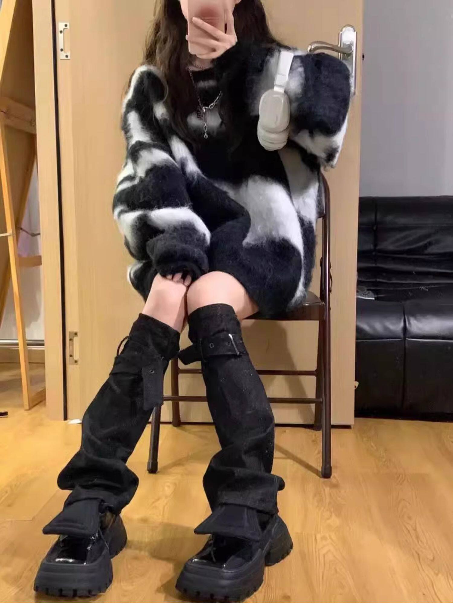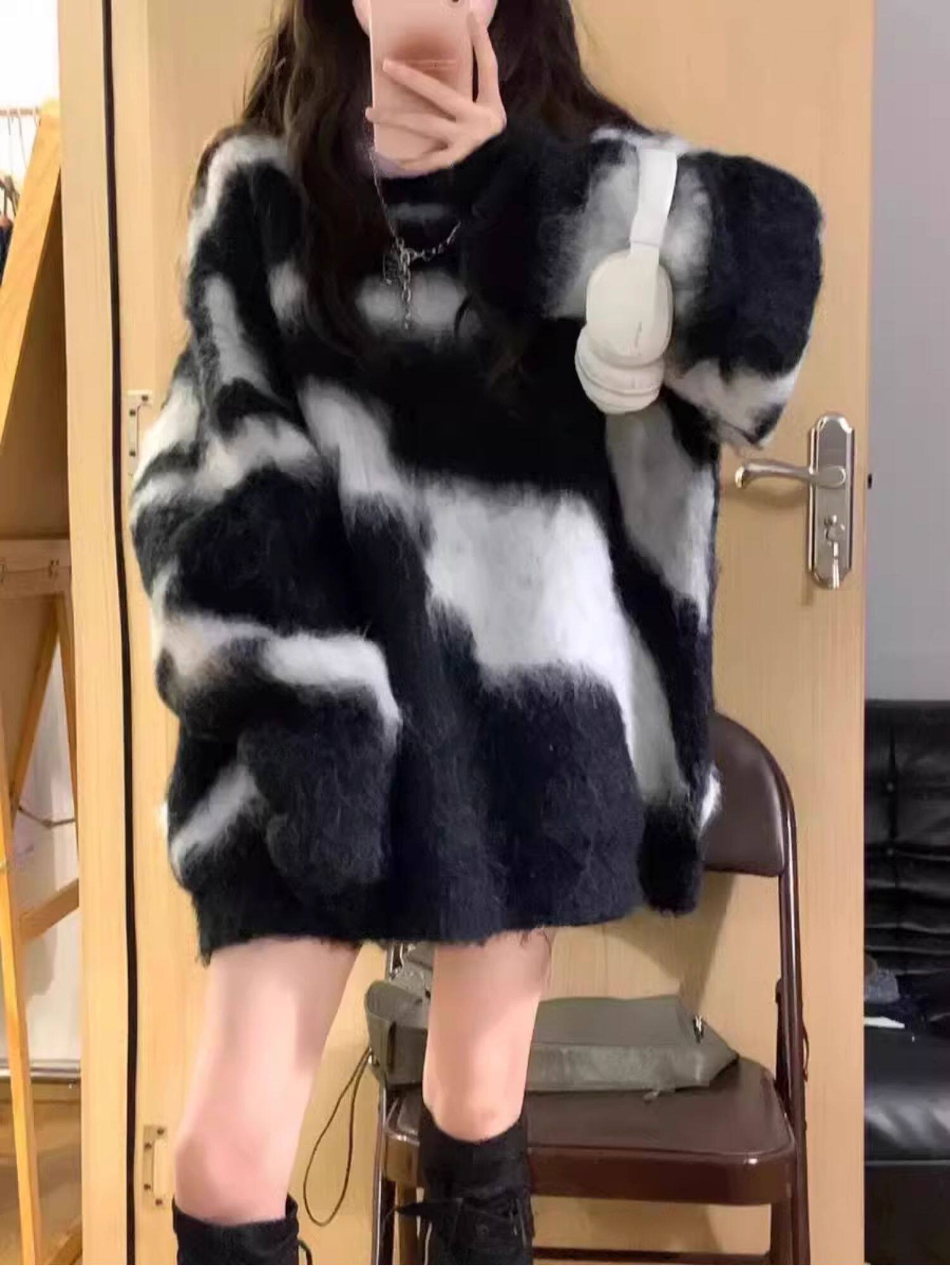 古著vintage毛衣女秋冬季小衆設計感日系復古慵懶風條紋針織上衣