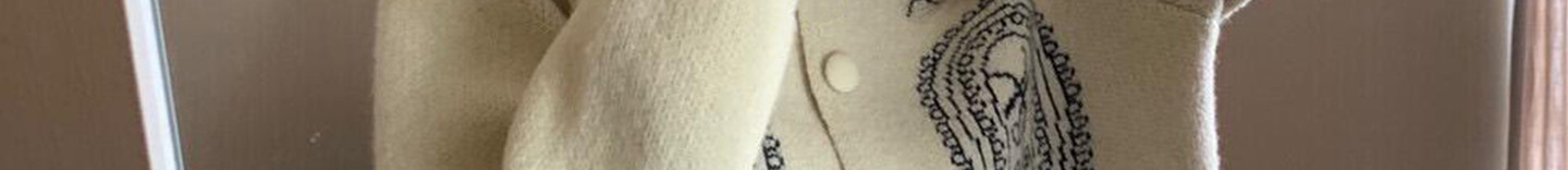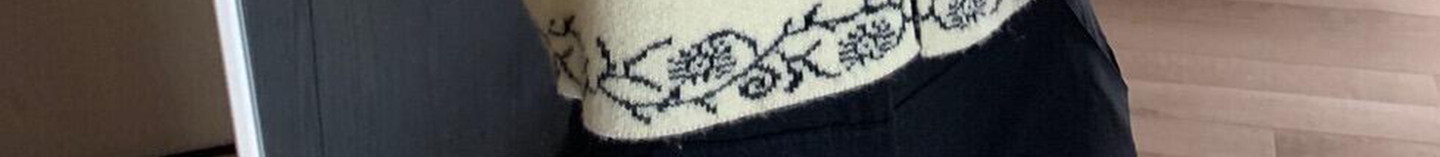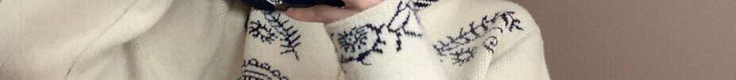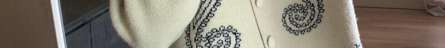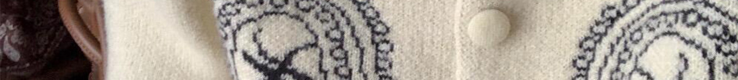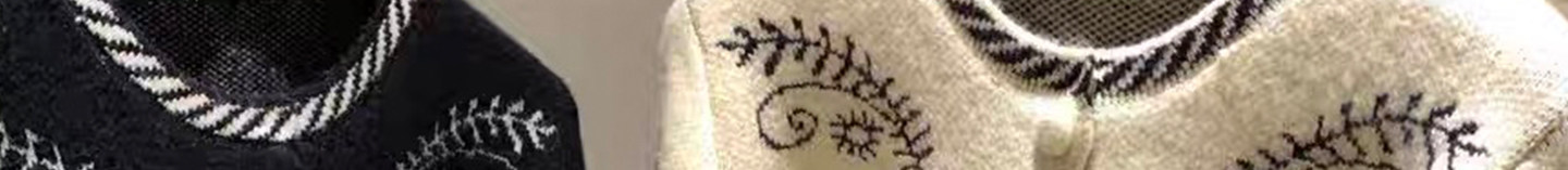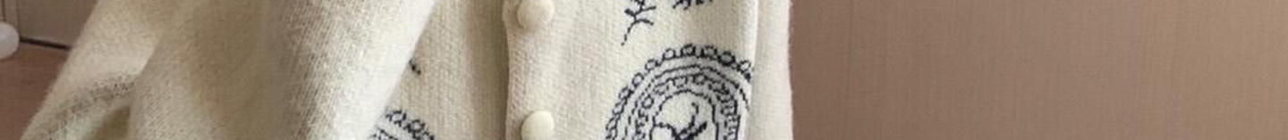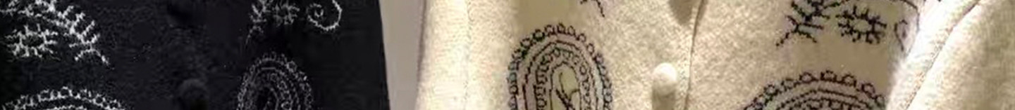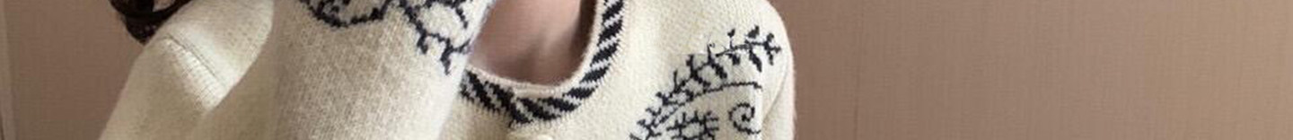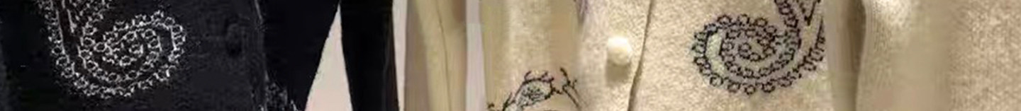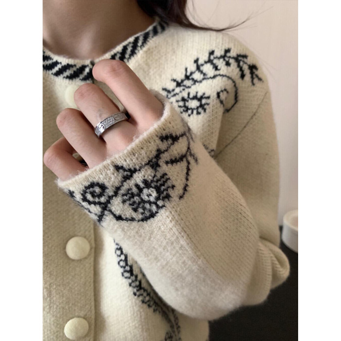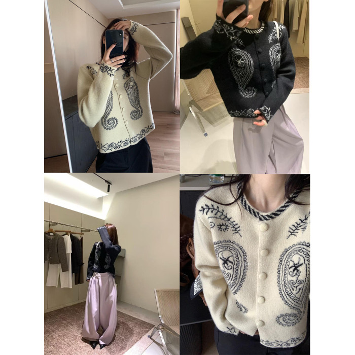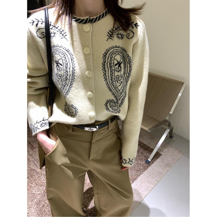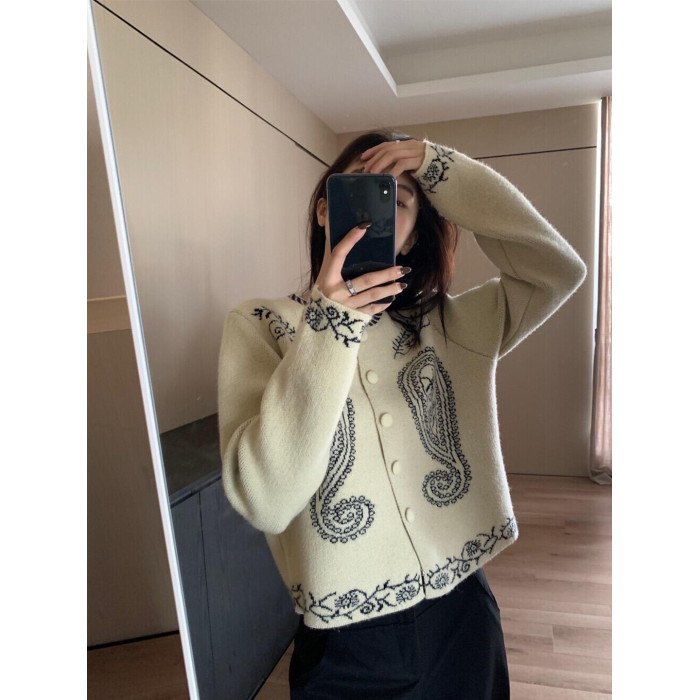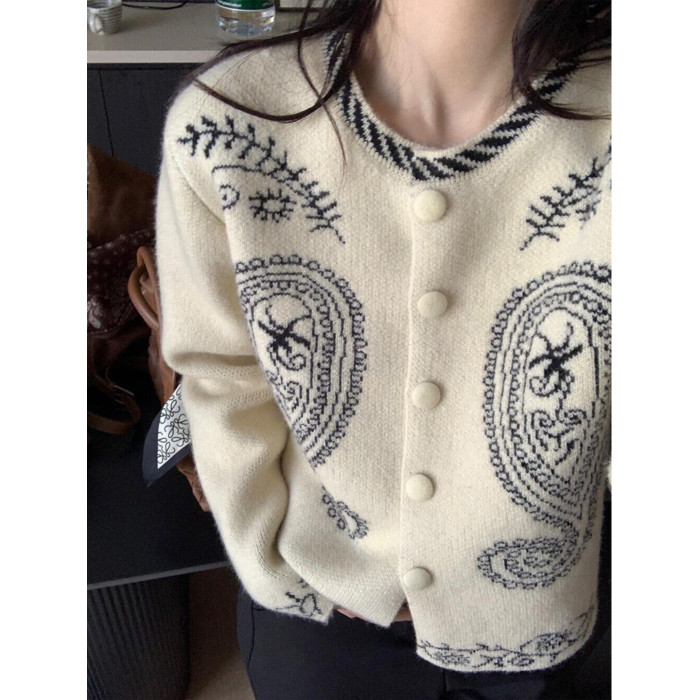 2025簡約復古圓領單排釦寬松腰果花提花短款時尚百搭長袖毛衣女