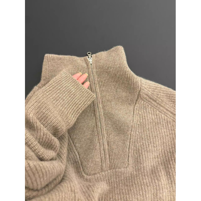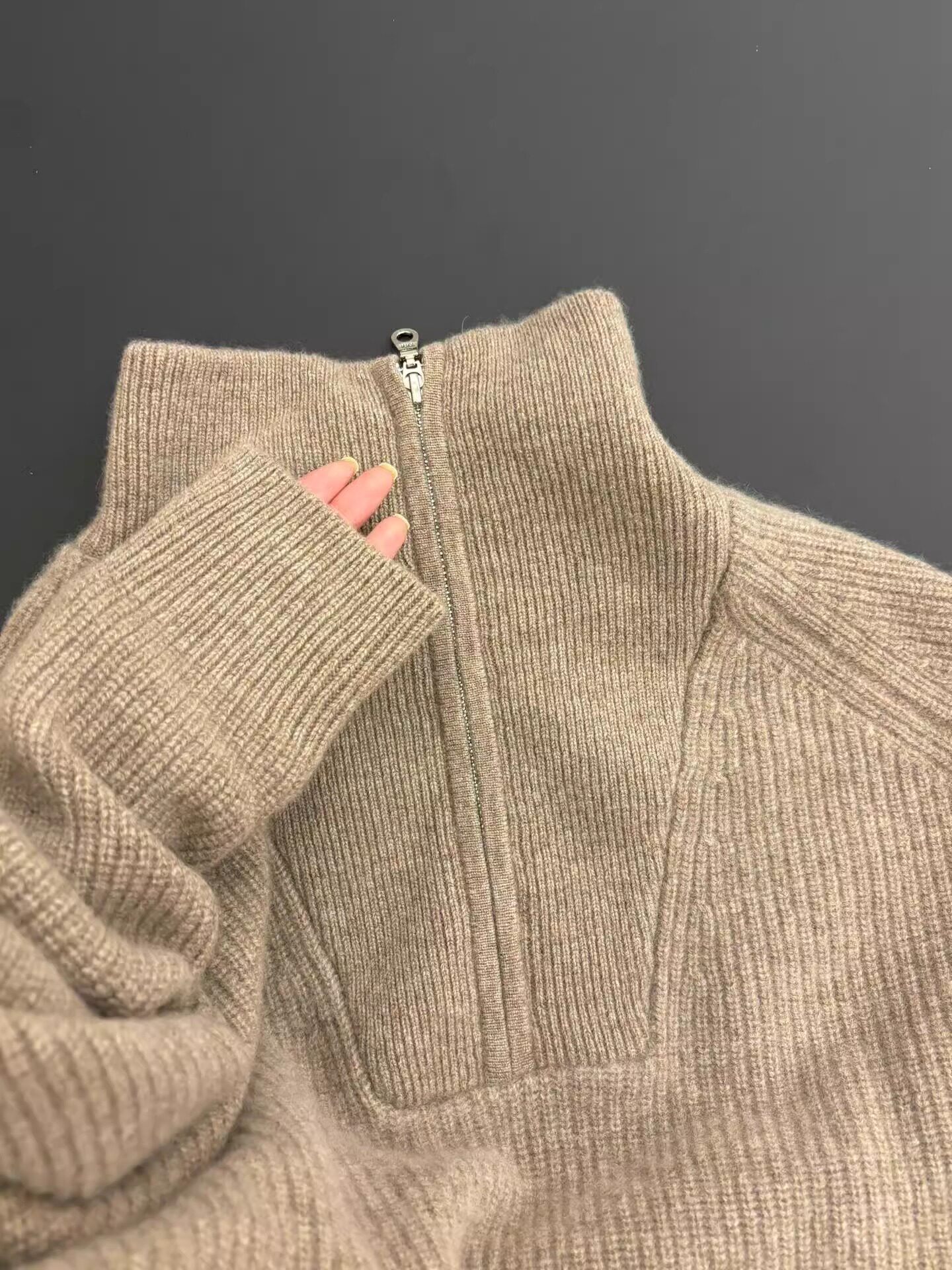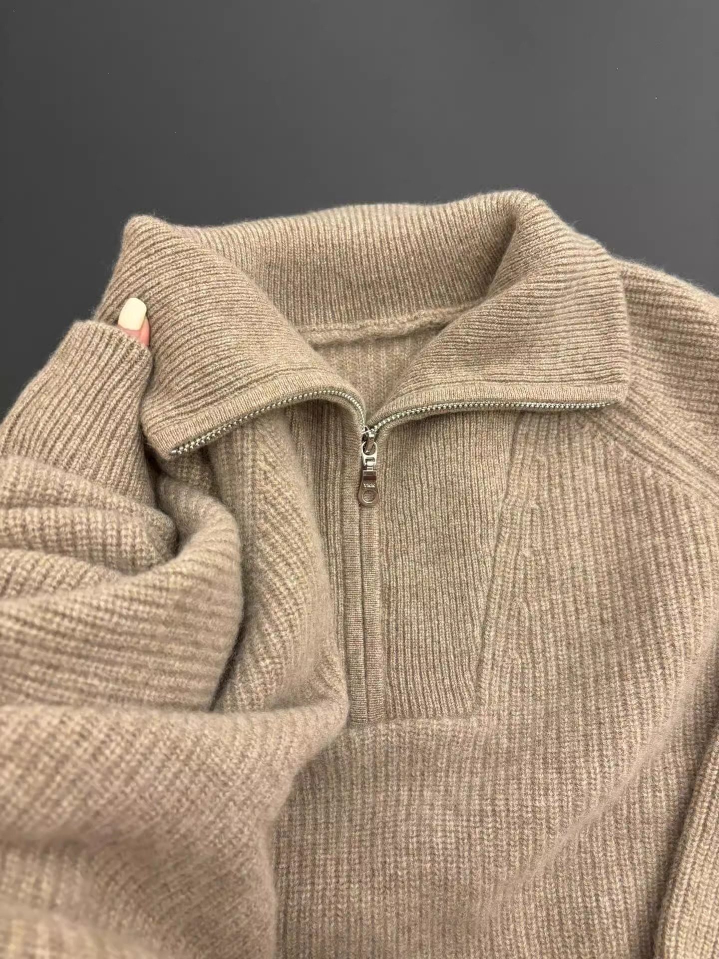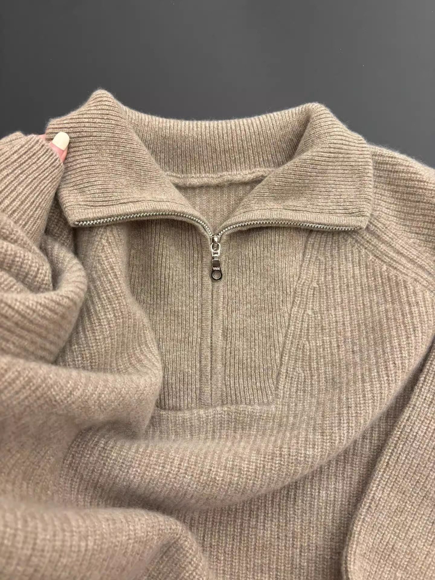 駝色浣熊絨高領半拉鍊套頭毛衣女秋冬季慵懶風加厚內搭打底針織衫