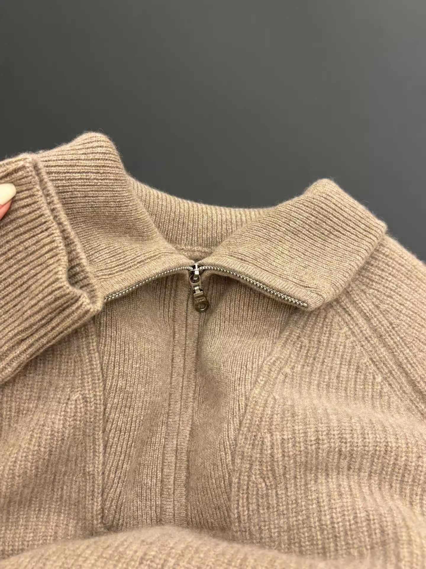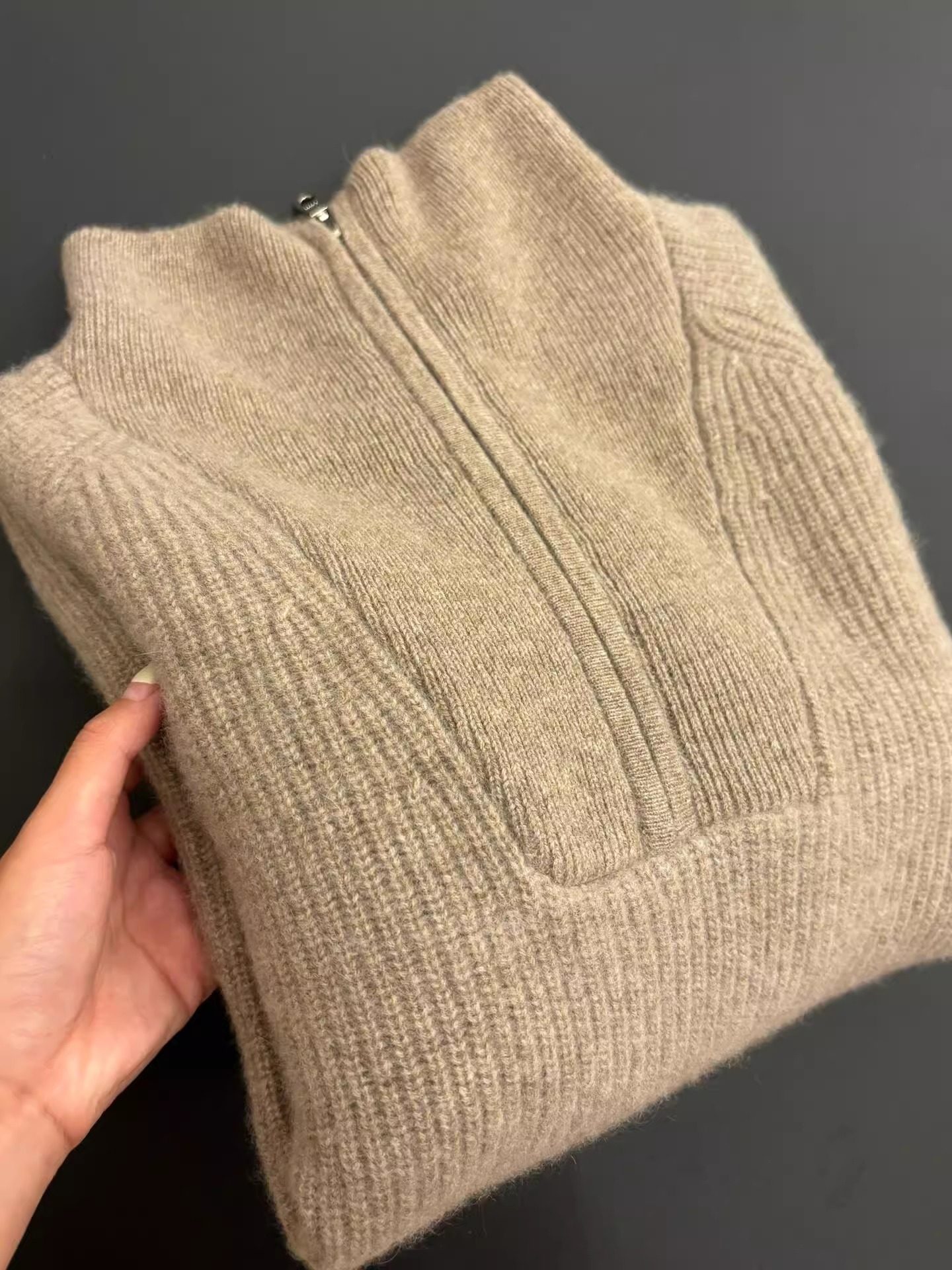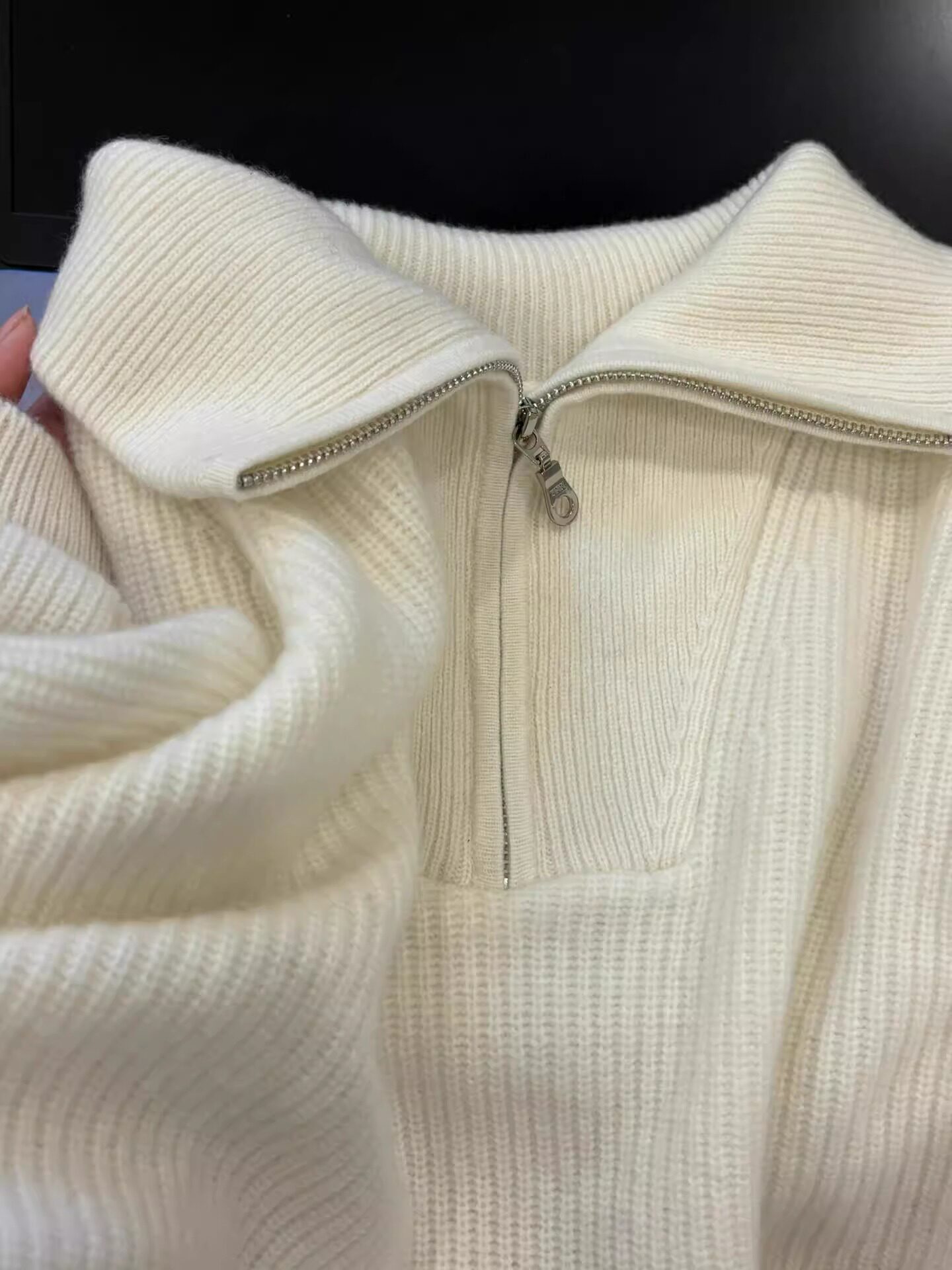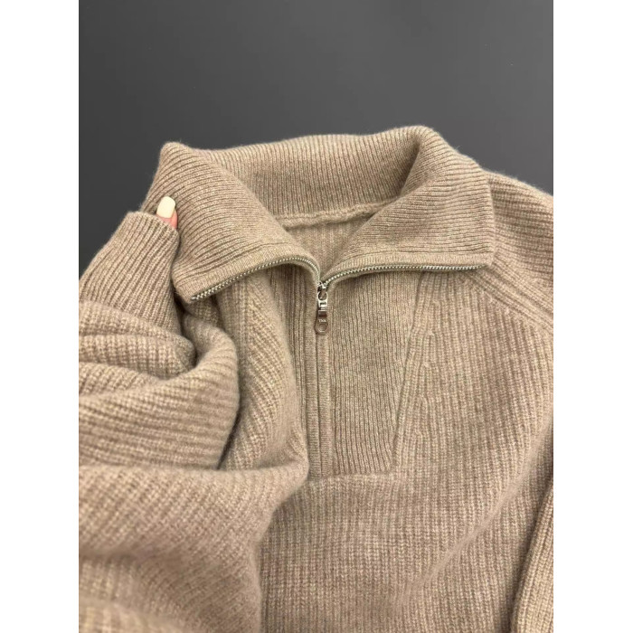 駝色浣熊絨高領半拉鍊套頭毛衣女秋冬季慵懶風加厚內搭打底針織衫