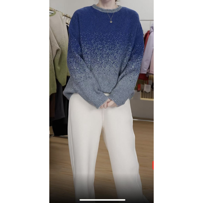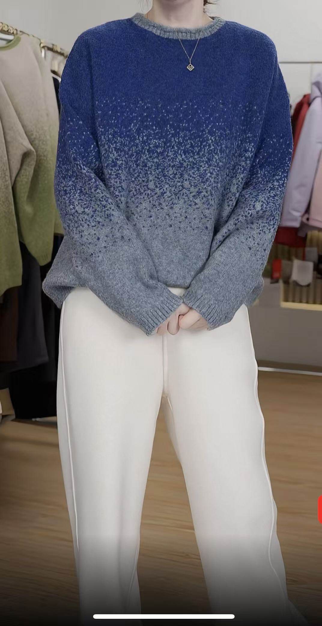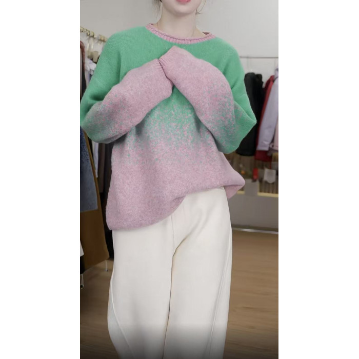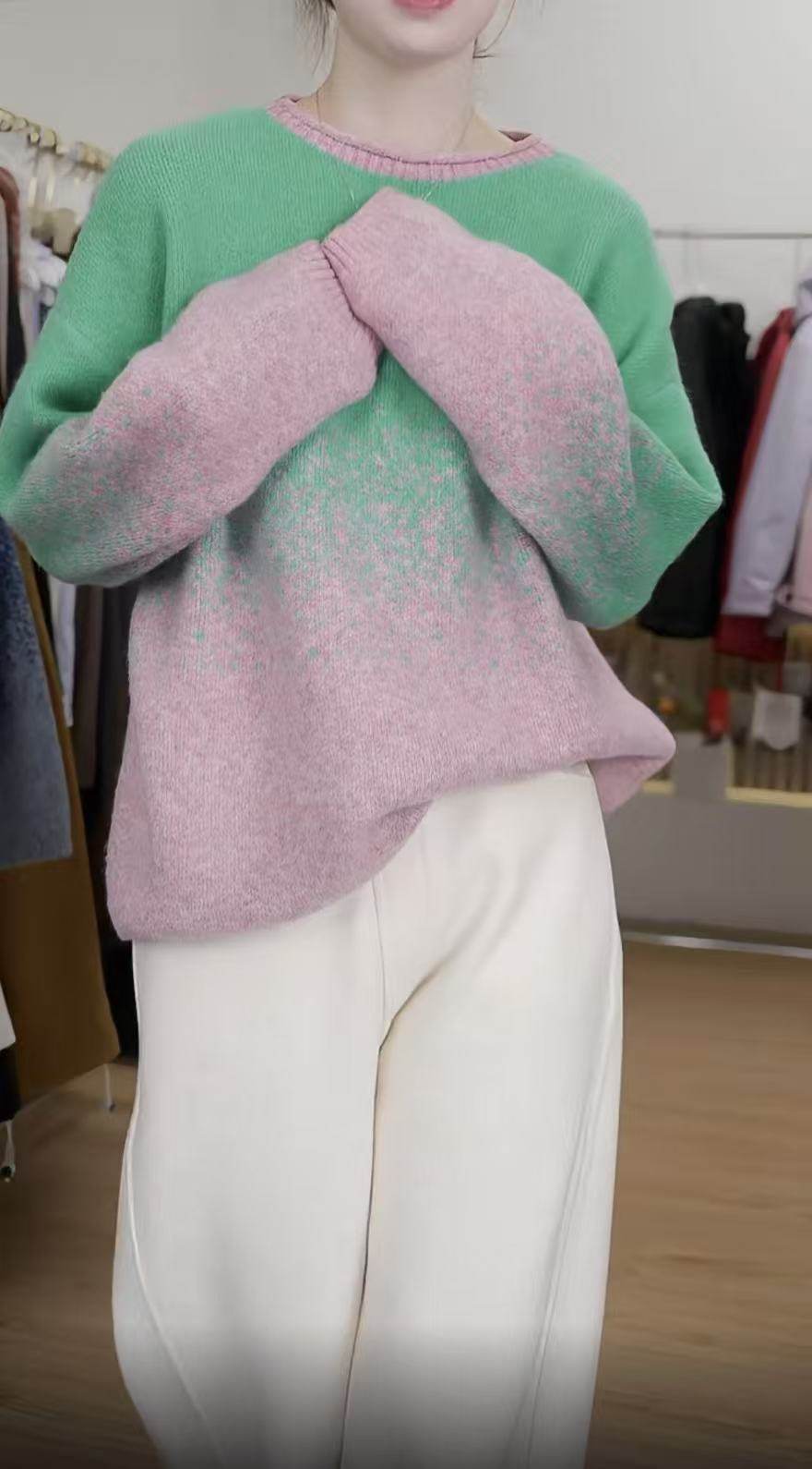 時髦隨性圓領女25秋冬新款拼色打底衫韓系風星空彩點毛衣