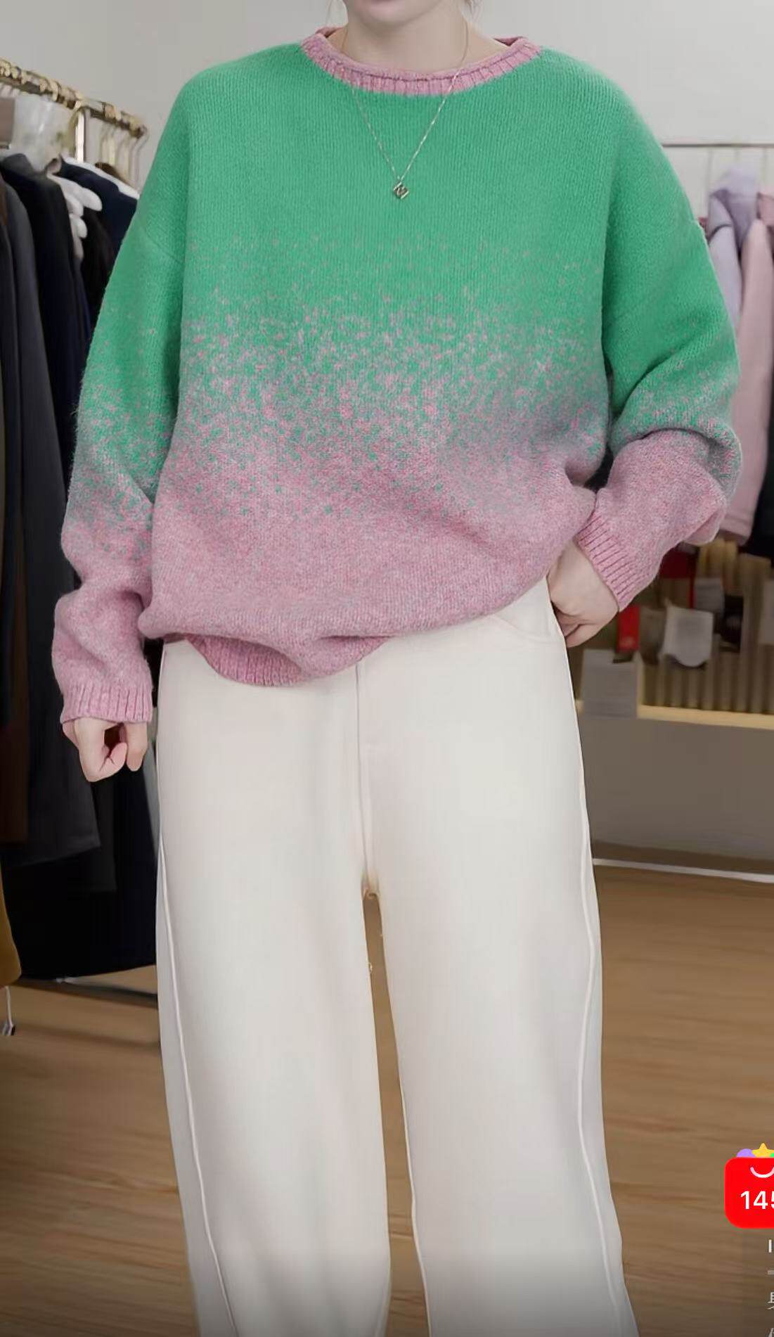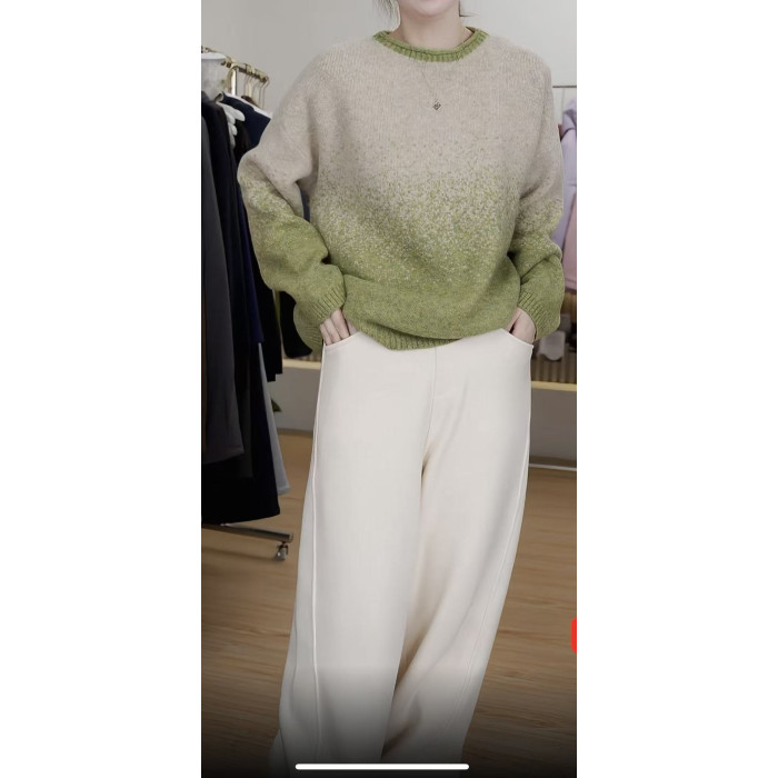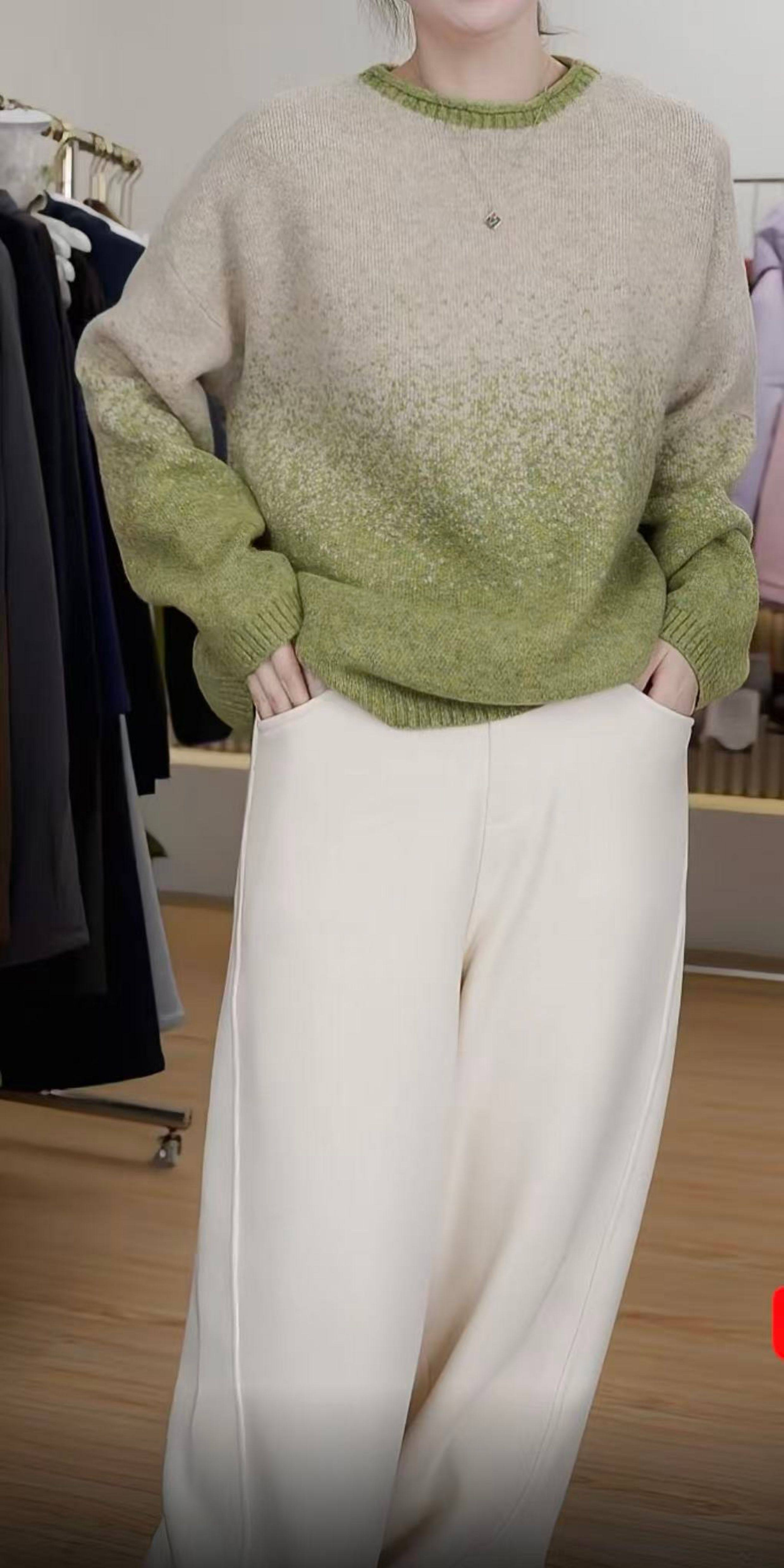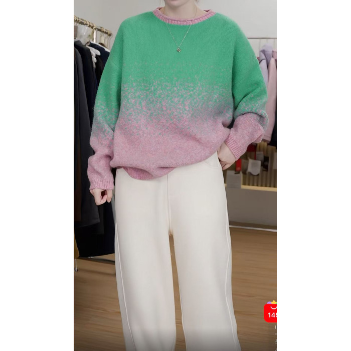時髦隨性圓領女25秋冬新款拼色打底衫韓系風星空彩點毛衣