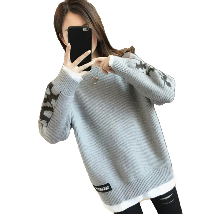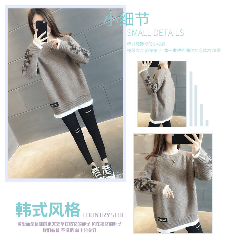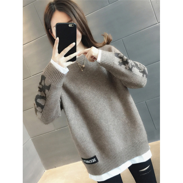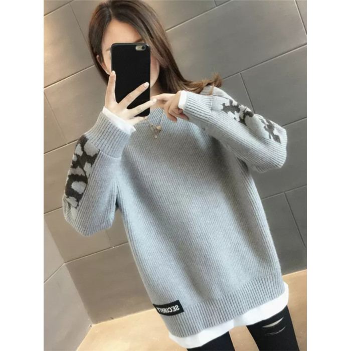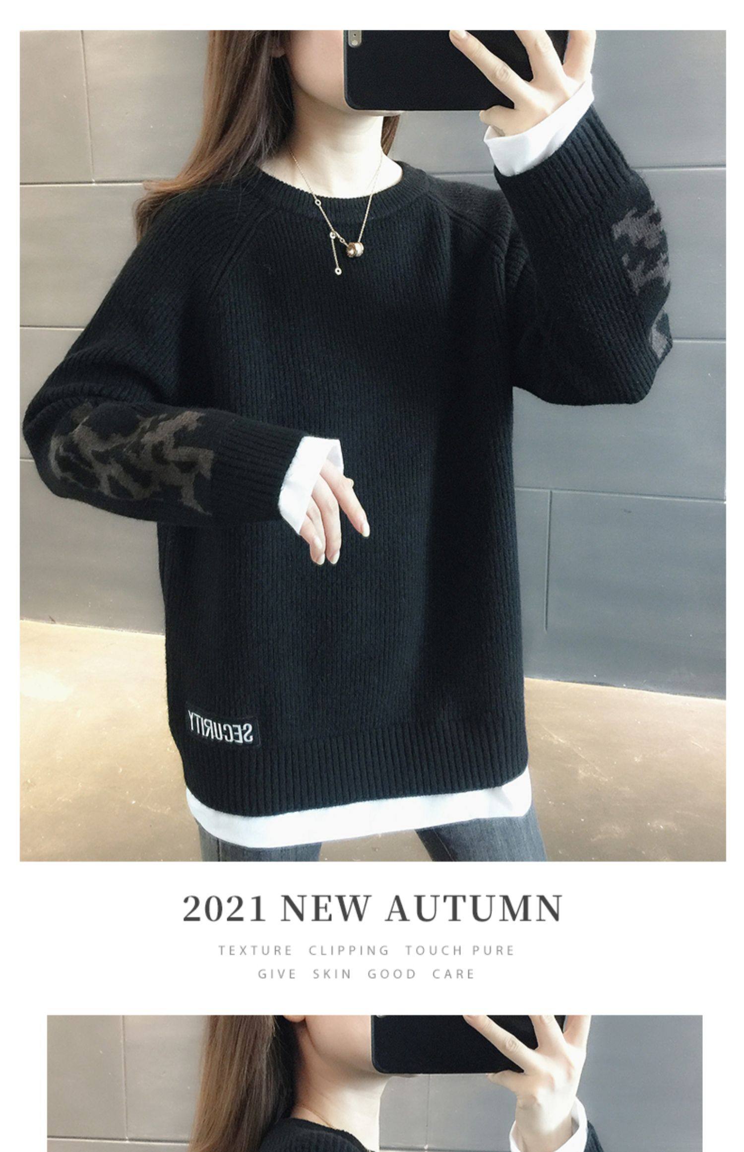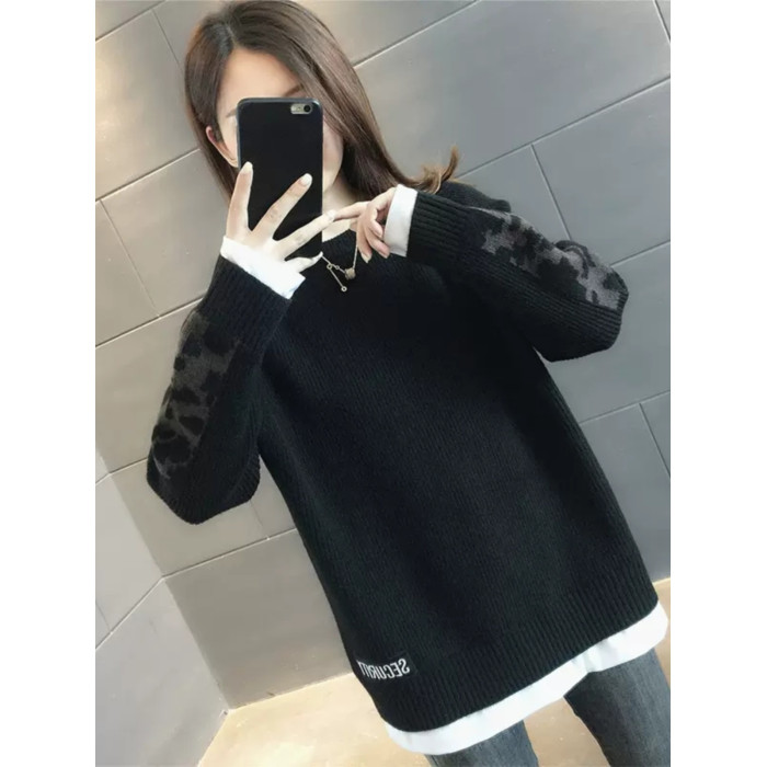中長款假兩件毛衣女2025秋冬新款爆款寬松時尚加厚針織打底衫冬季