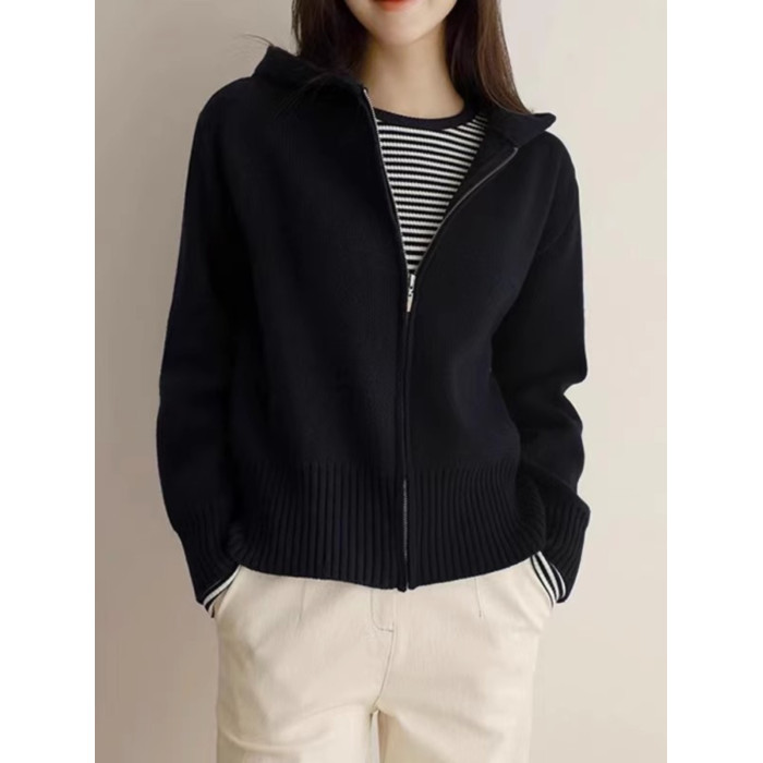 連帽毛衣厚外套女士秋冬2025新款休閒小香風爆款拉鍊針織開衫上衣