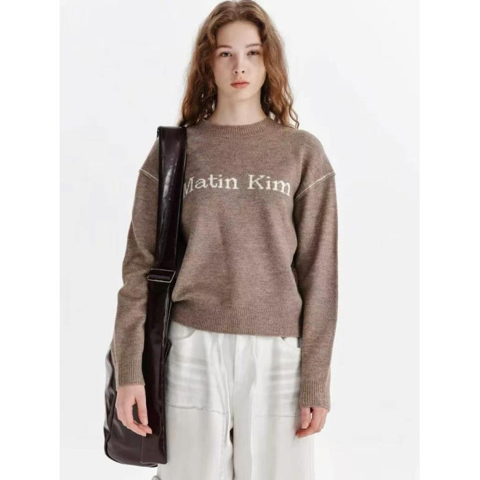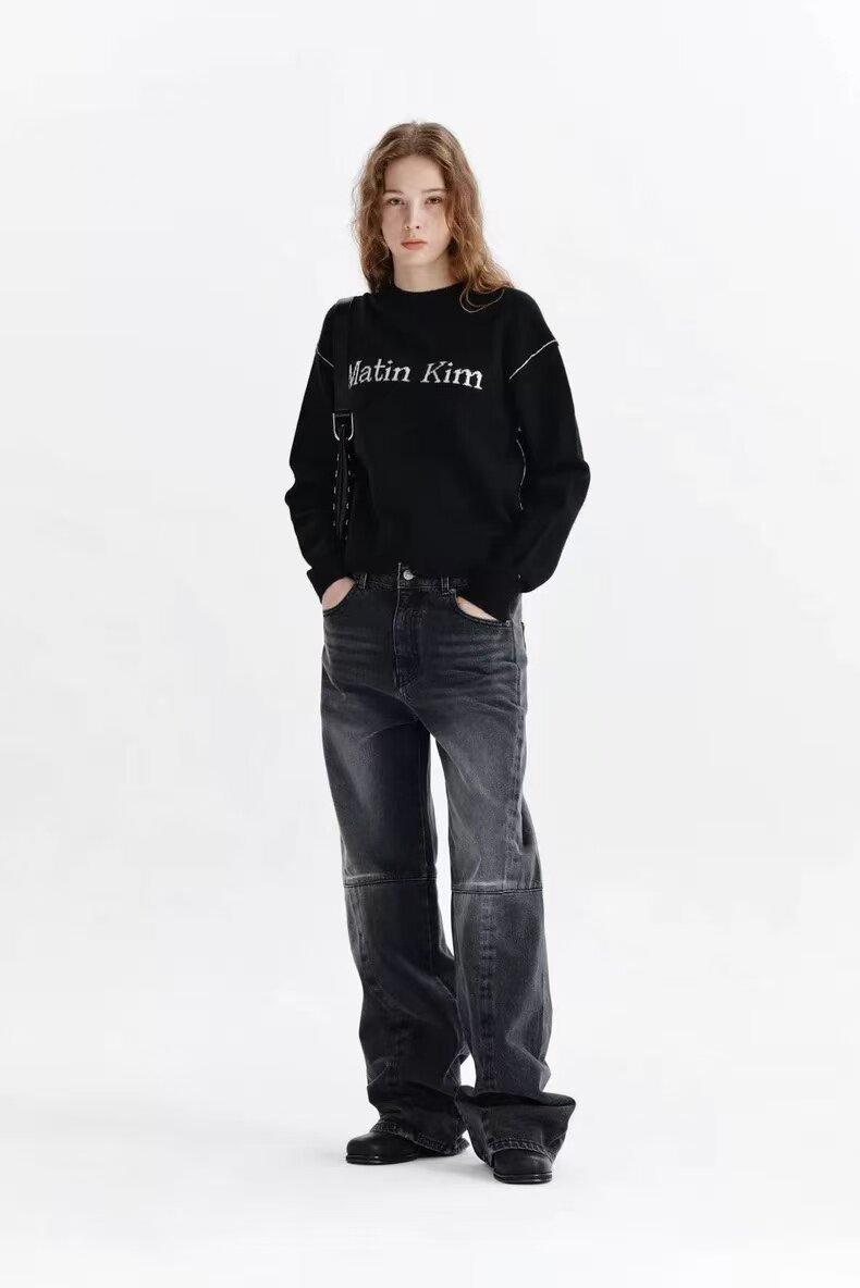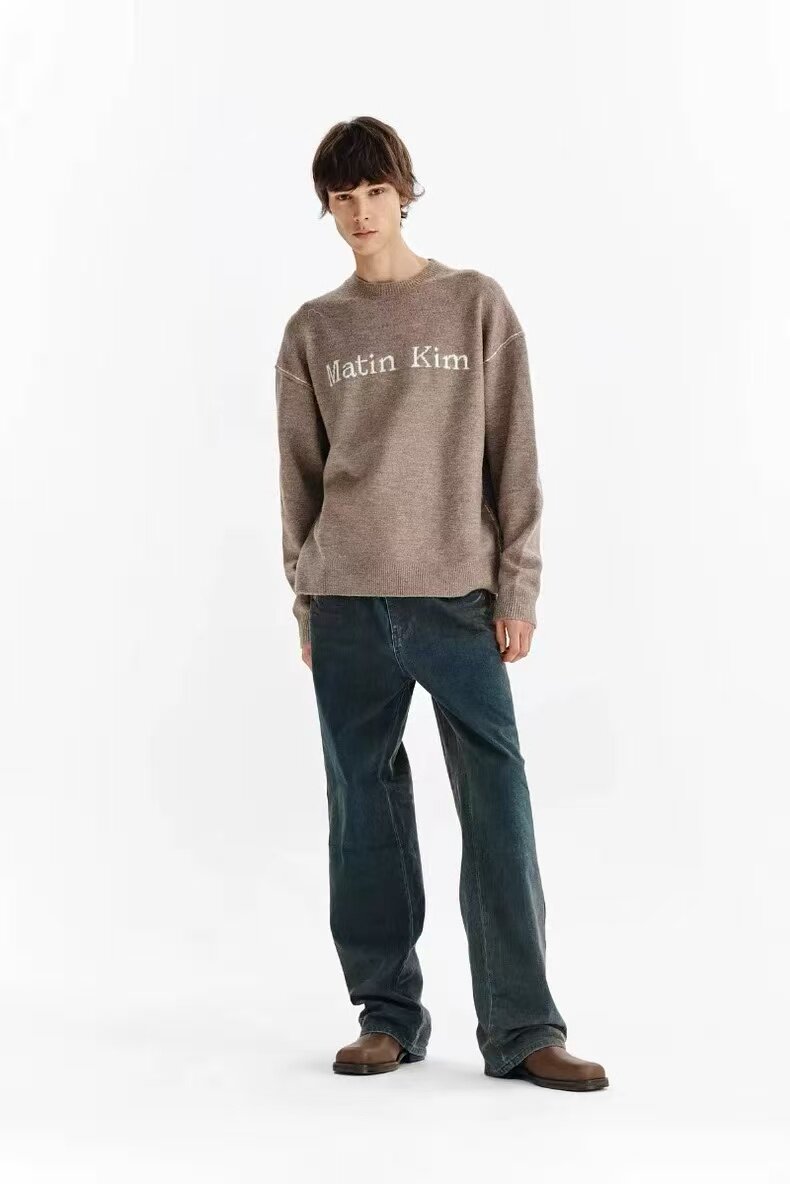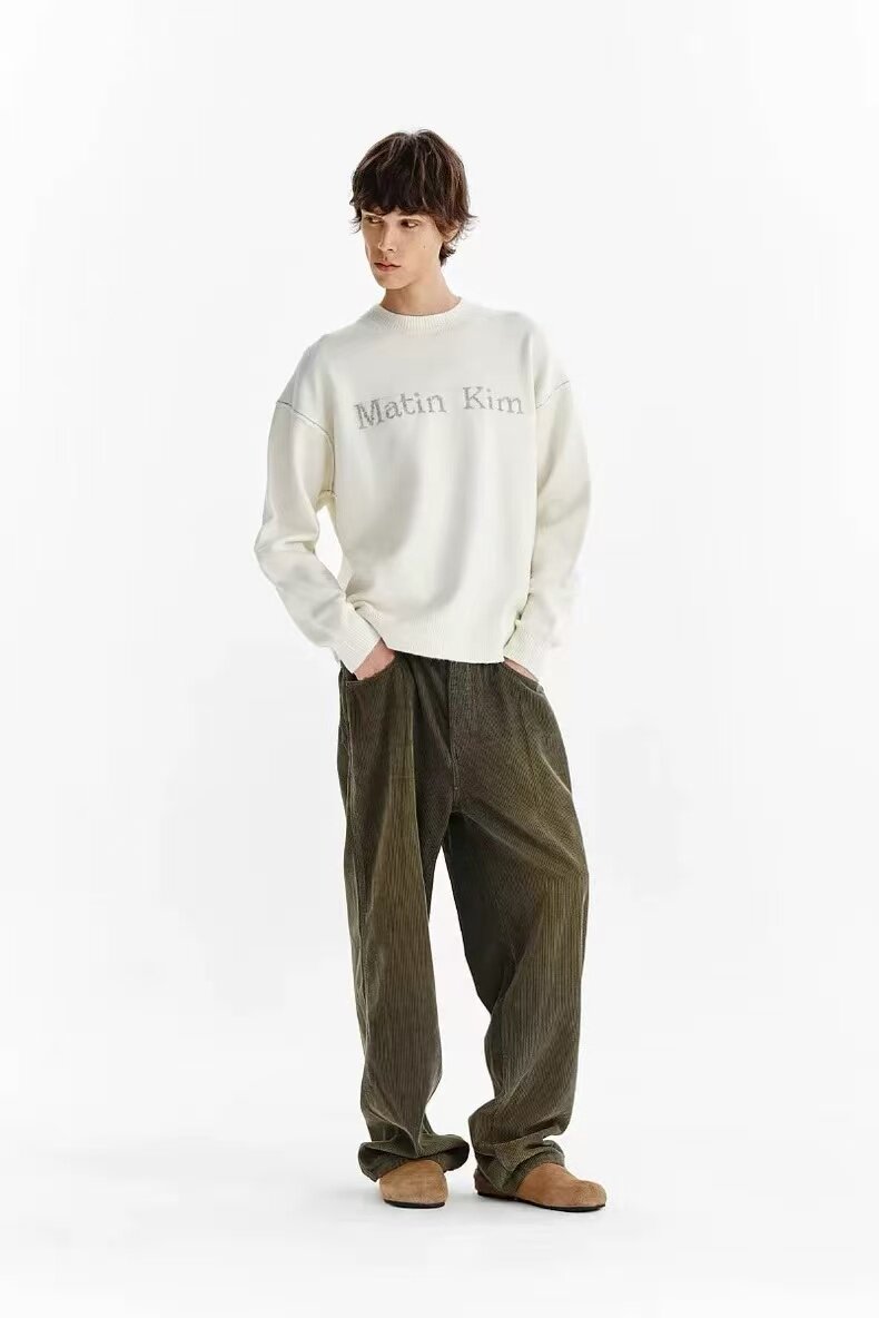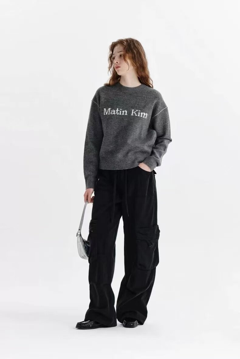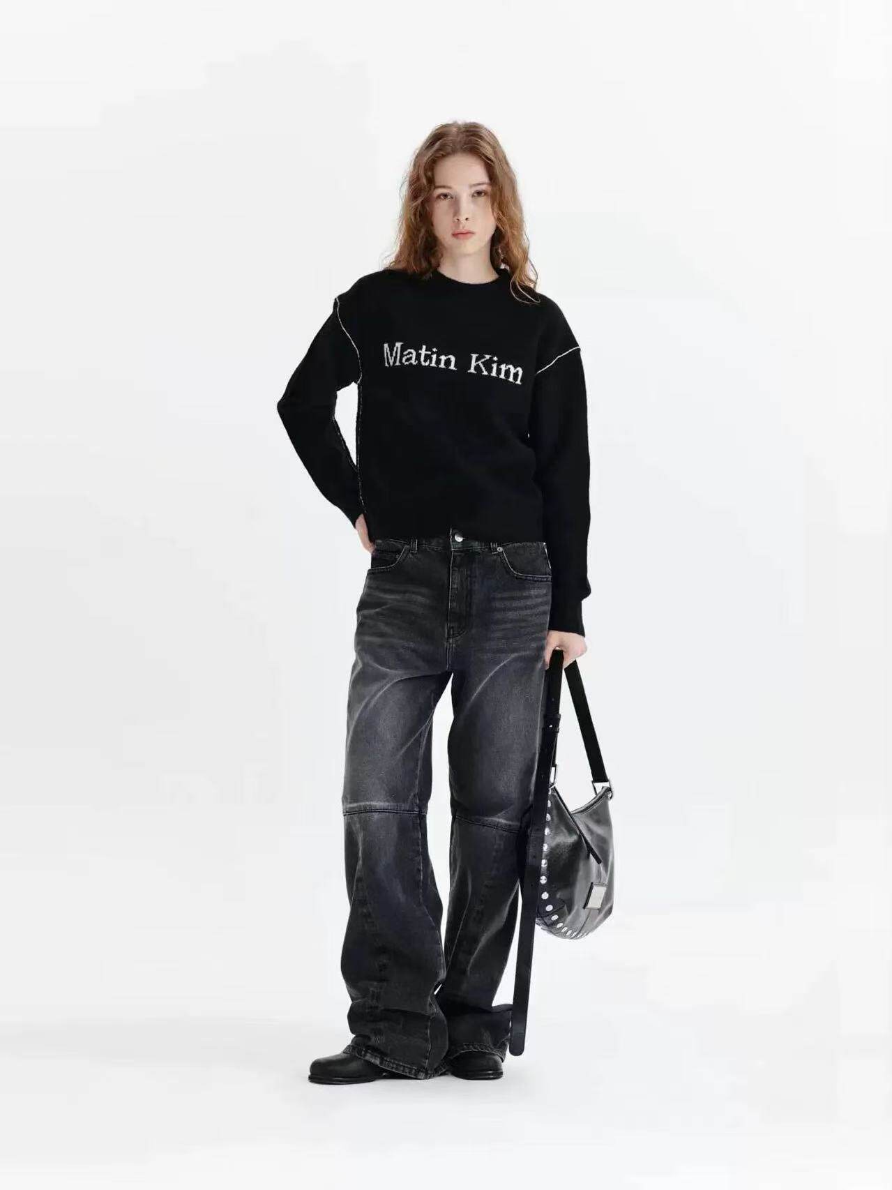 韓系matinkim 25秋冬休閒縫線寬松男女百搭針織圓領套頭毛衣
