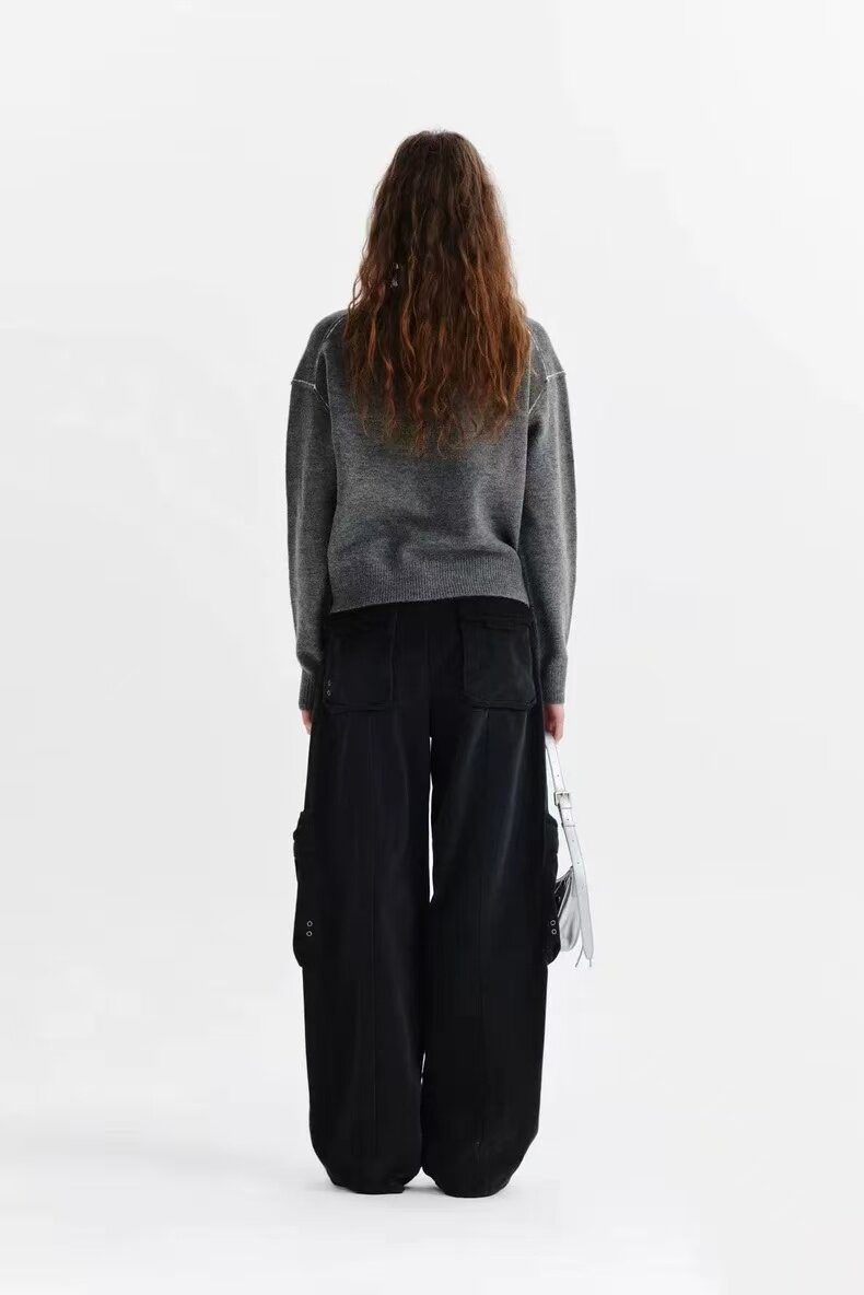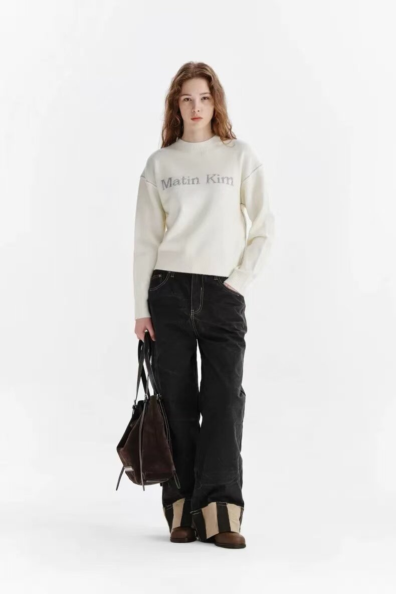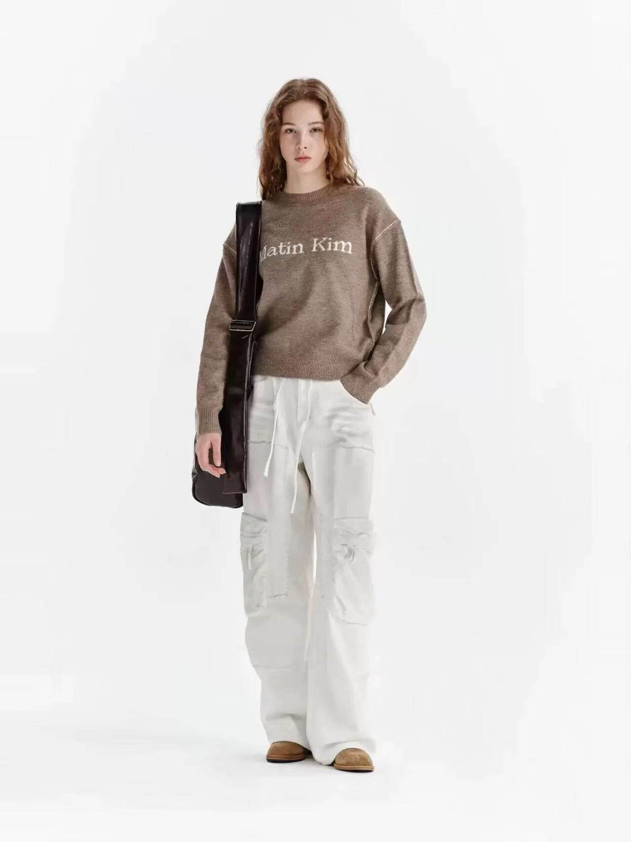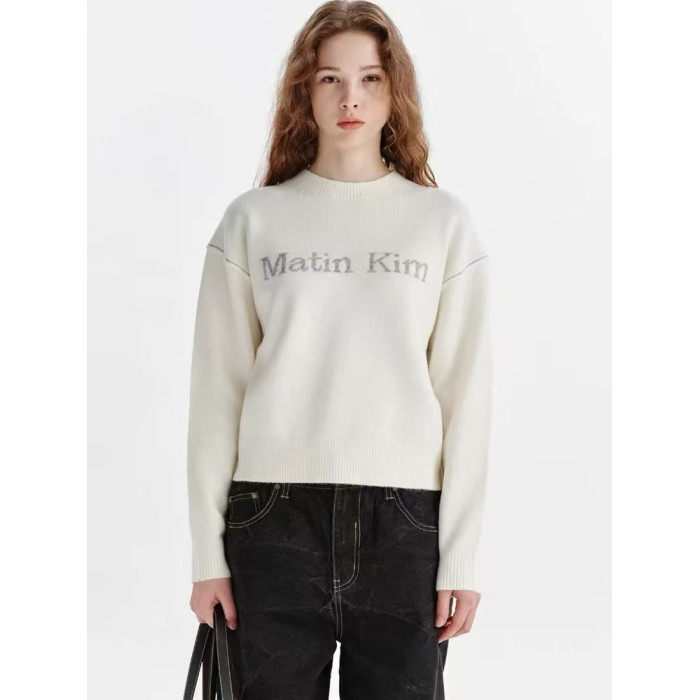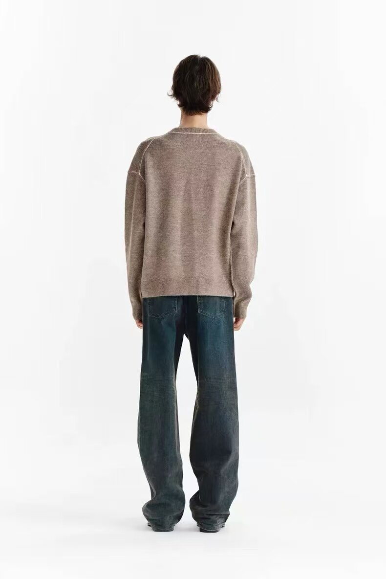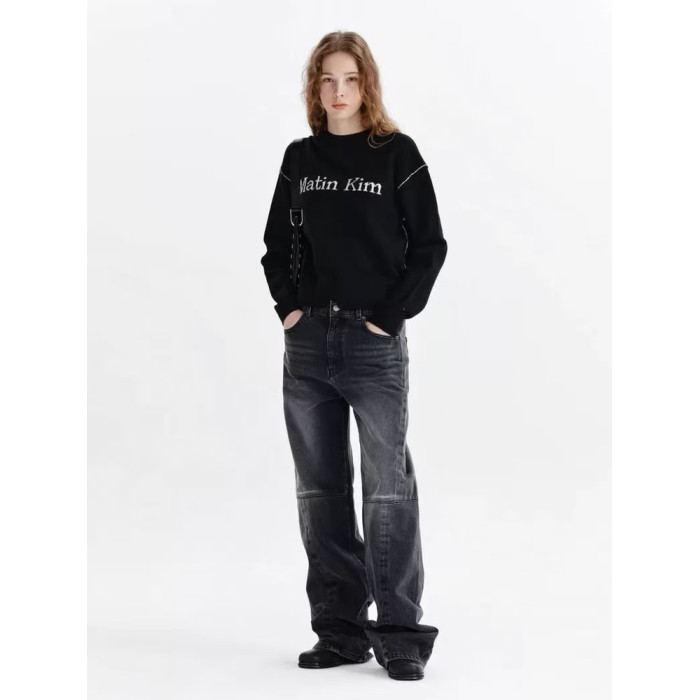韓系matinkim 25秋冬休閒縫線寬松男女百搭針織圓領套頭毛衣