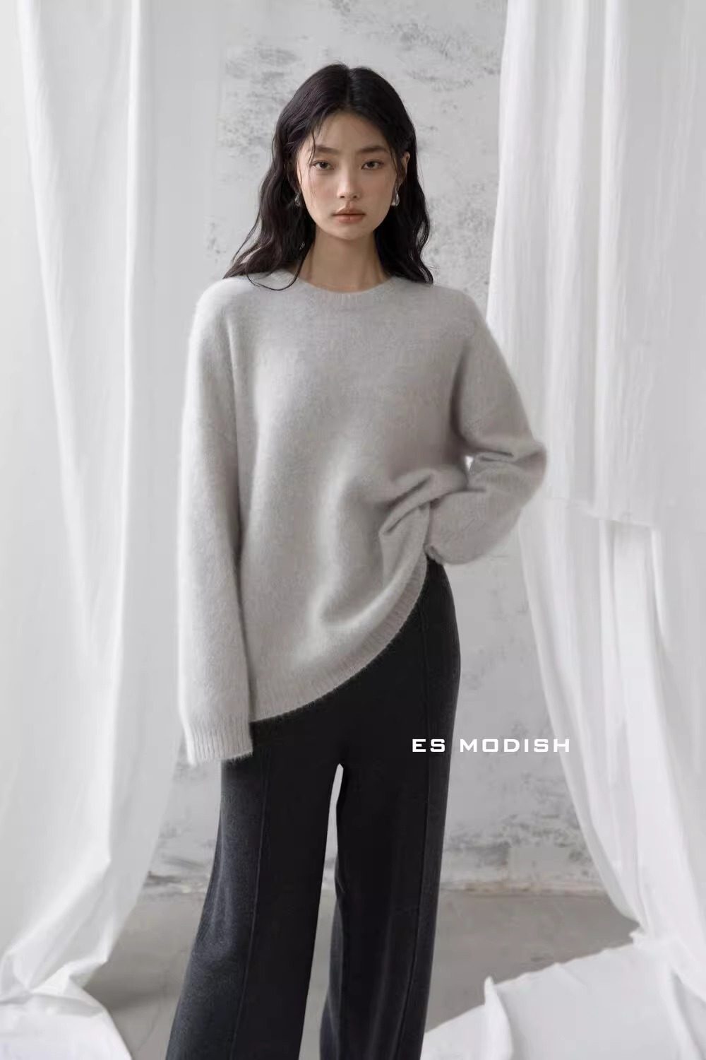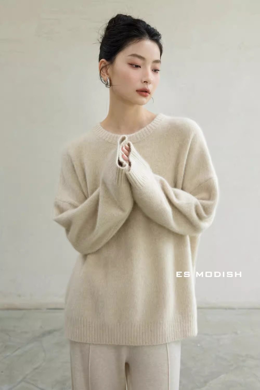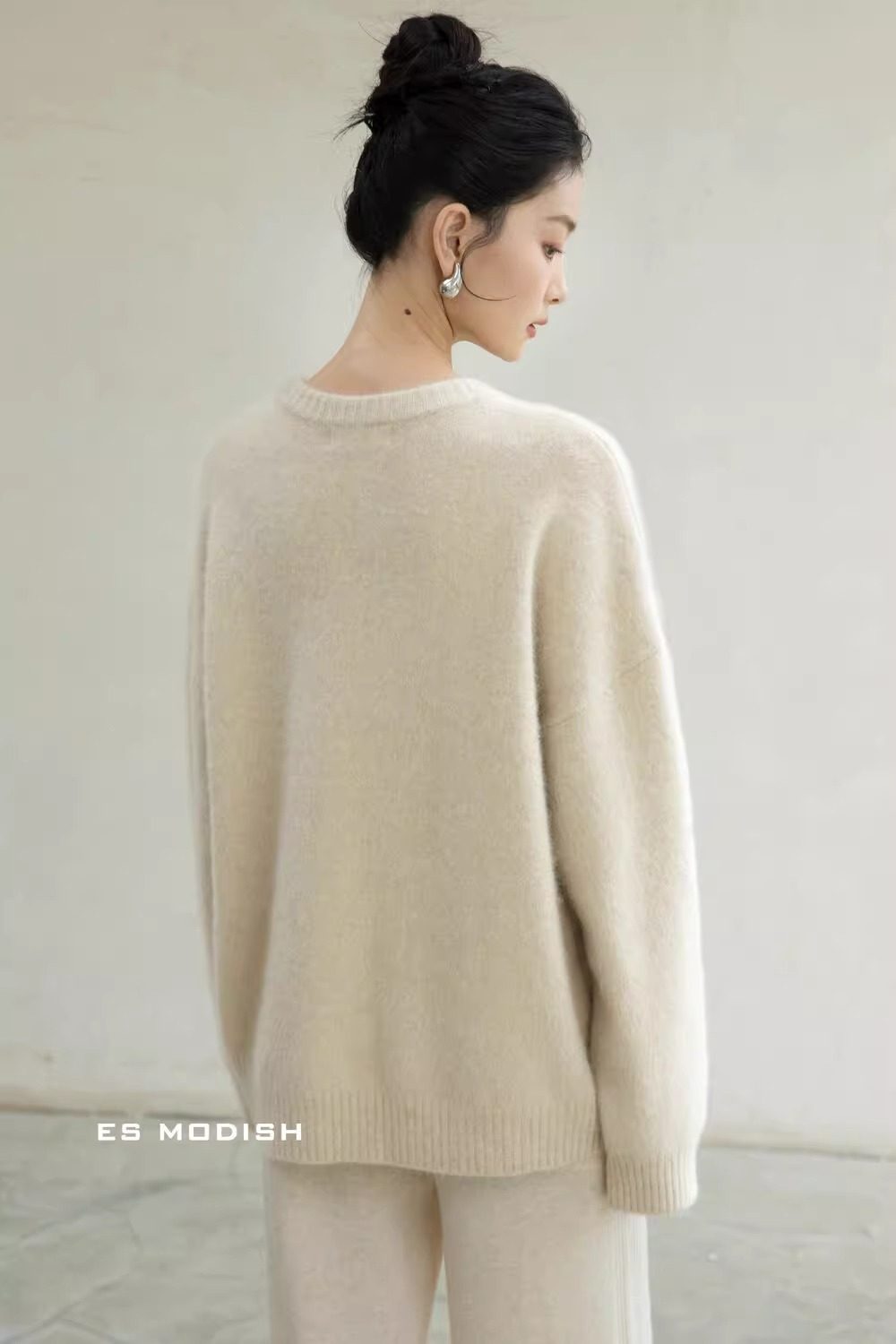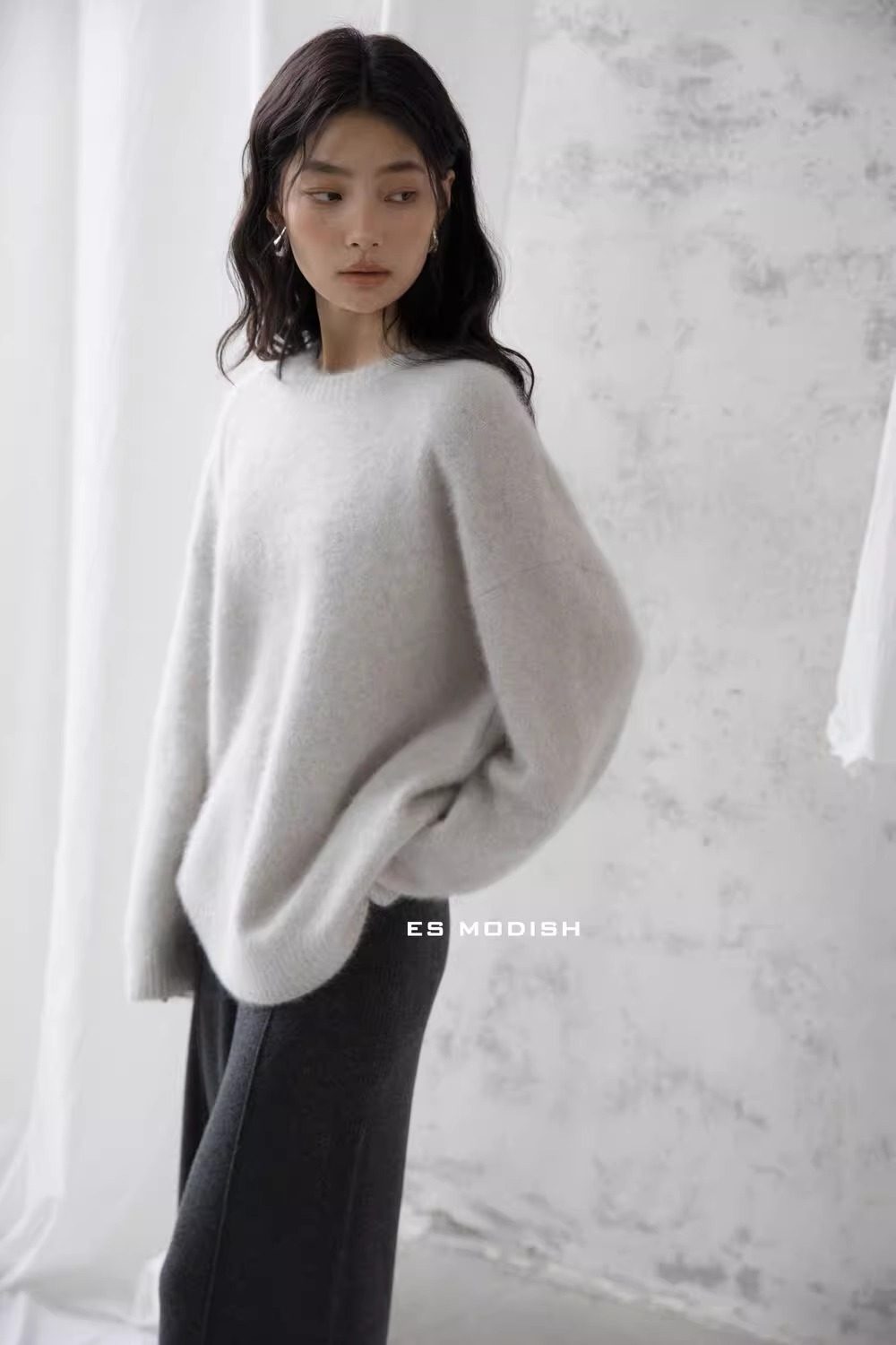 法式白色浣熊絨軟糯毛衣女秋冬高級感慵懶加厚套頭針織衫獨特上衣