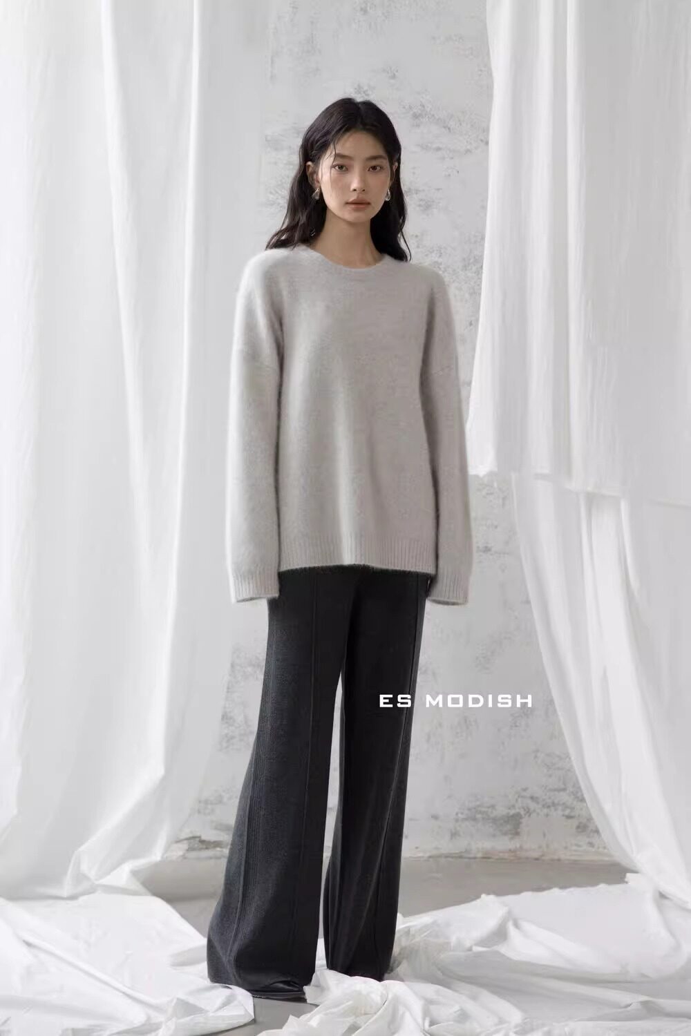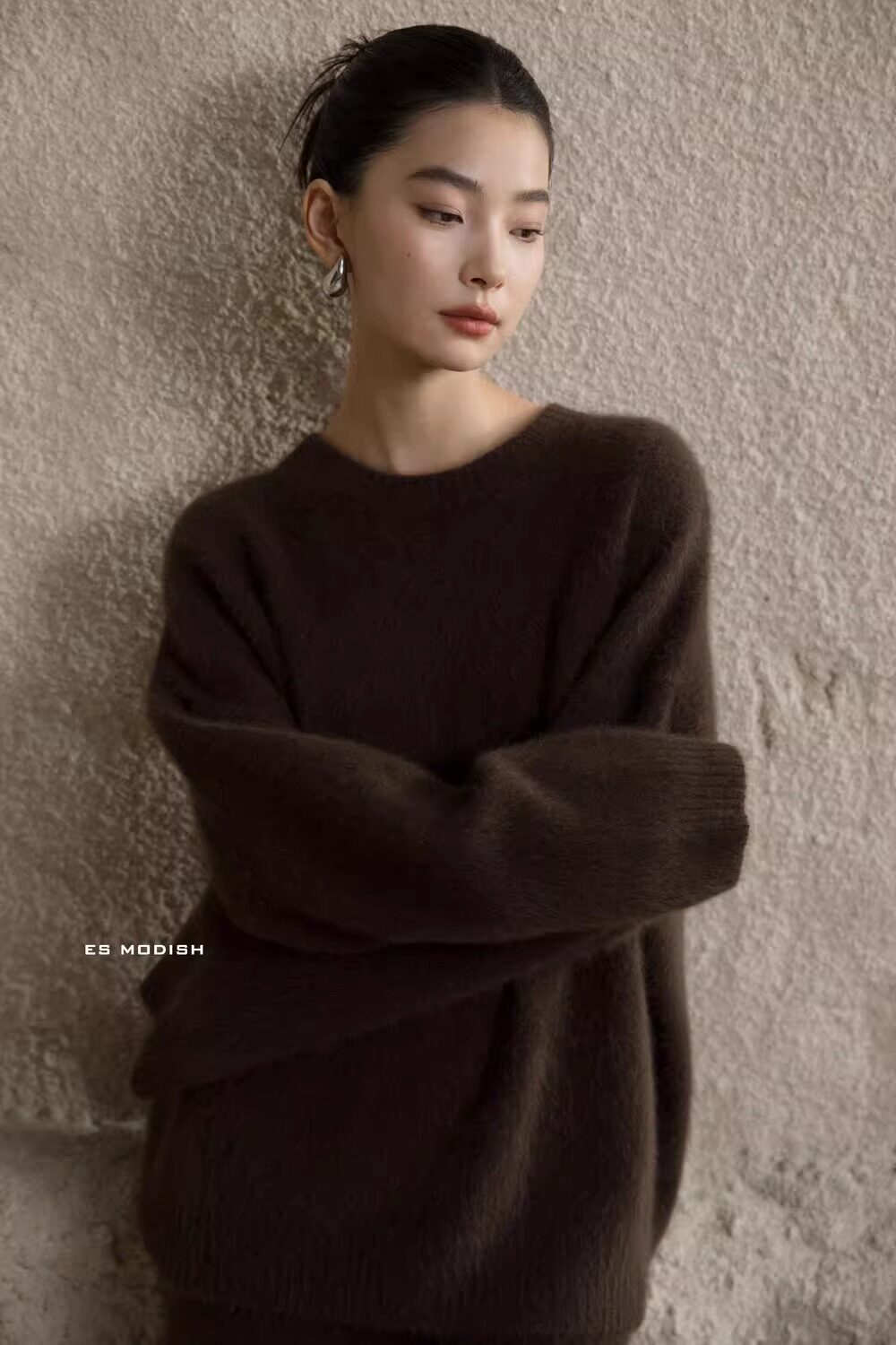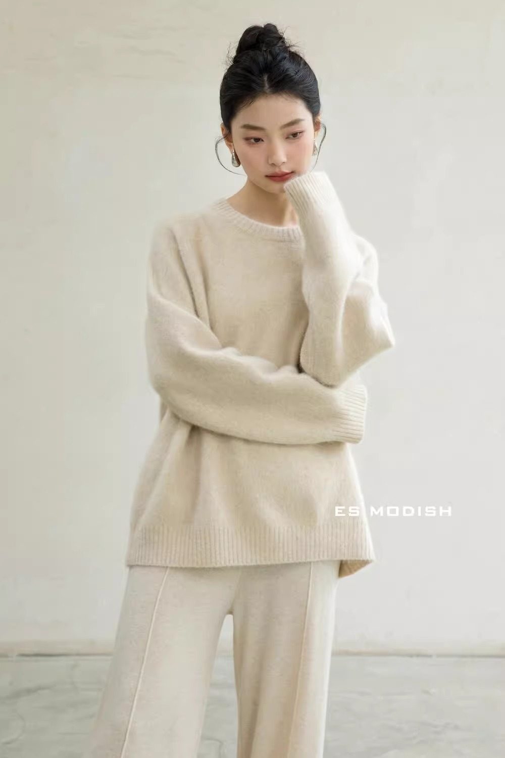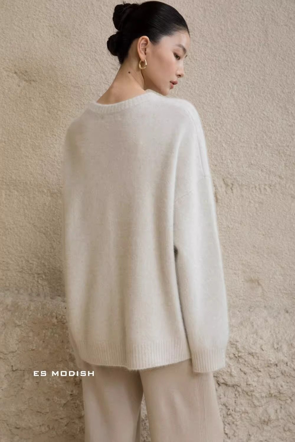 法式白色浣熊絨軟糯毛衣女秋冬高級感慵懶加厚套頭針織衫獨特上衣
