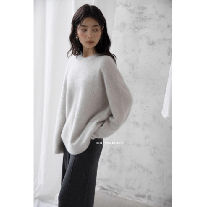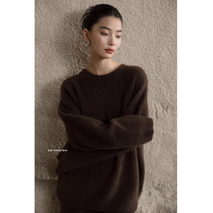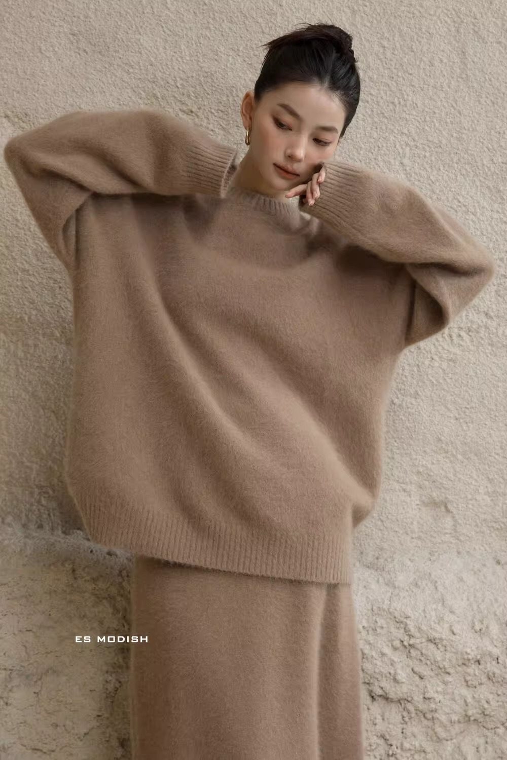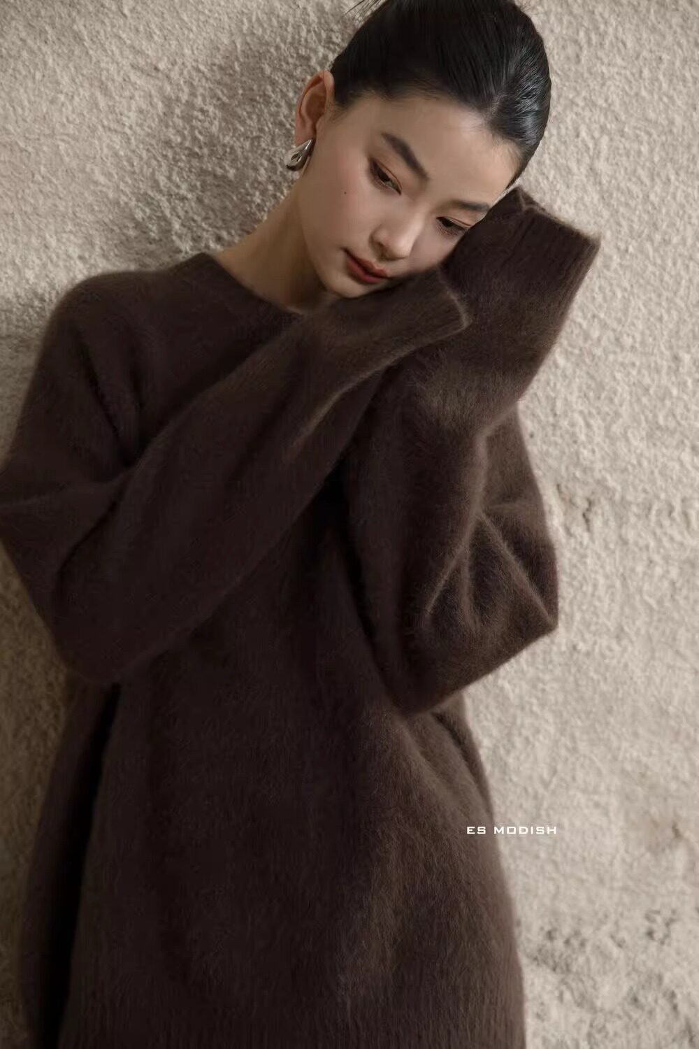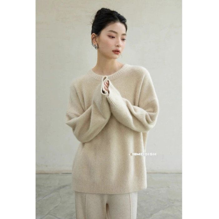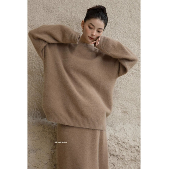 法式白色浣熊絨軟糯毛衣女秋冬高級感慵懶加厚套頭針織衫獨特上衣