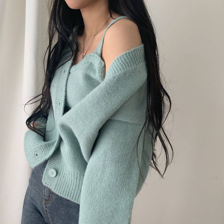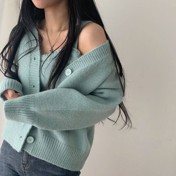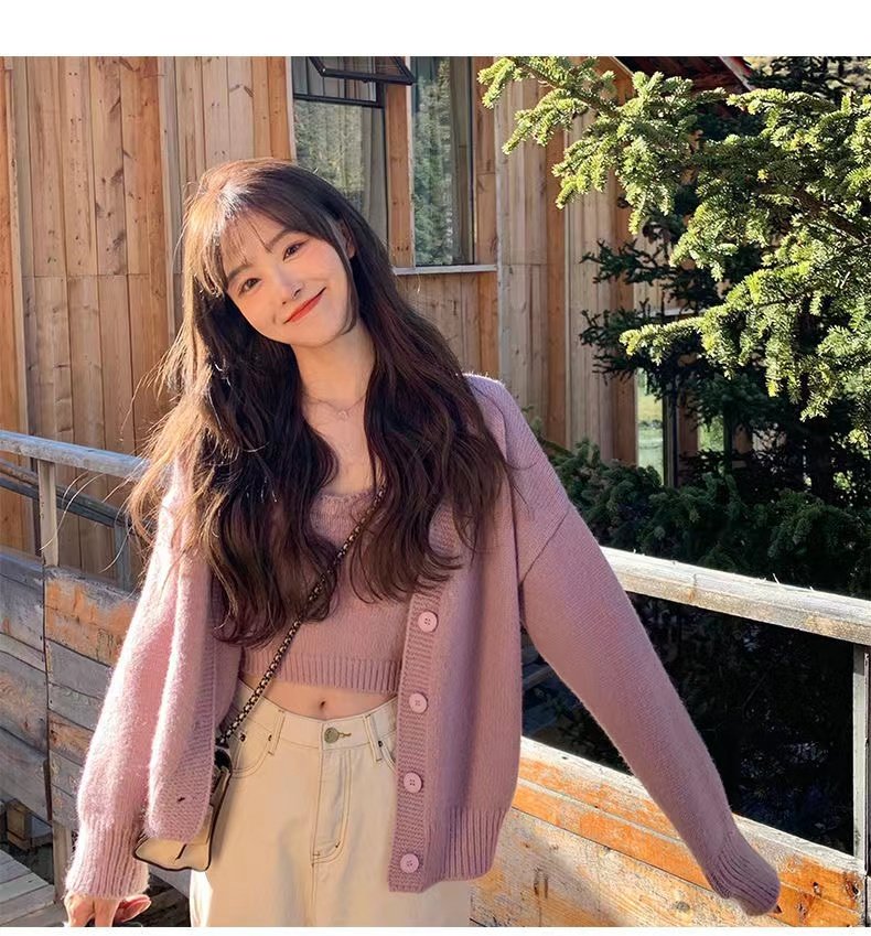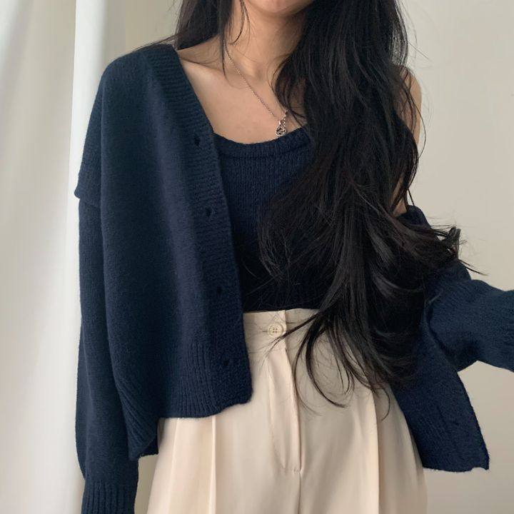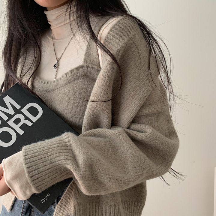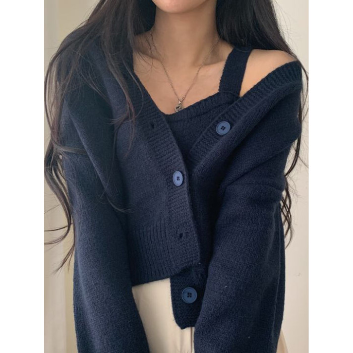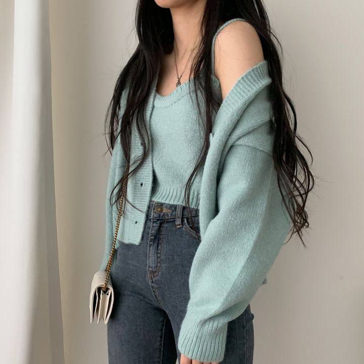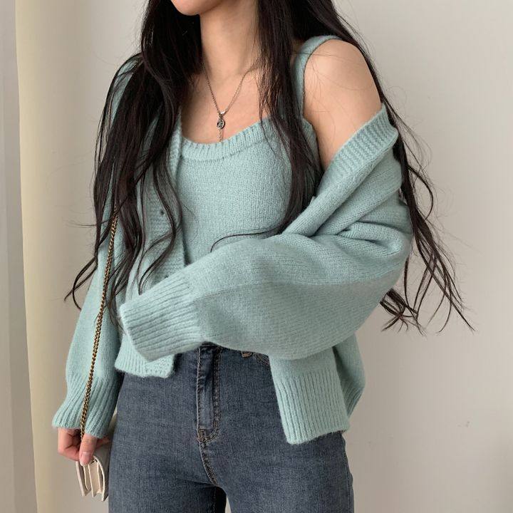斬男溫柔小香風純色毛衣外套女2025年春秋新款背心針織開衫兩件套