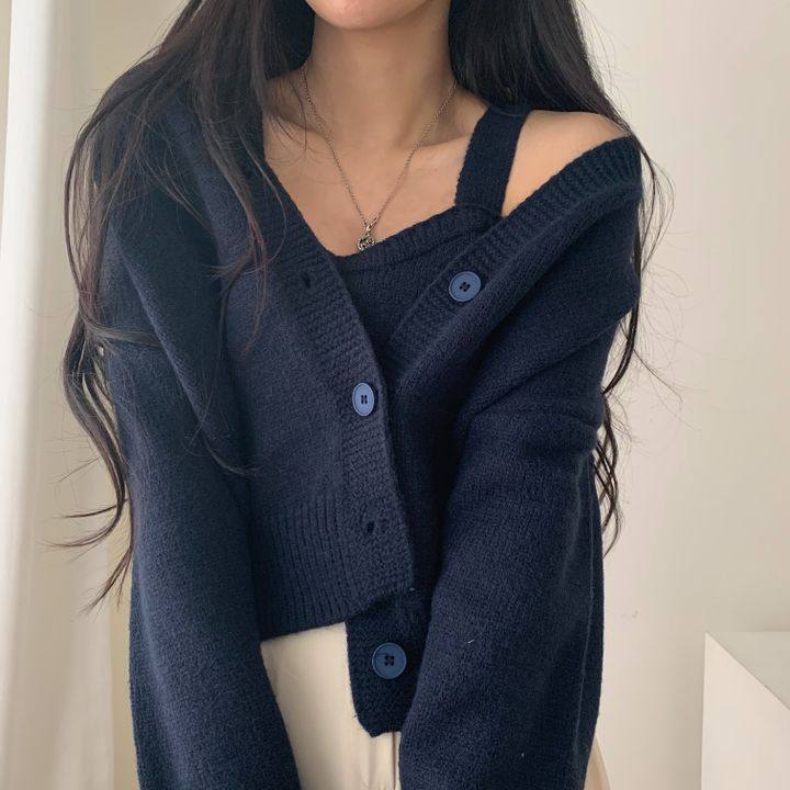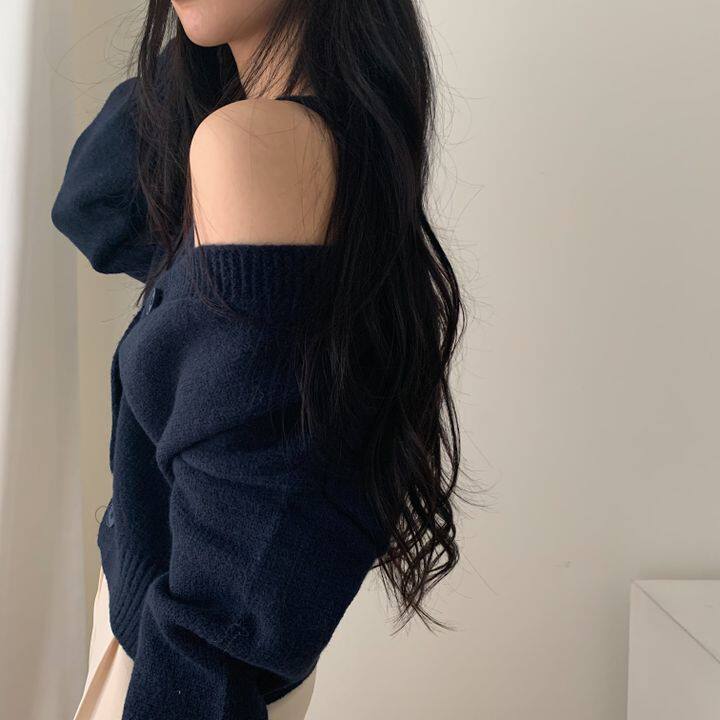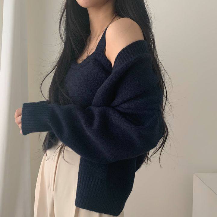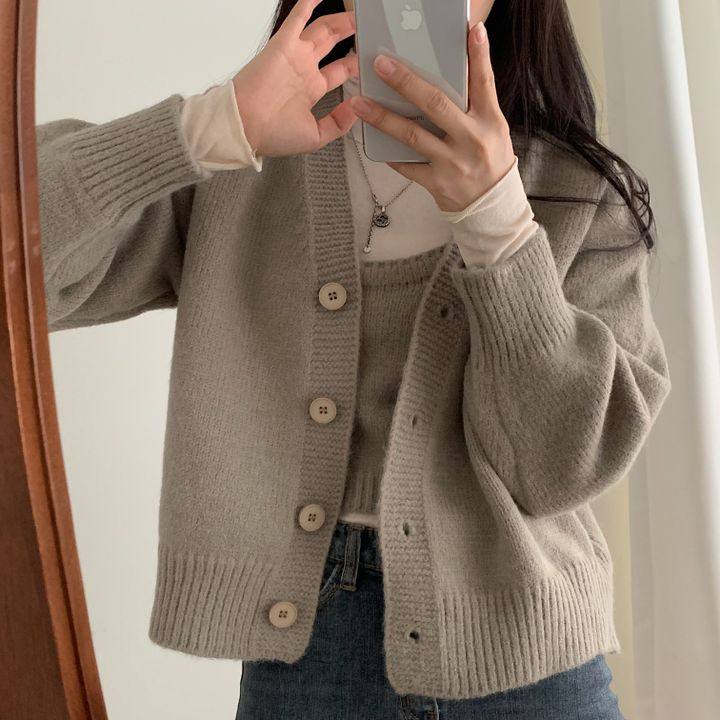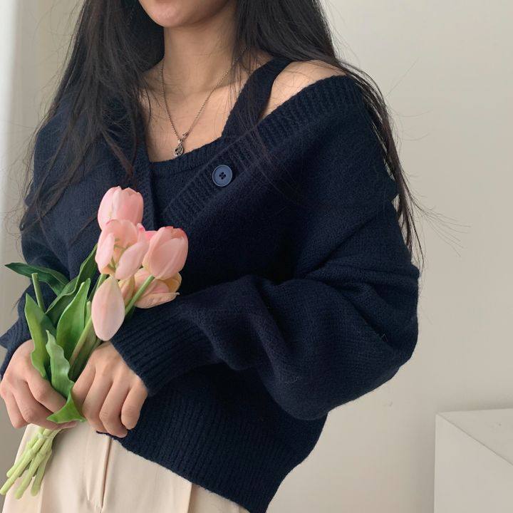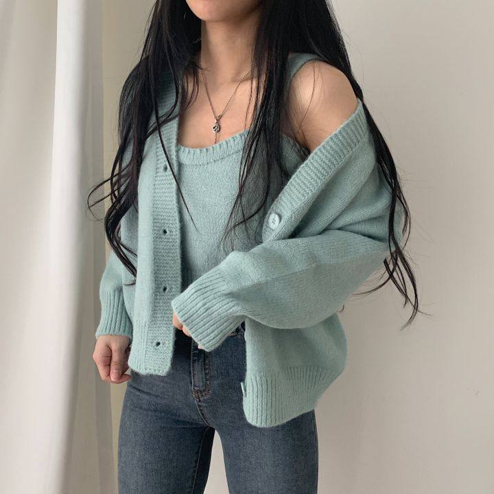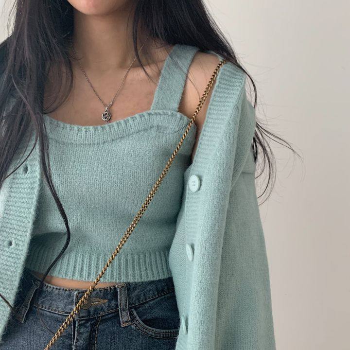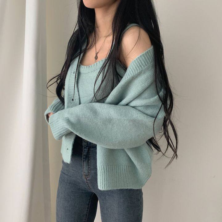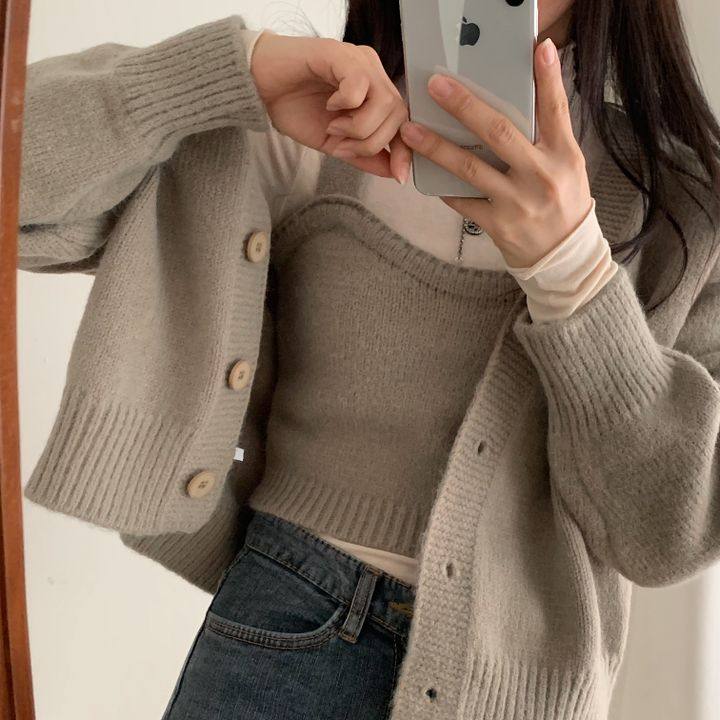 斬男溫柔小香風純色毛衣外套女2025年春秋新款背心針織開衫兩件套