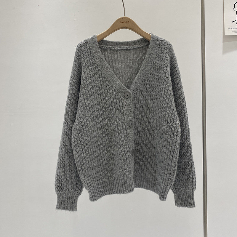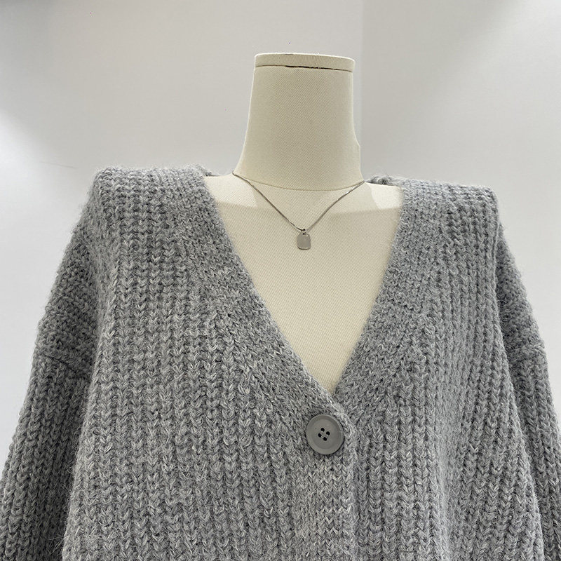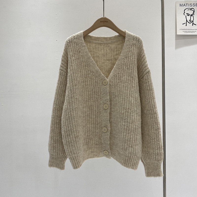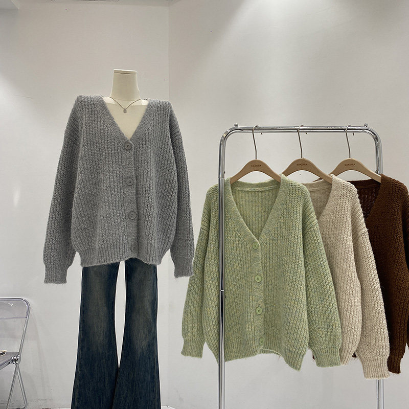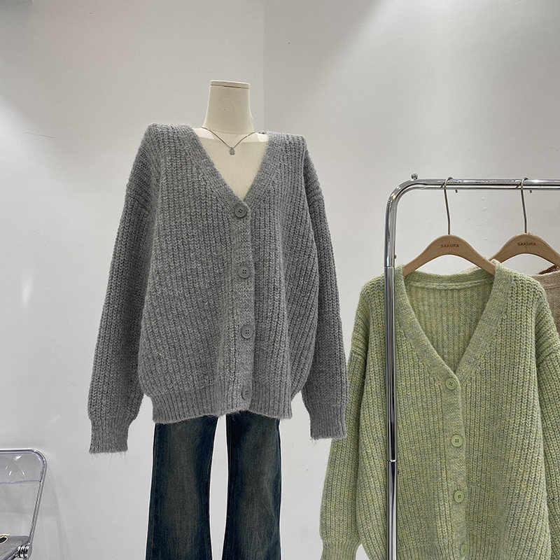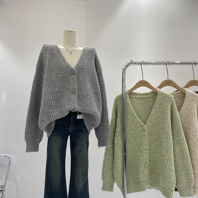 慵懶風針織開衫女秋冬2024年新款韓版寬松百搭V領長袖毛衣外套ins