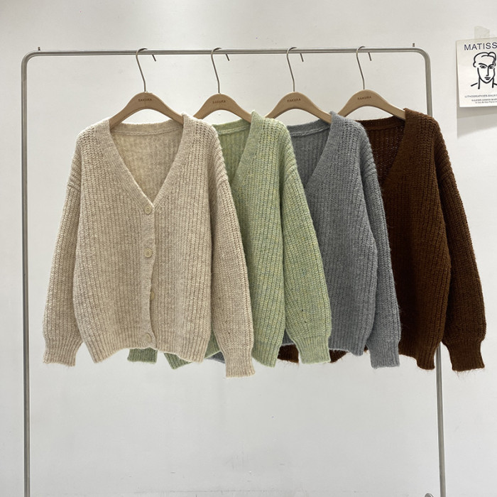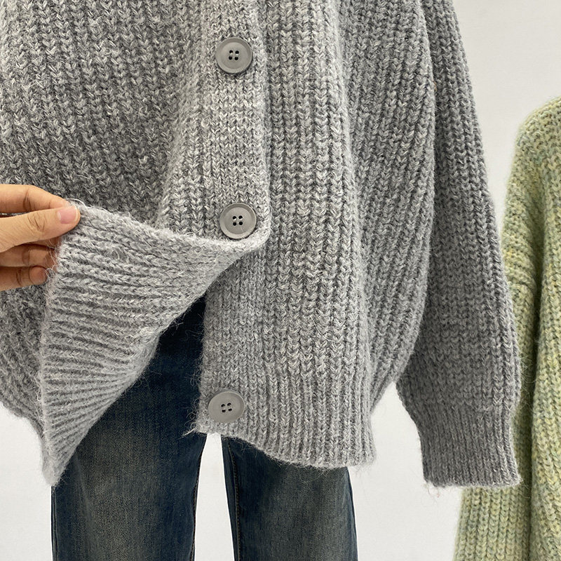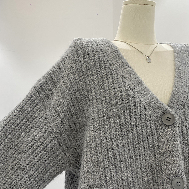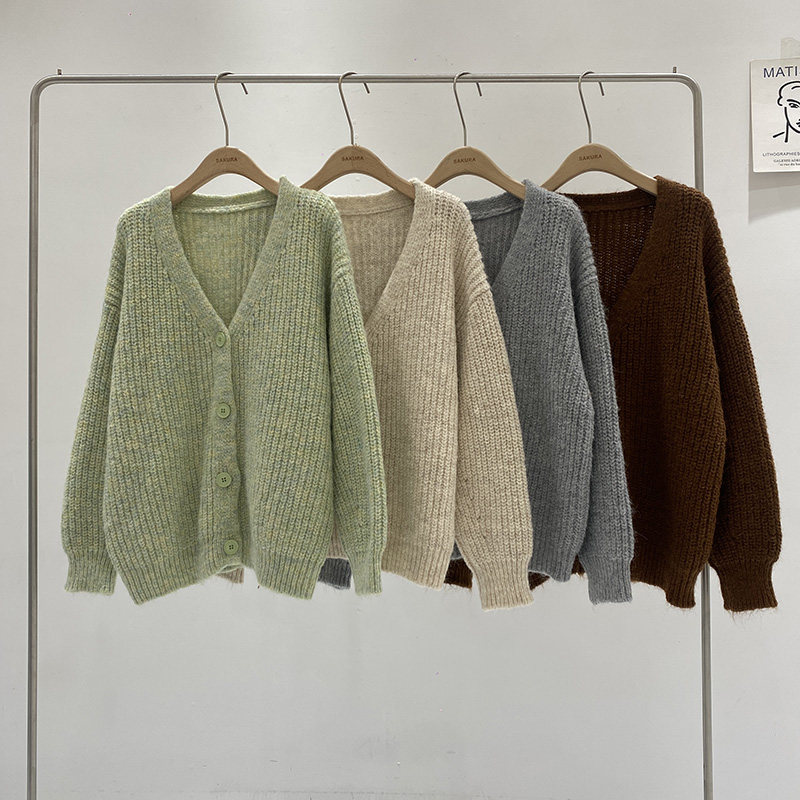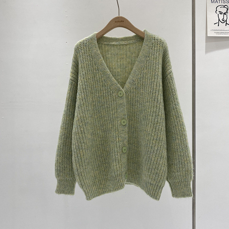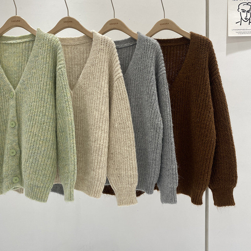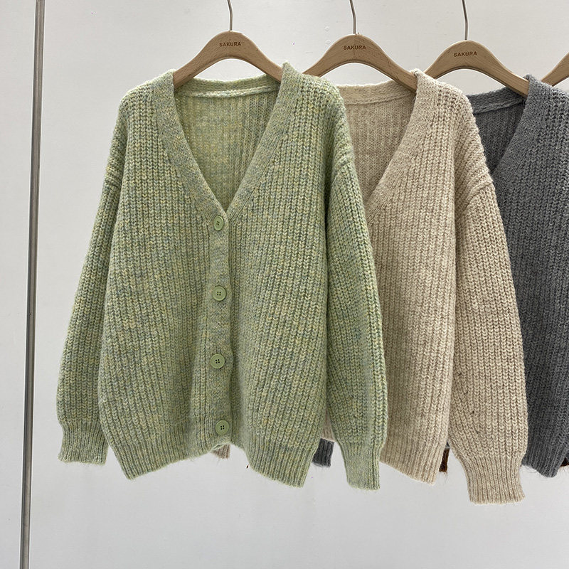 慵懶風針織開衫女秋冬2024年新款韓版寬松百搭V領長袖毛衣外套ins