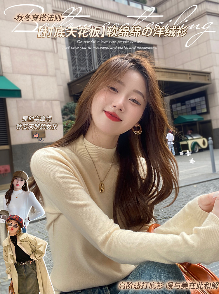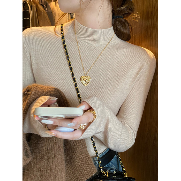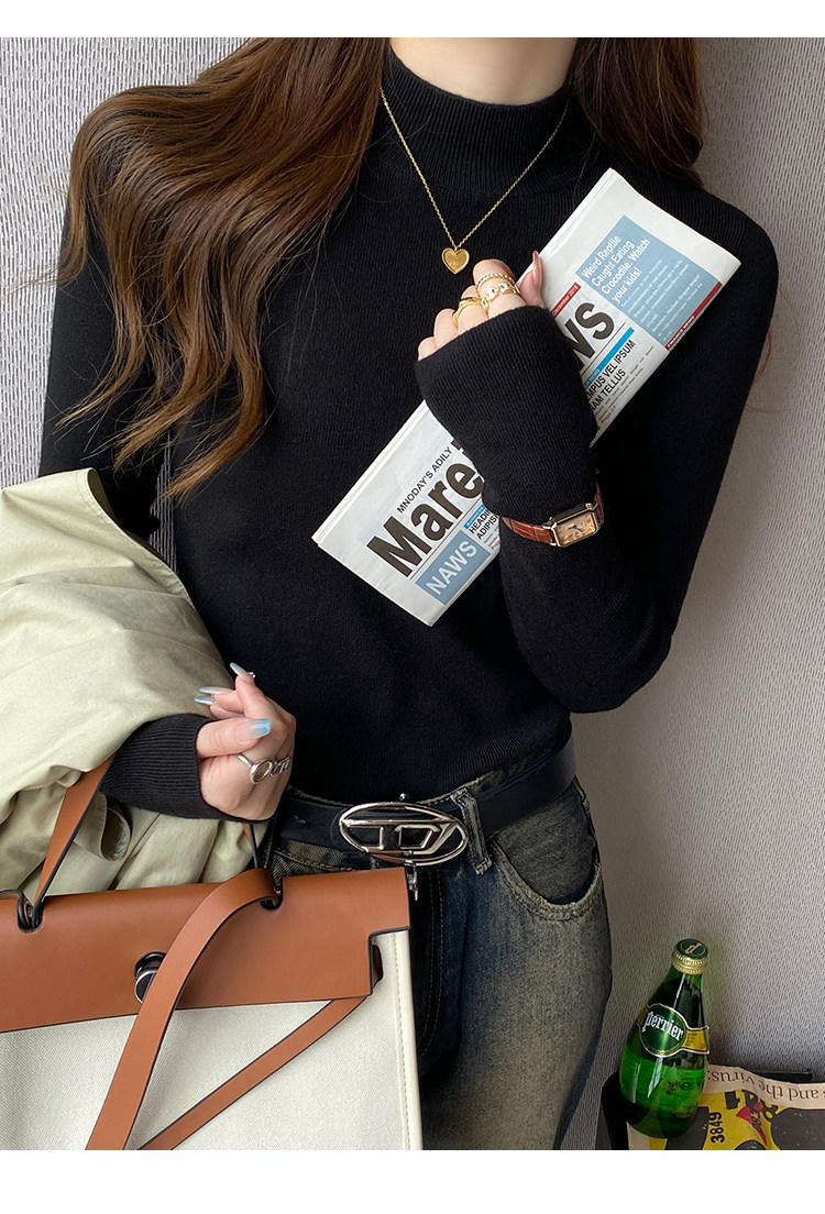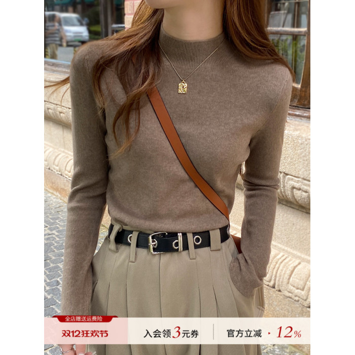 毛衣女秋冬2025新款爆款半高領羊毛打底衫高級感內搭黑色針織上衣