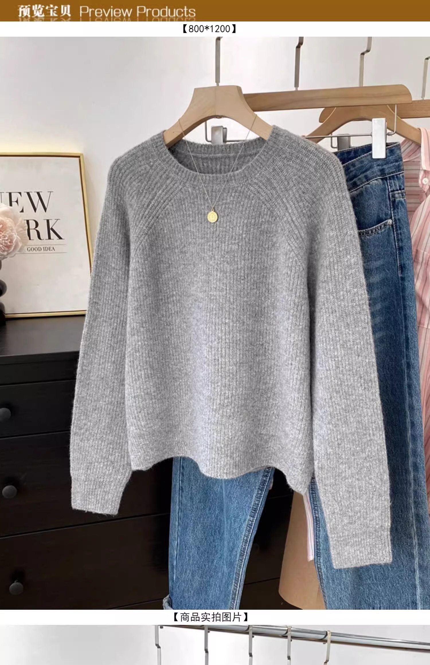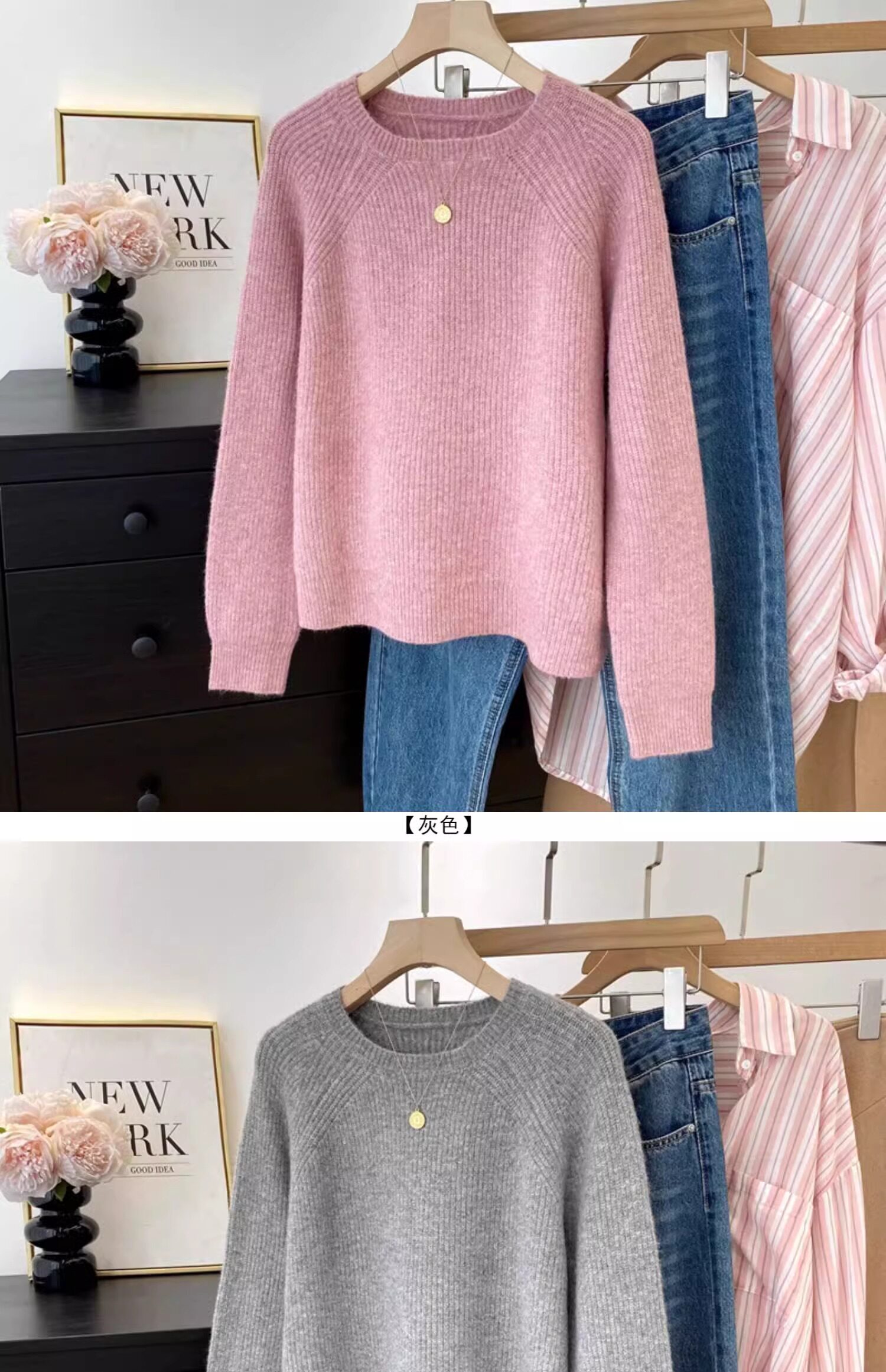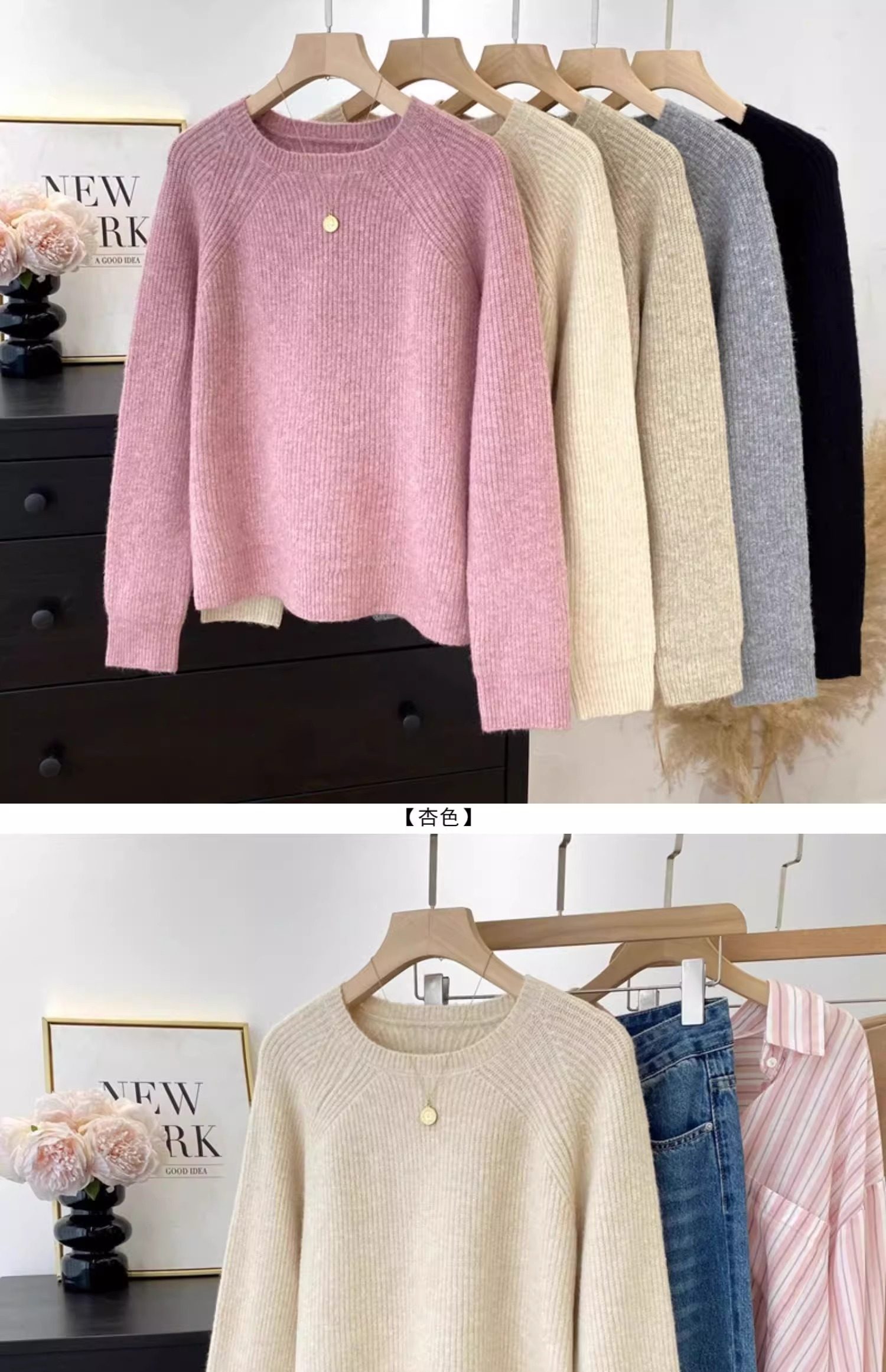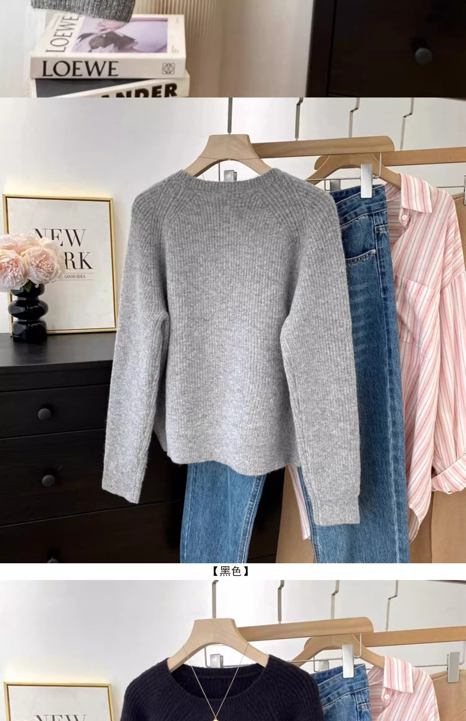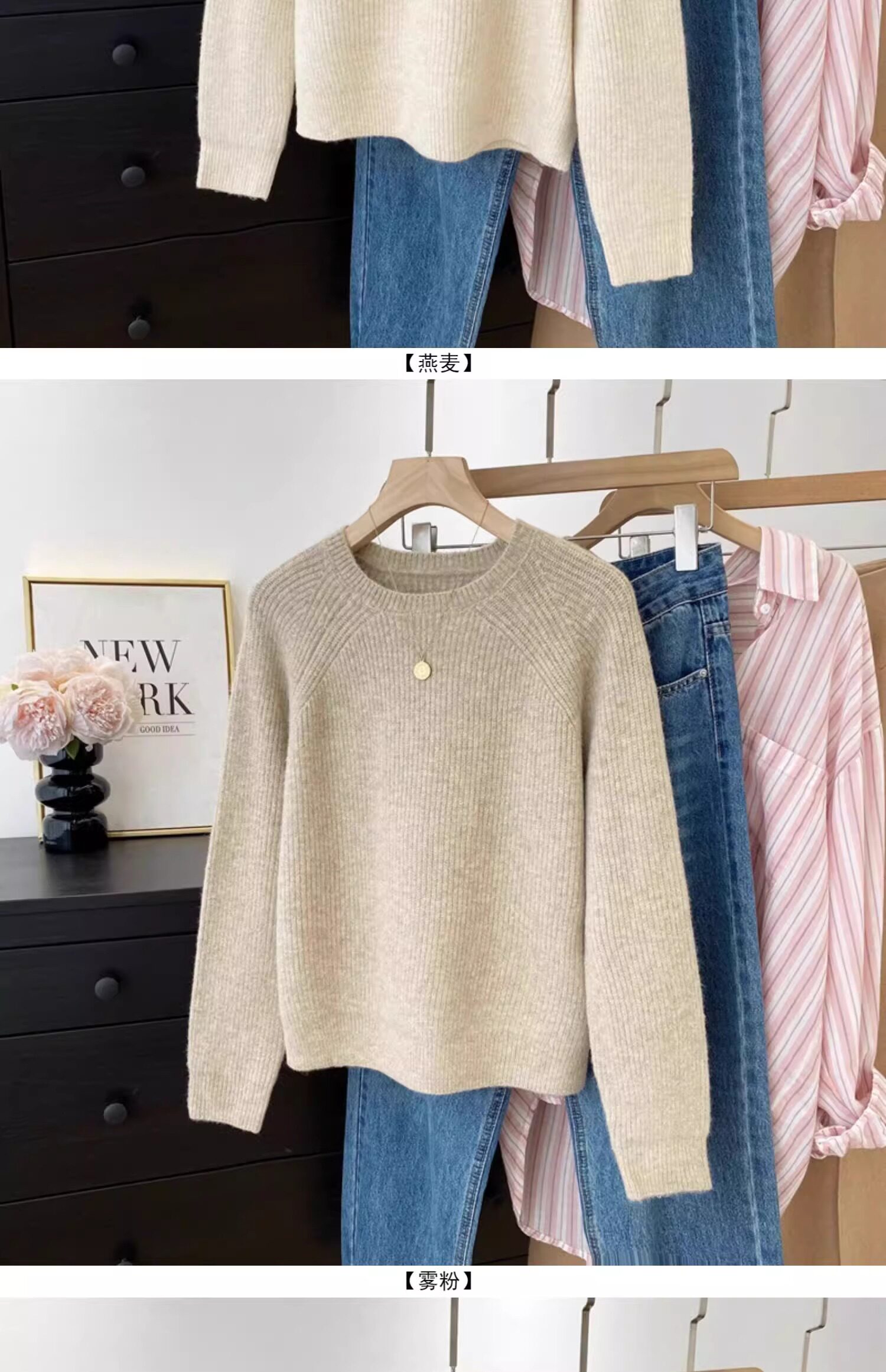 圓領插肩袖純色針織衫女2025秋冬新款曡穿毛衣慵懶風氣質穿搭上衣