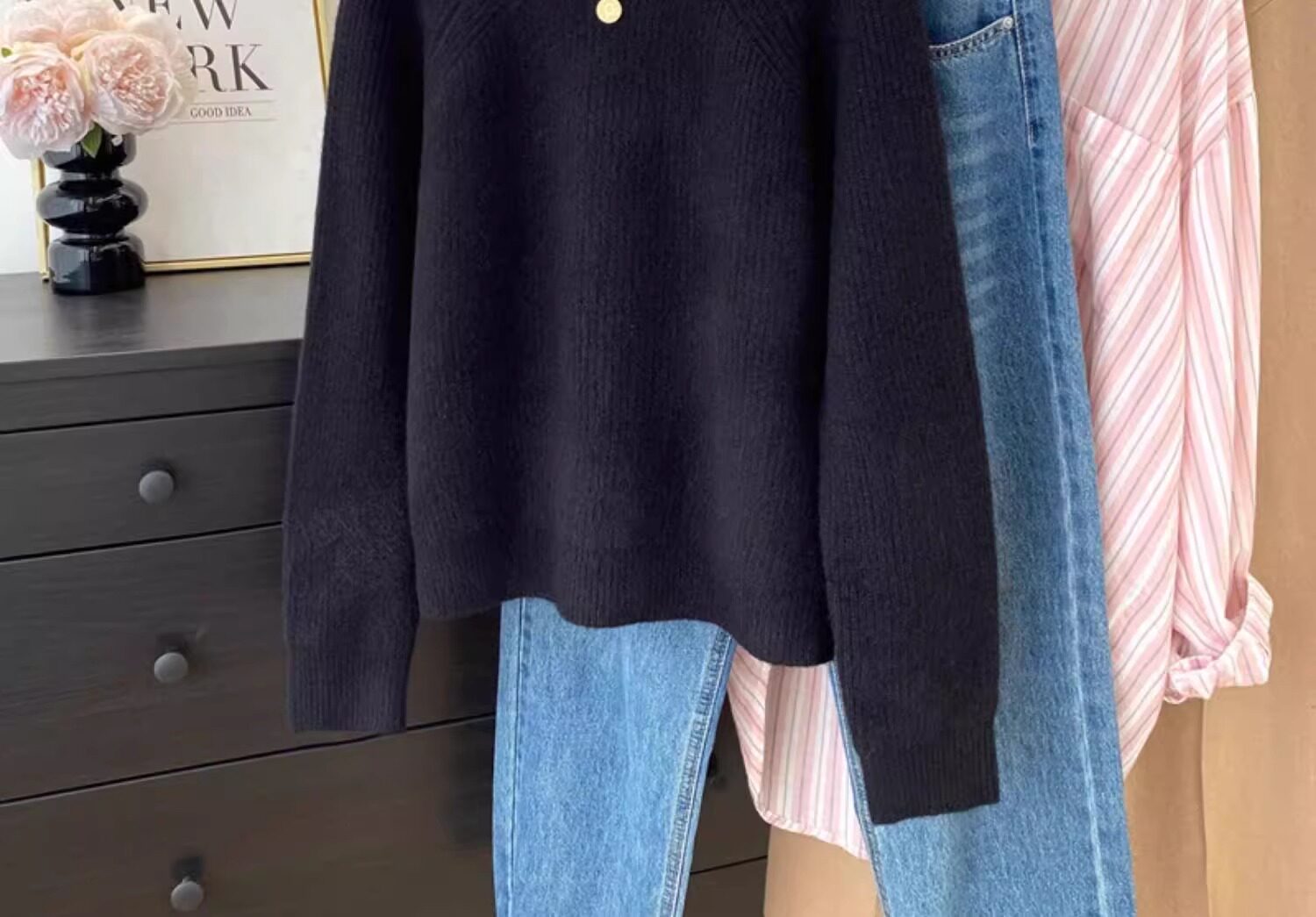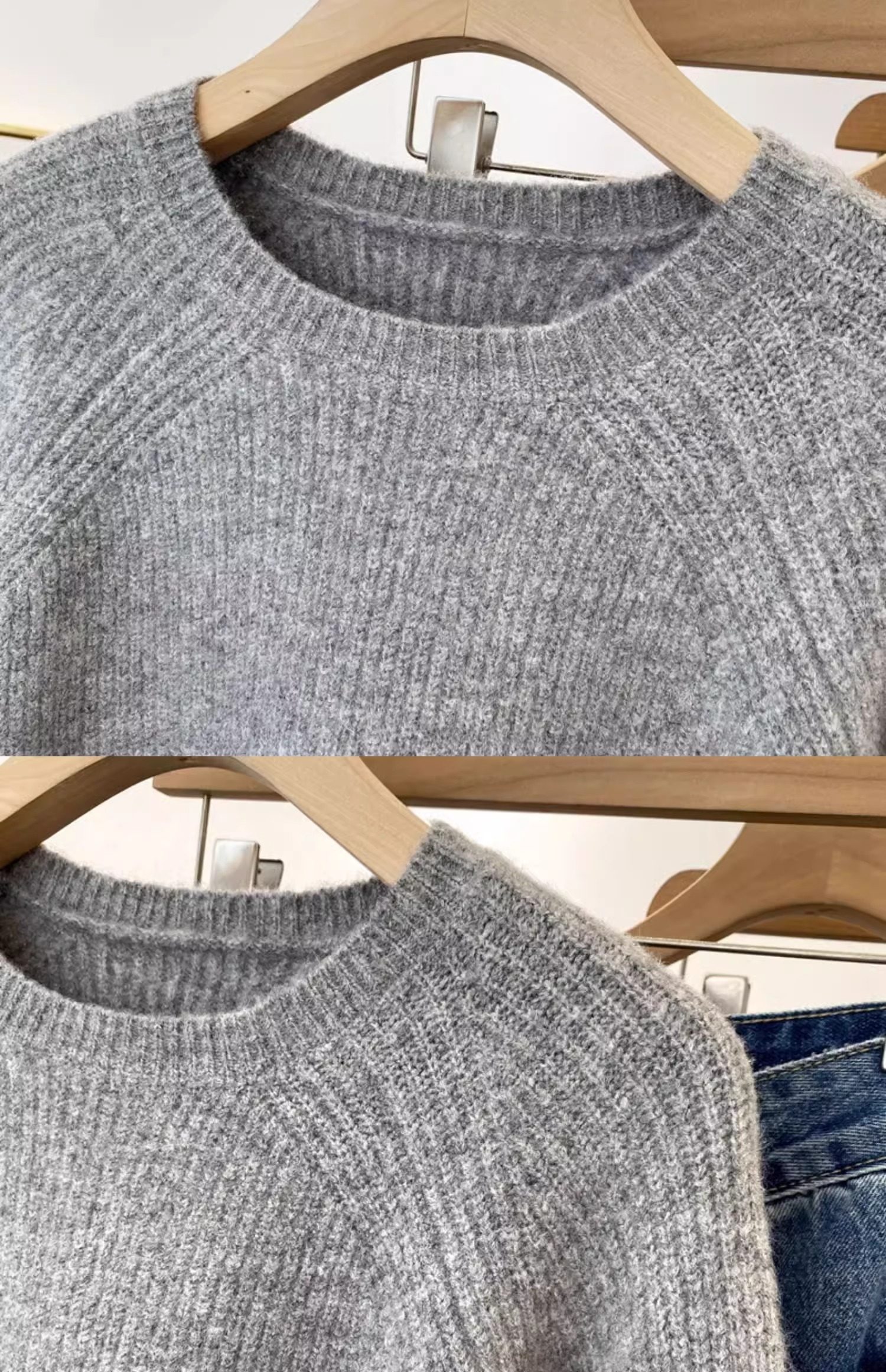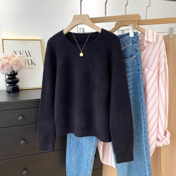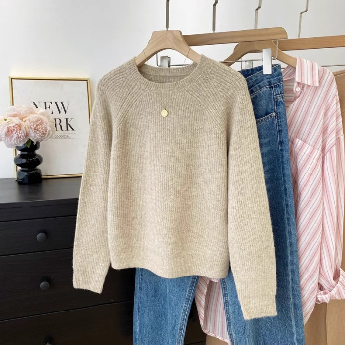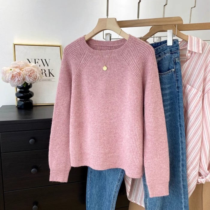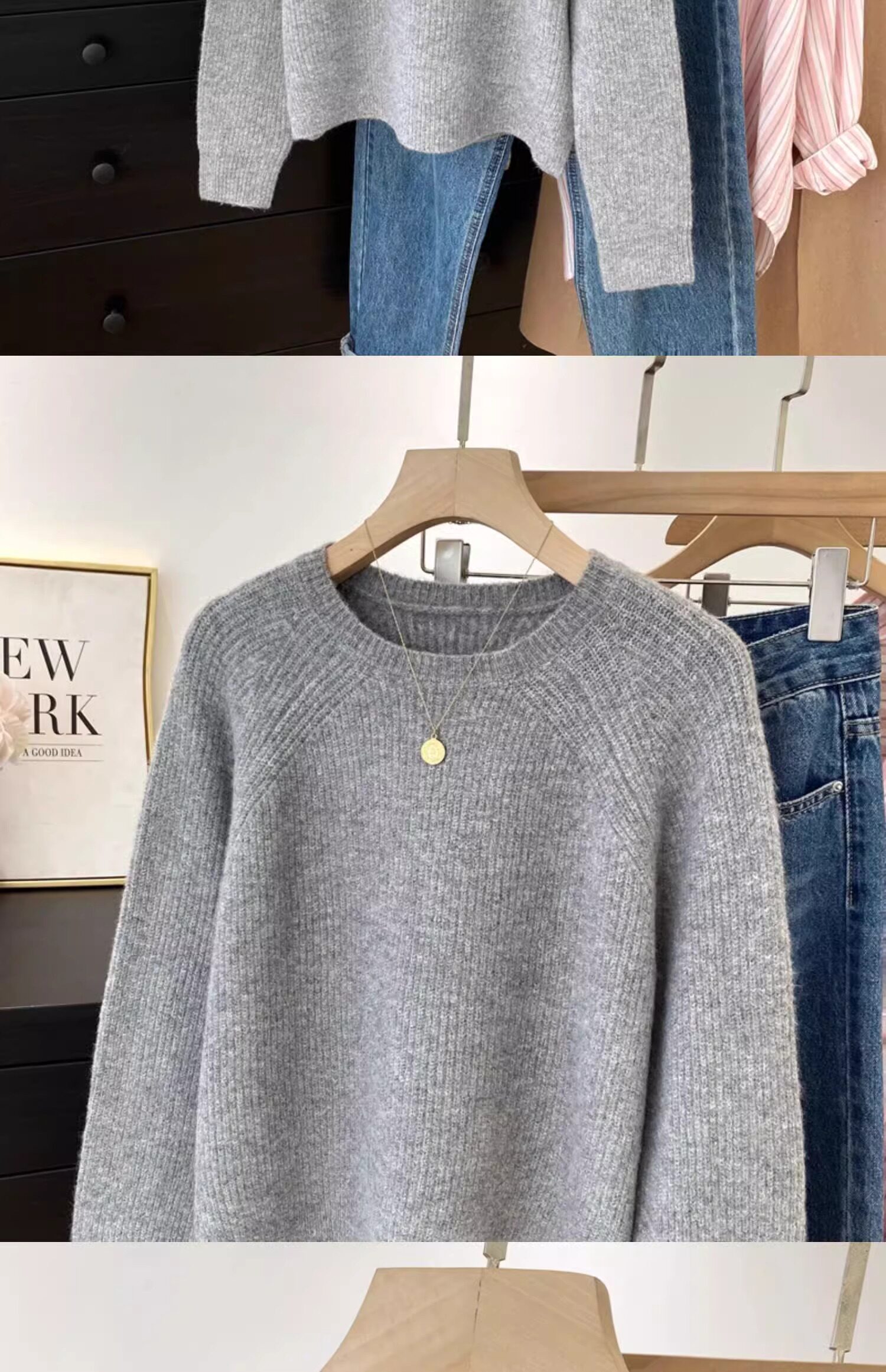 圓領插肩袖純色針織衫女2025秋冬新款曡穿毛衣慵懶風氣質穿搭上衣