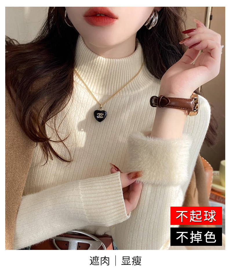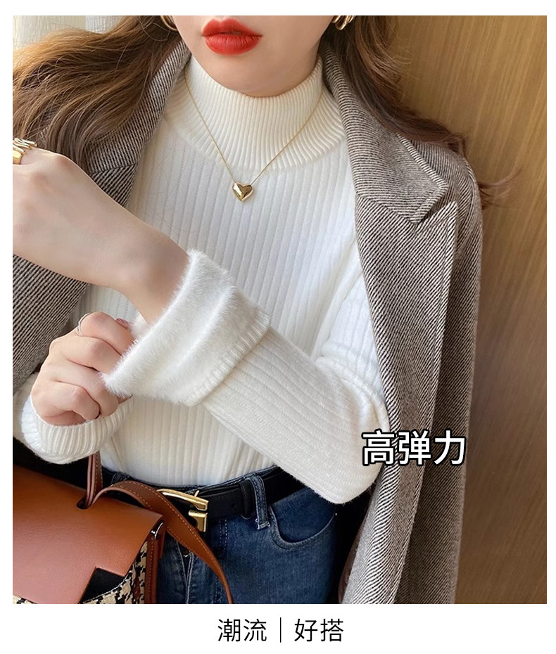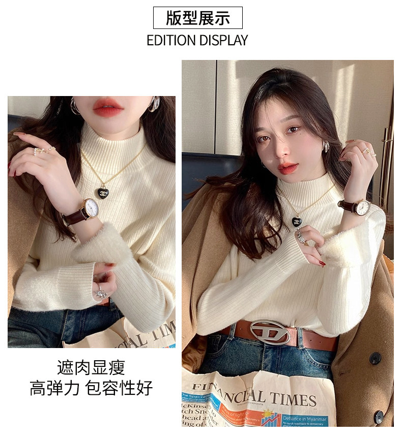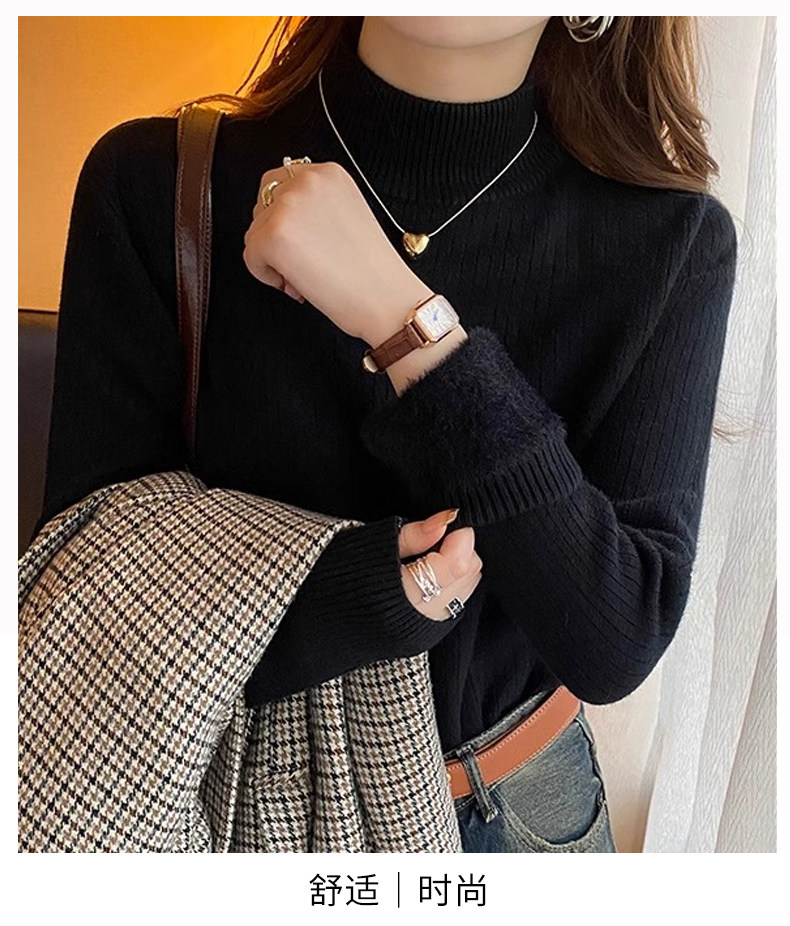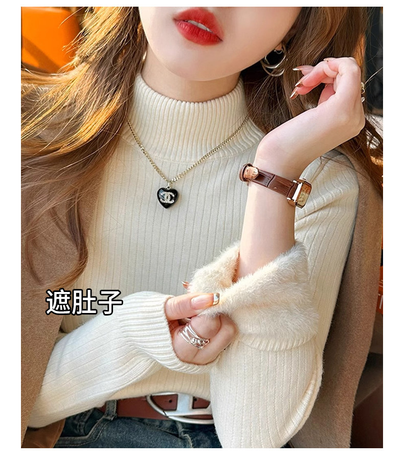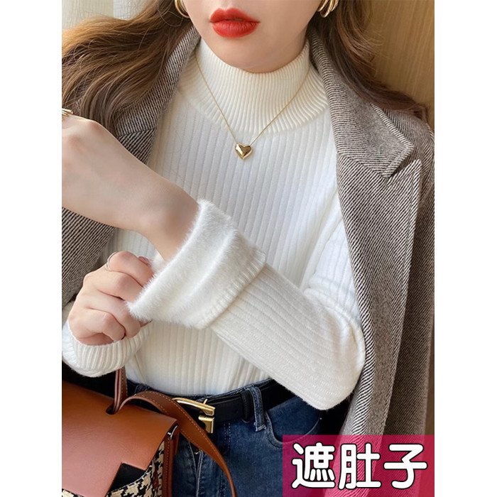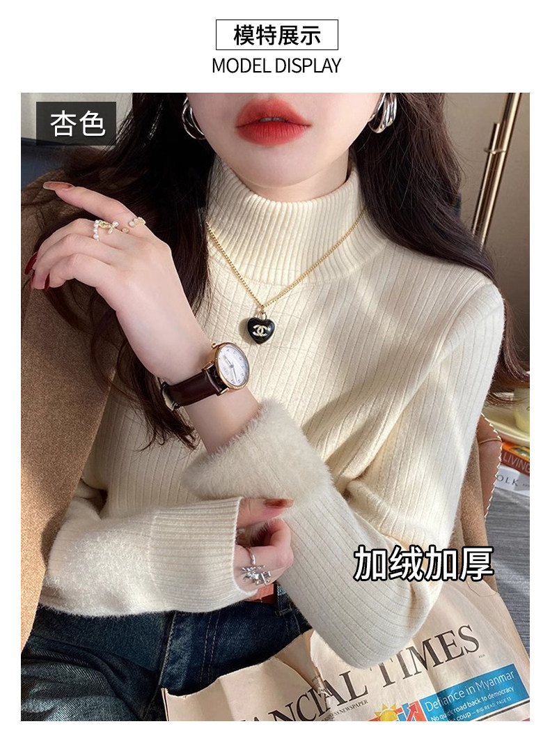 大碼加絨加厚毛衣女秋冬內搭一體絨半高領打底衫保暖針織上衣胖mm