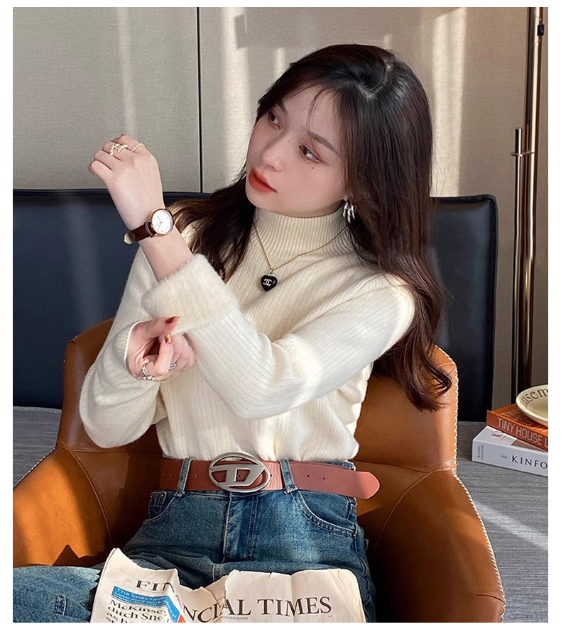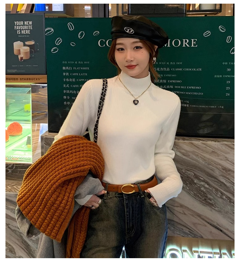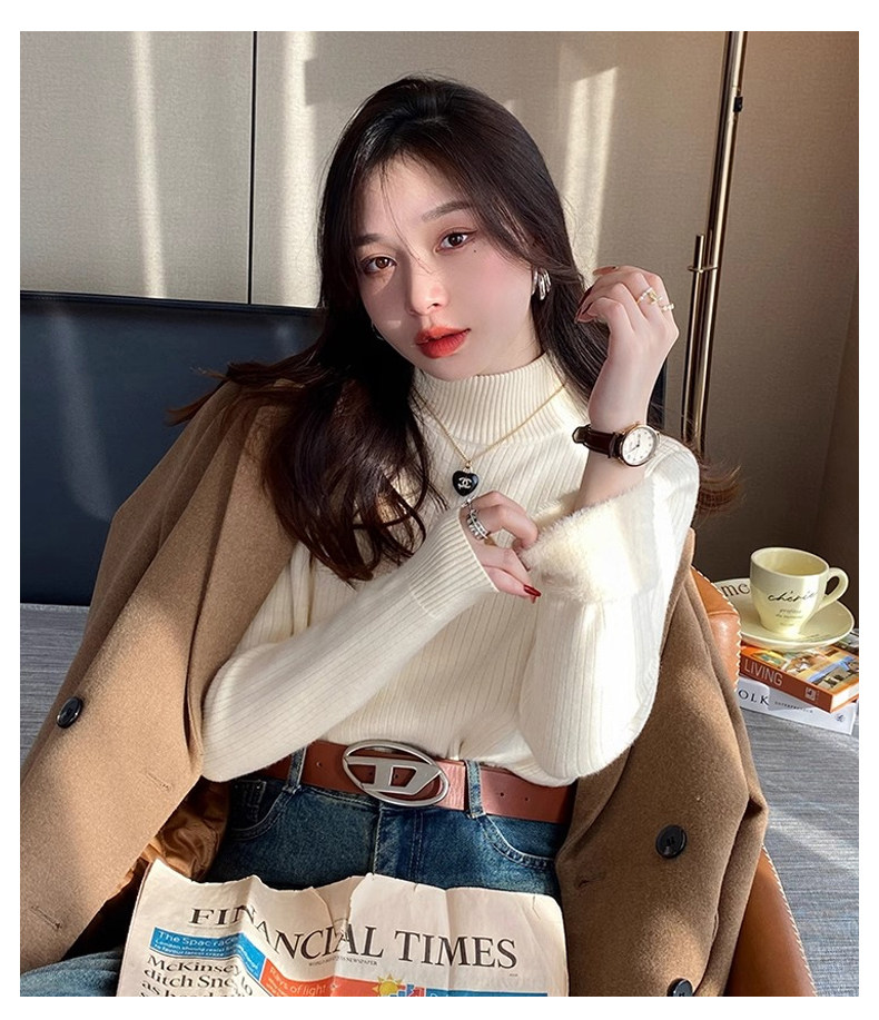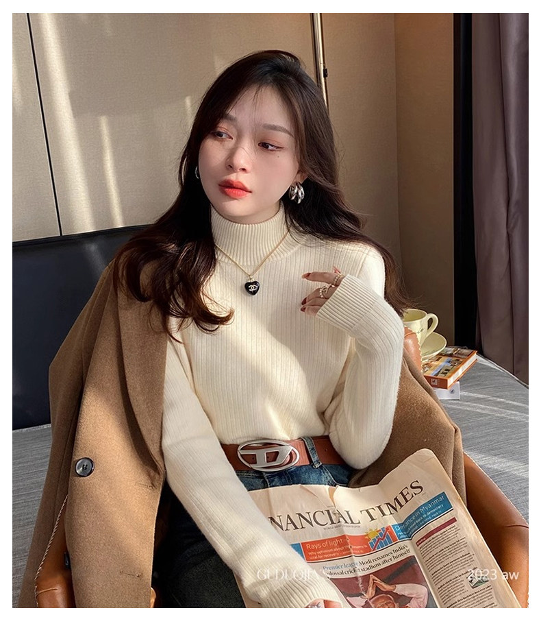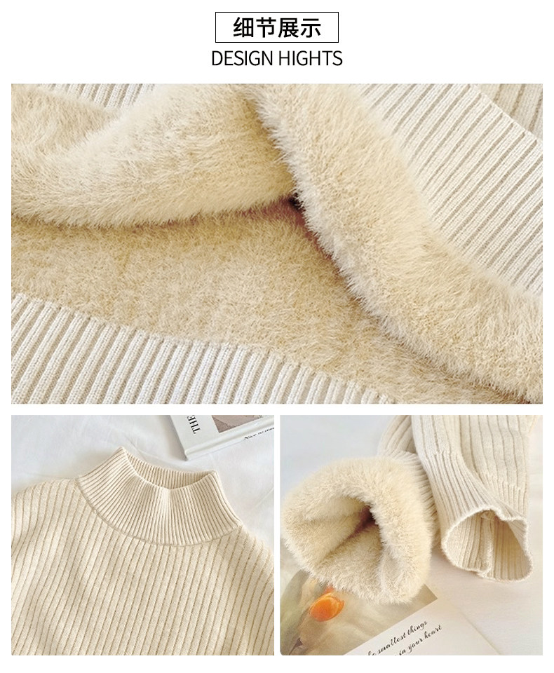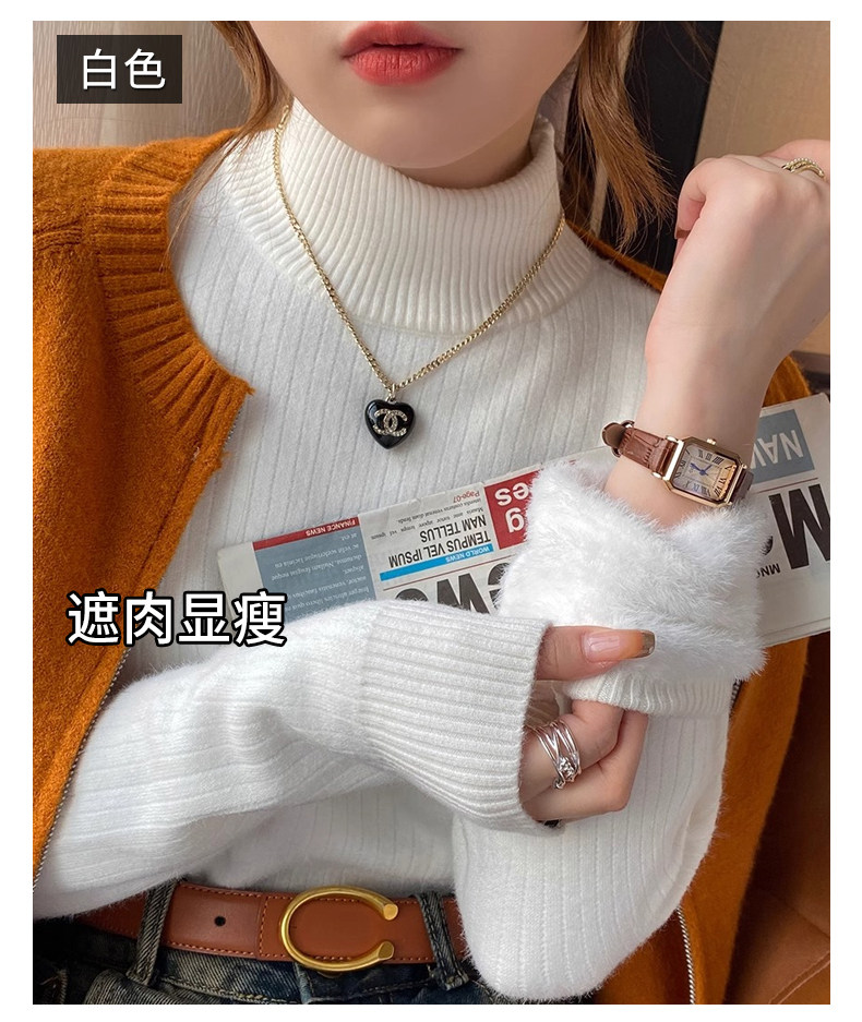 大碼加絨加厚毛衣女秋冬內搭一體絨半高領打底衫保暖針織上衣胖mm