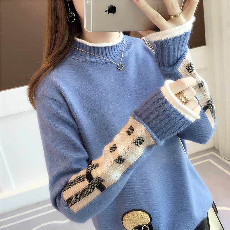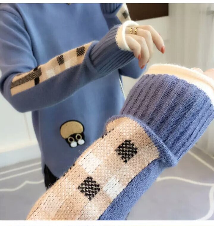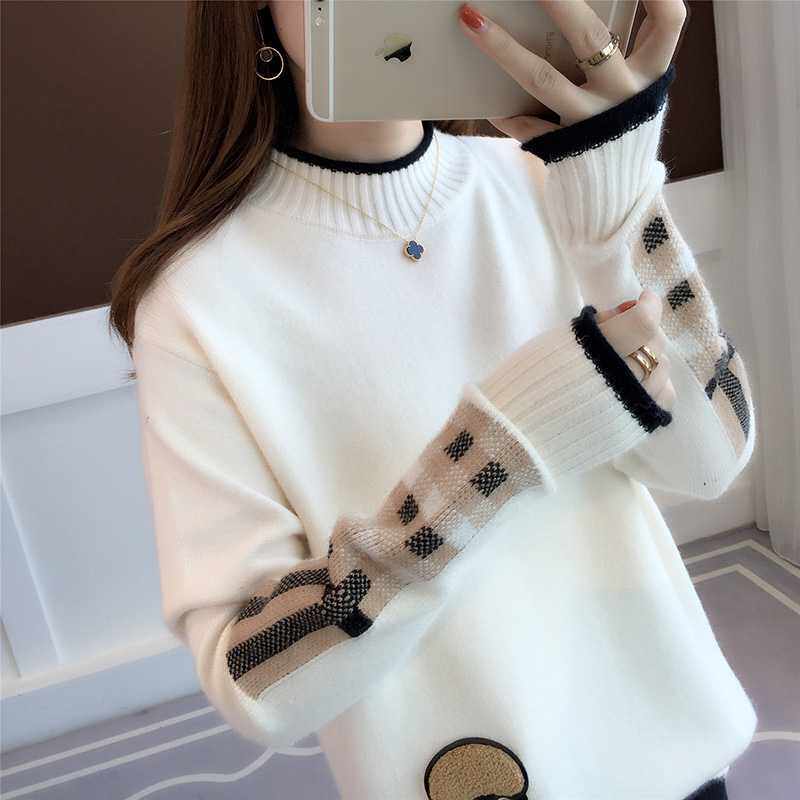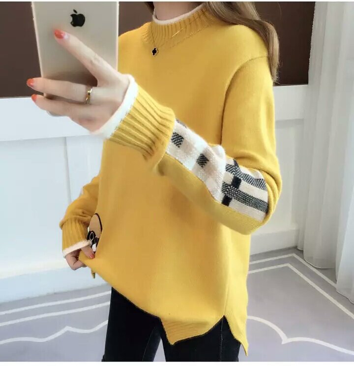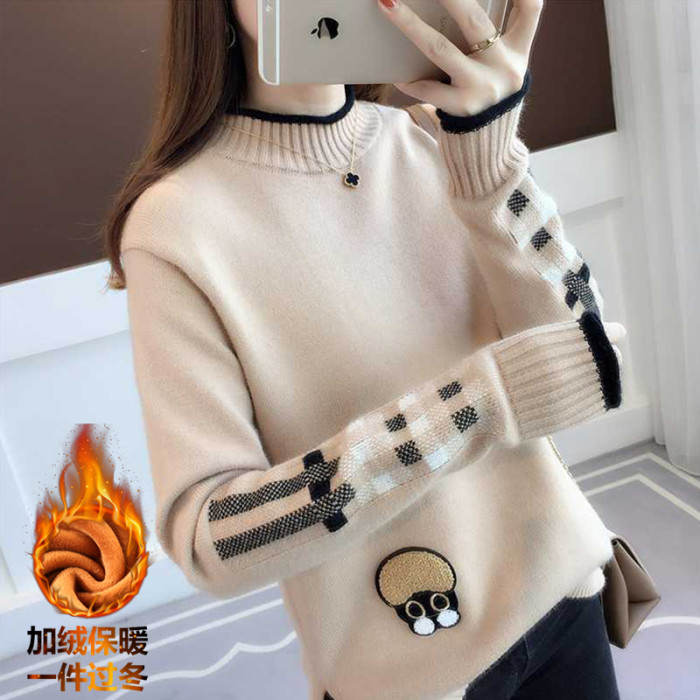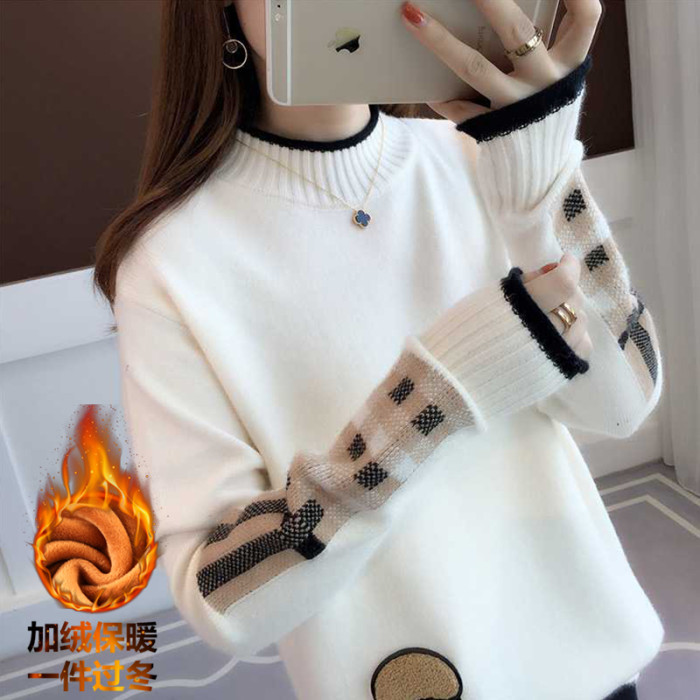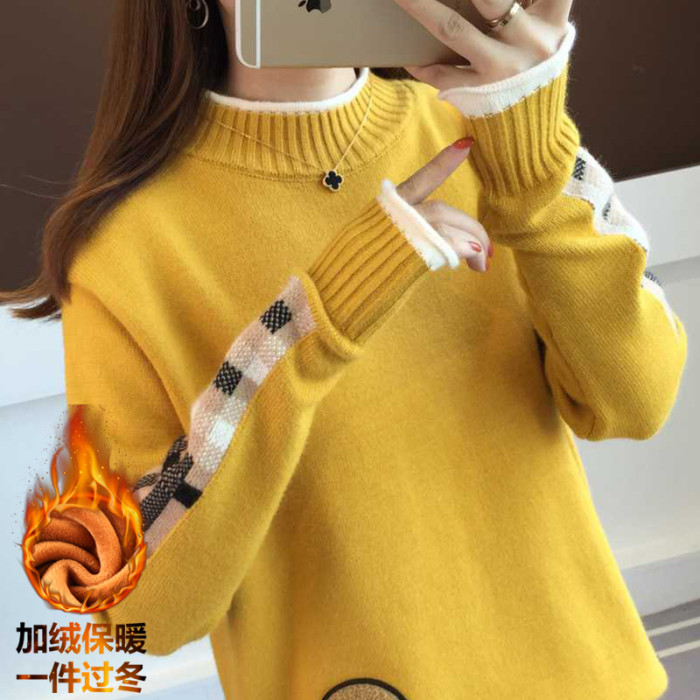 2025年秋冬新款加絨加厚針織衫女韓版寬松長袖洋氣可愛慵懶風毛衣