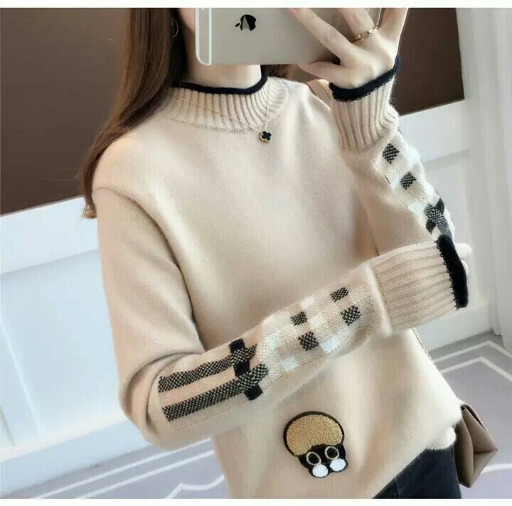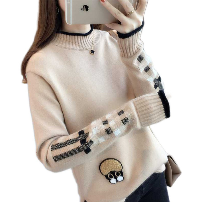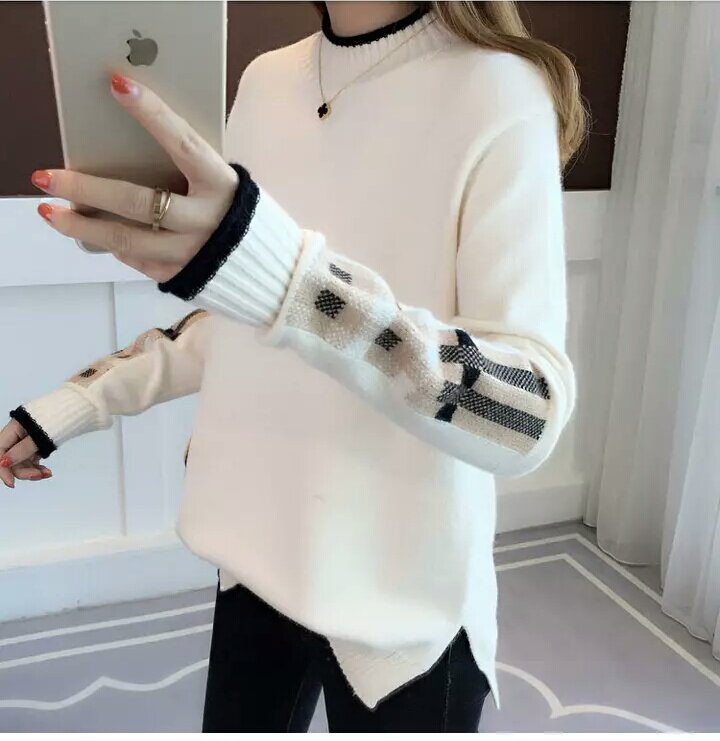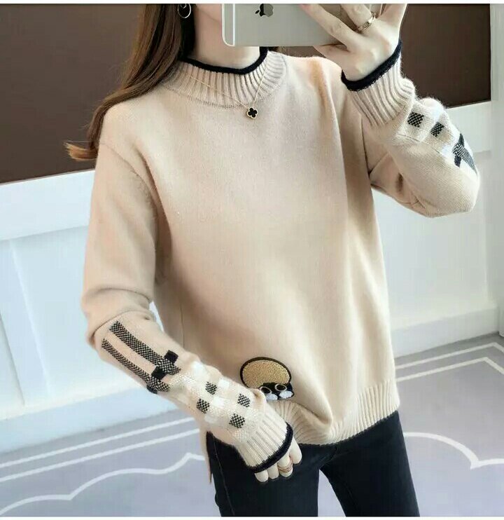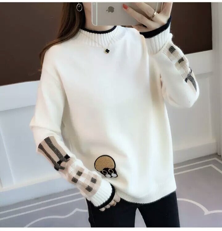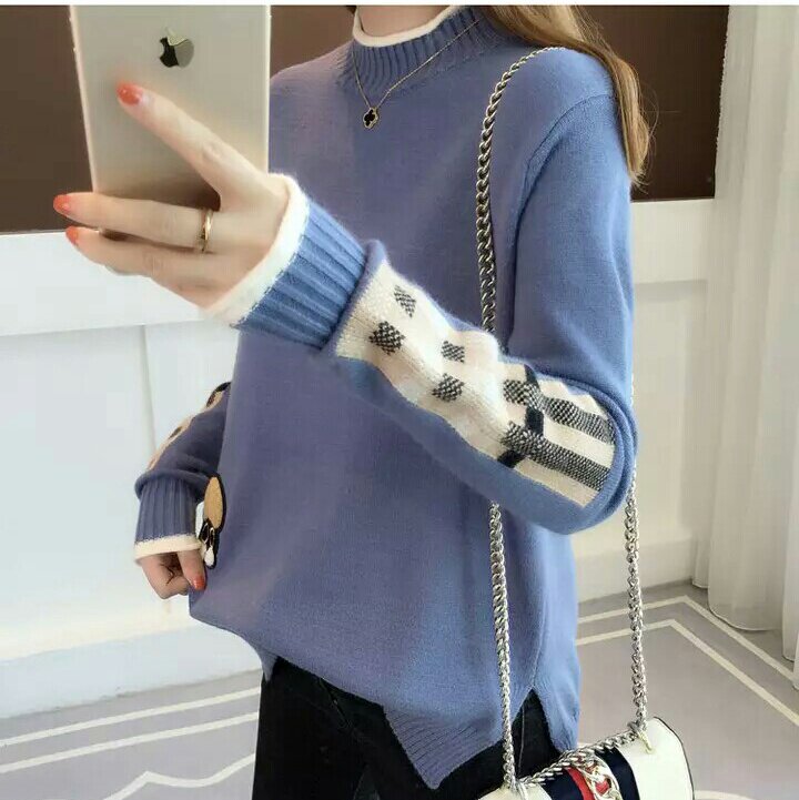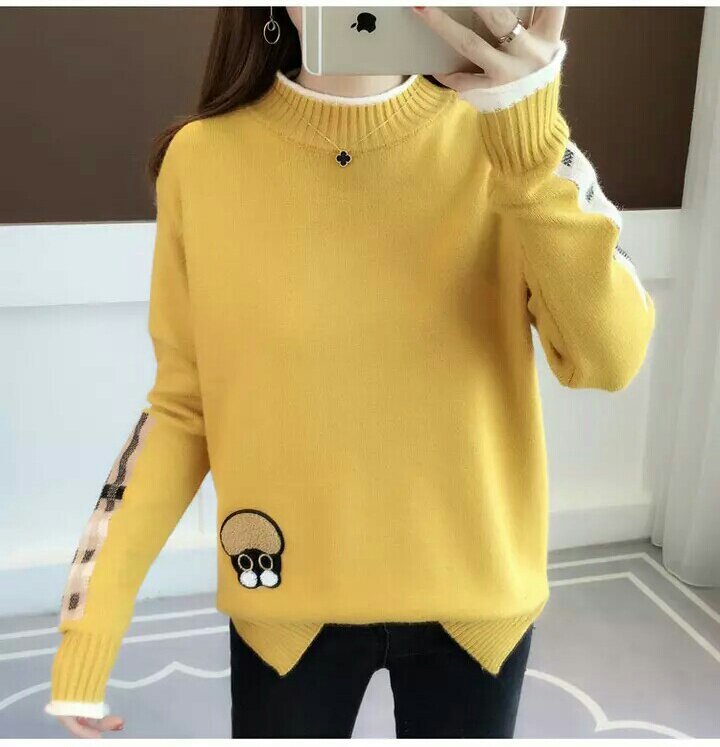 2025年秋冬新款加絨加厚針織衫女韓版寬松長袖洋氣可愛慵懶風毛衣
