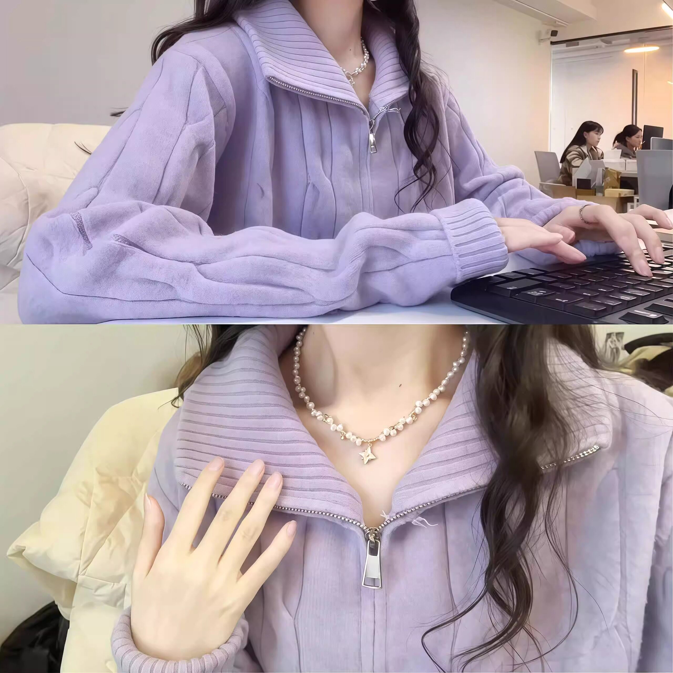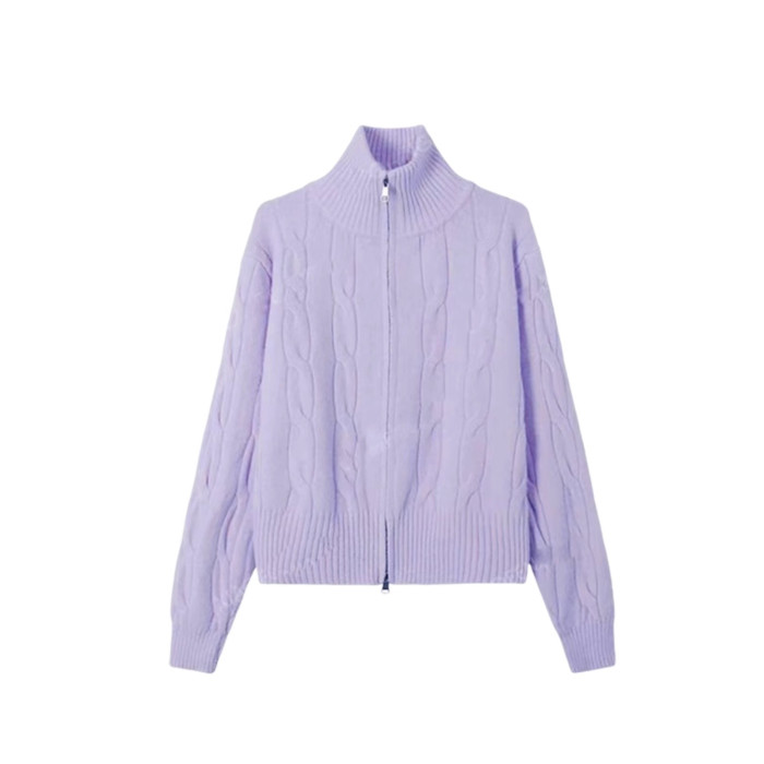 香芋紫麻花拉鍊半高領毛衣外套女2025新款冬季穿搭加厚多巴胺上衣
