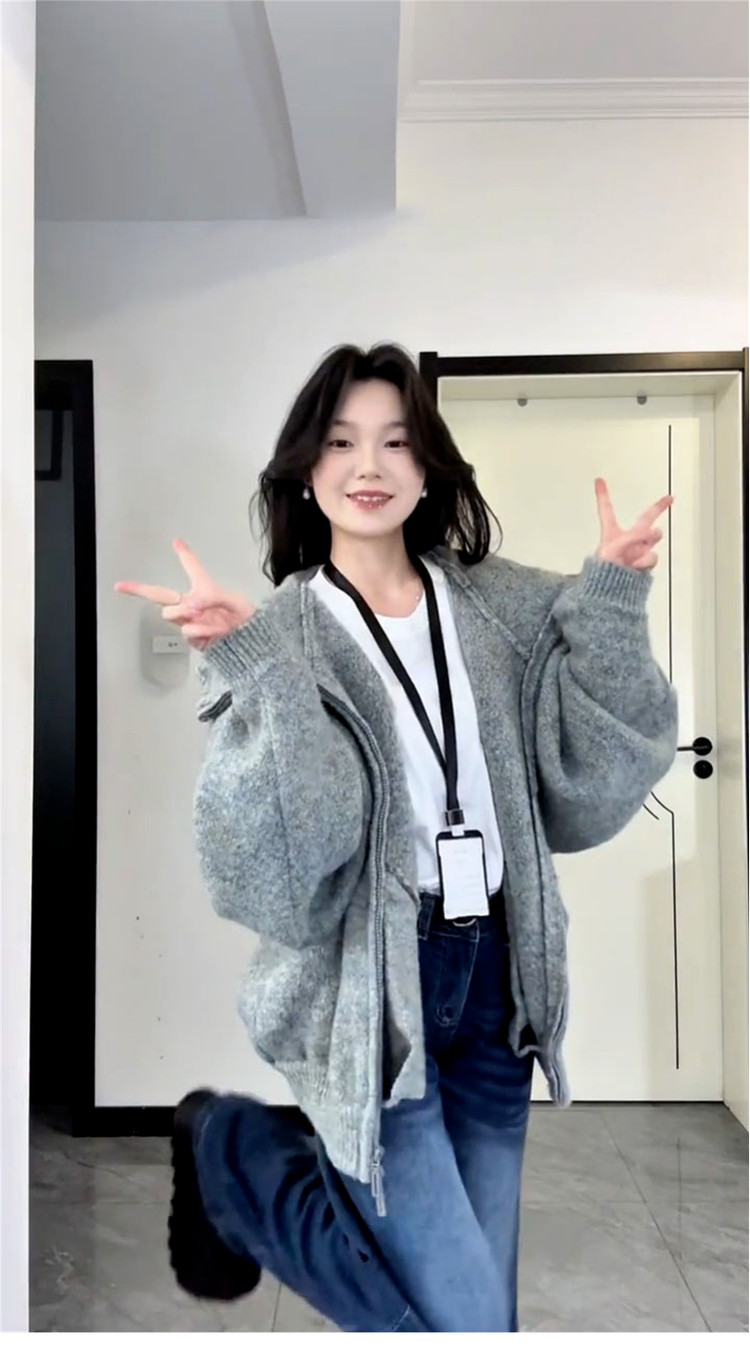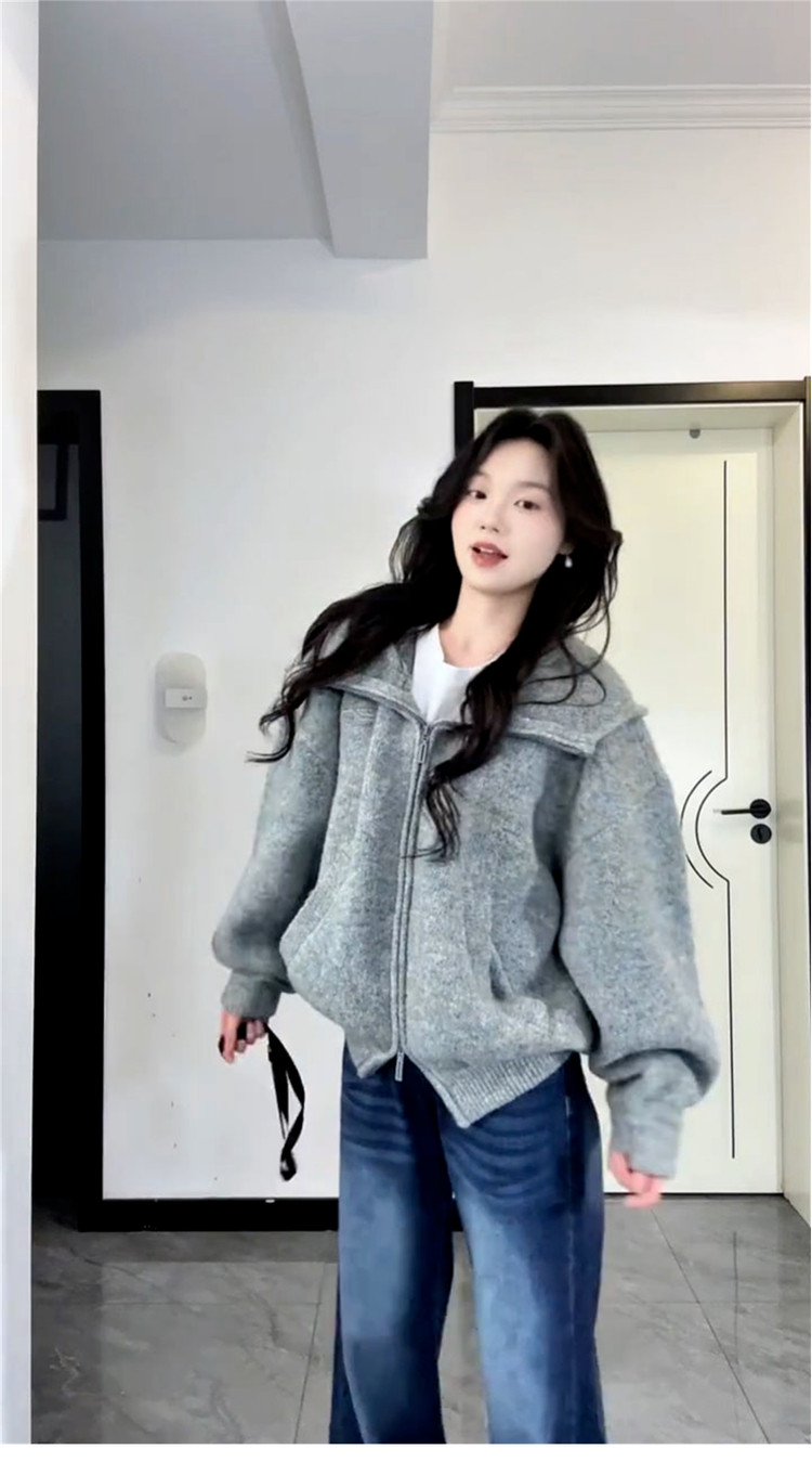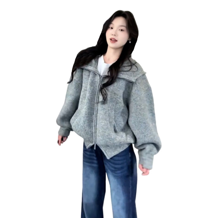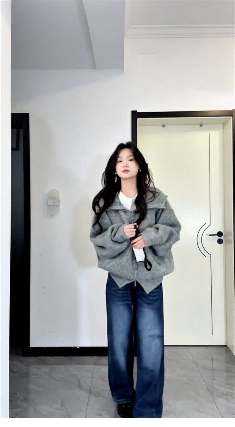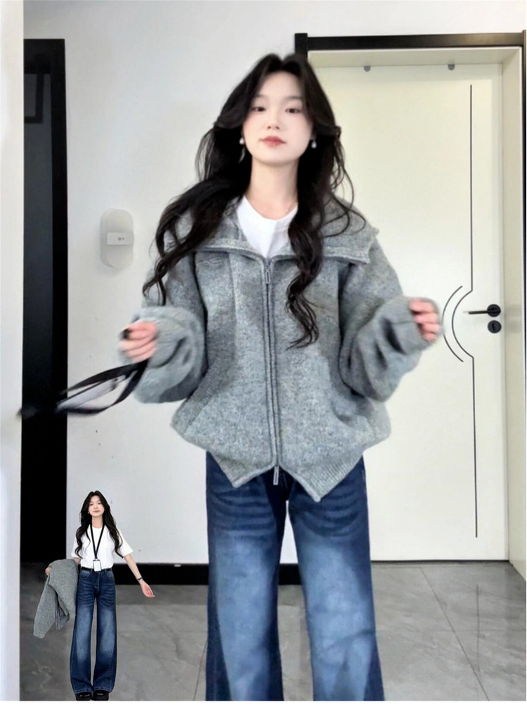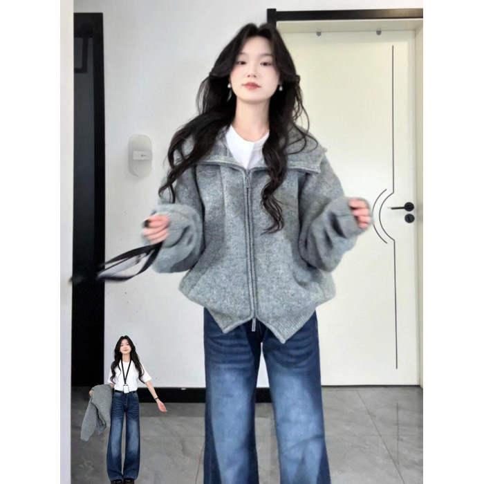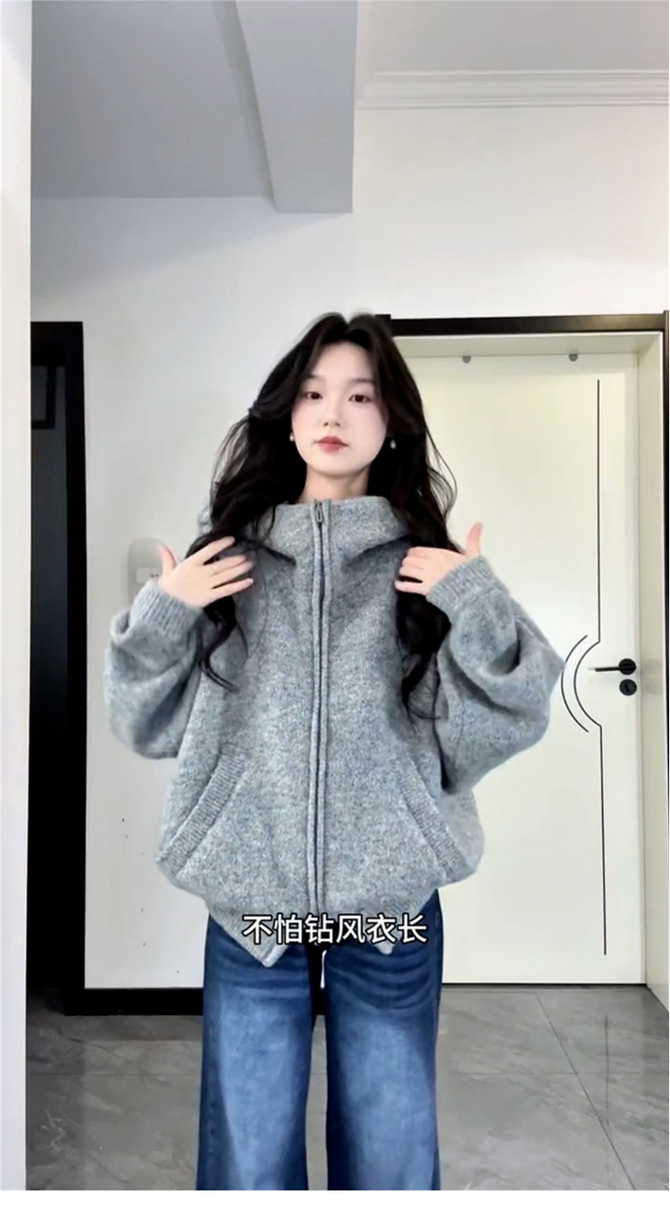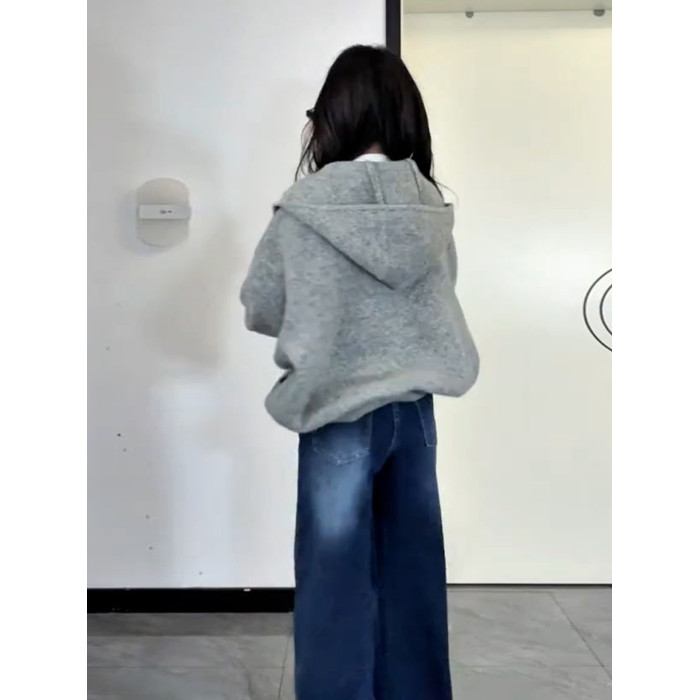 灰色軟糯寬松連帽毛衣慵懶高級感2025新款韓系獨特漂亮早秋外套女