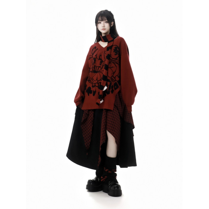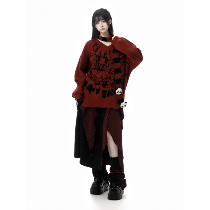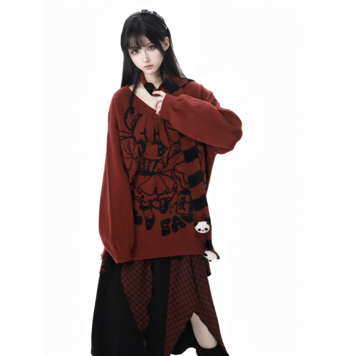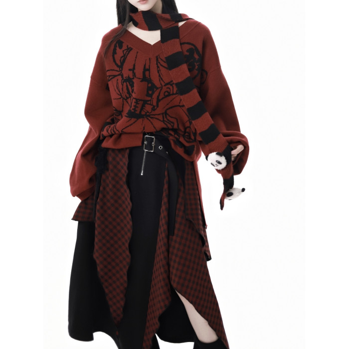 pinksavior【發發】 V領針織y2k秋顯瘦毛衣設計襯衫半裙套裝
