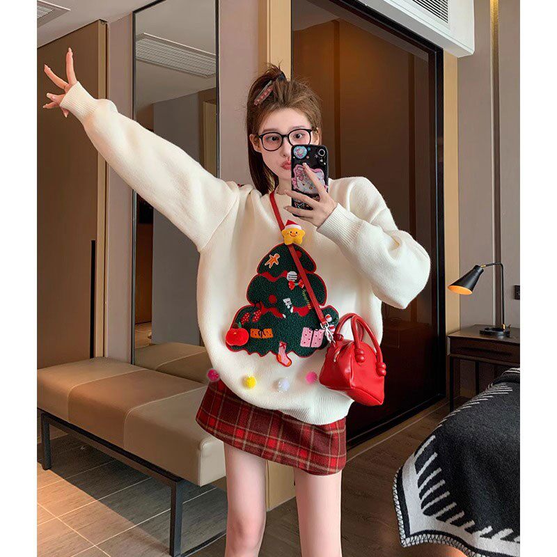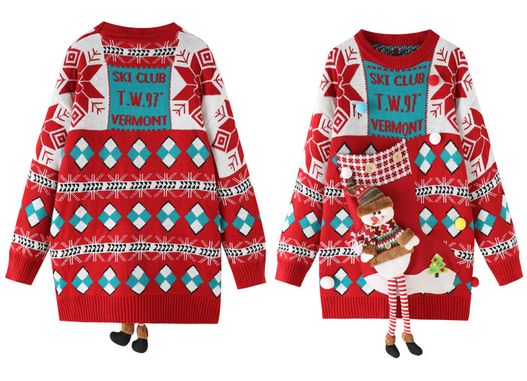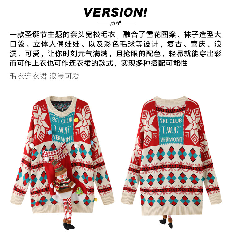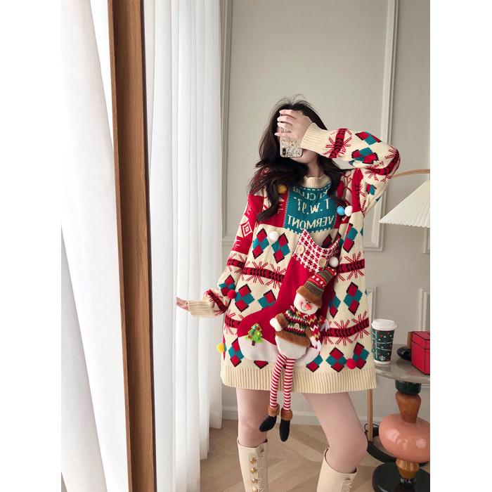 聖誕節新年紅色喜慶雪人毛衣女秋冬拜年服小個子中長款加厚連衣裙