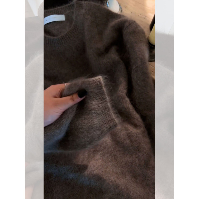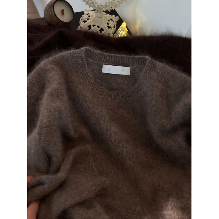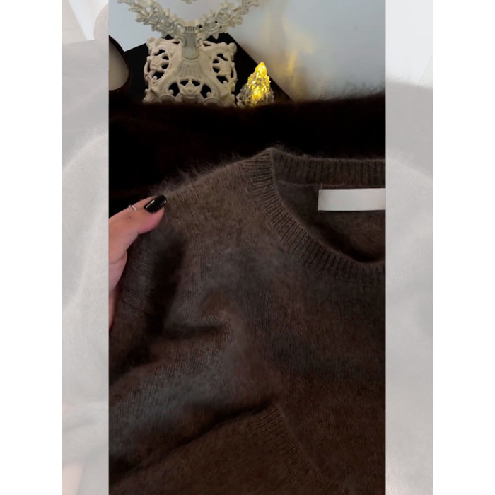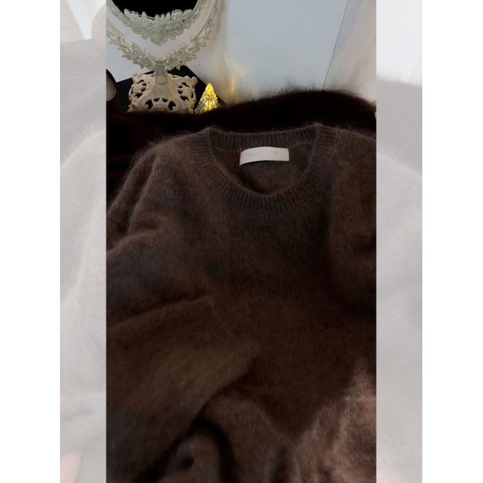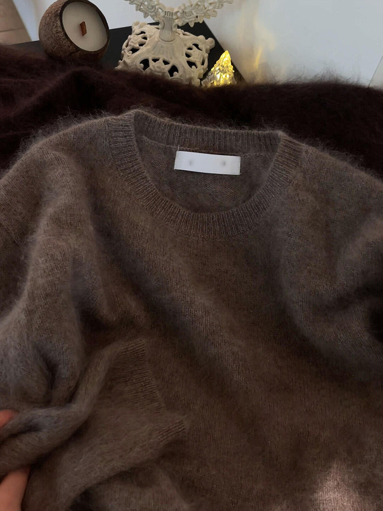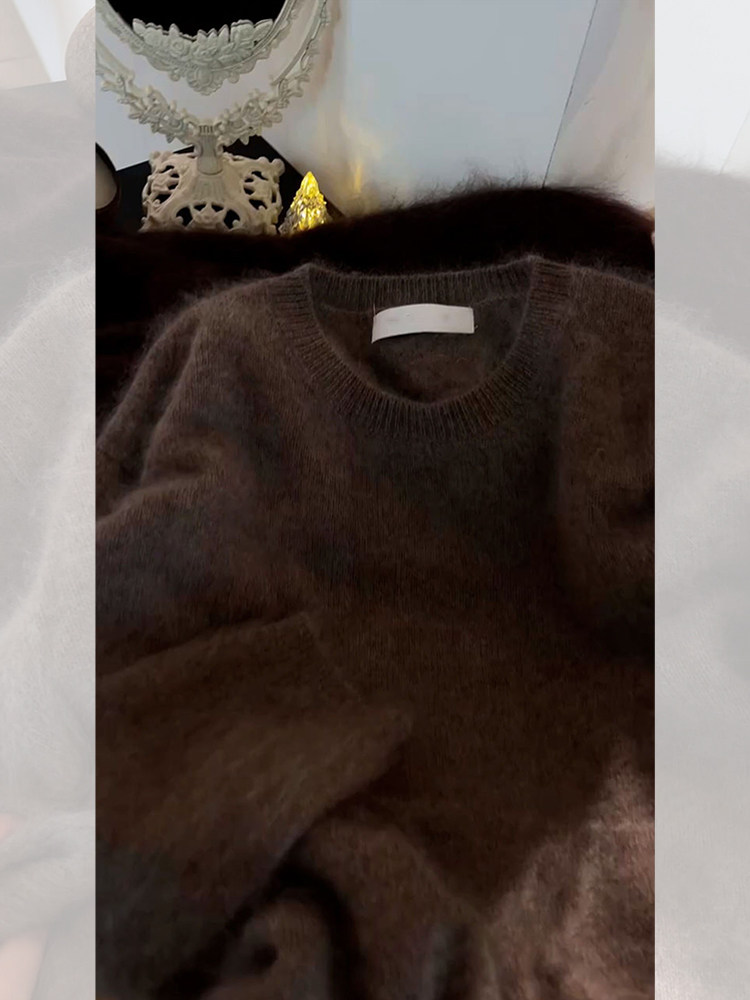 今年流行漂亮覆古軟糯慵懶風寬松奶fufu時尚洋氣絕美茶褐色毛衣秋