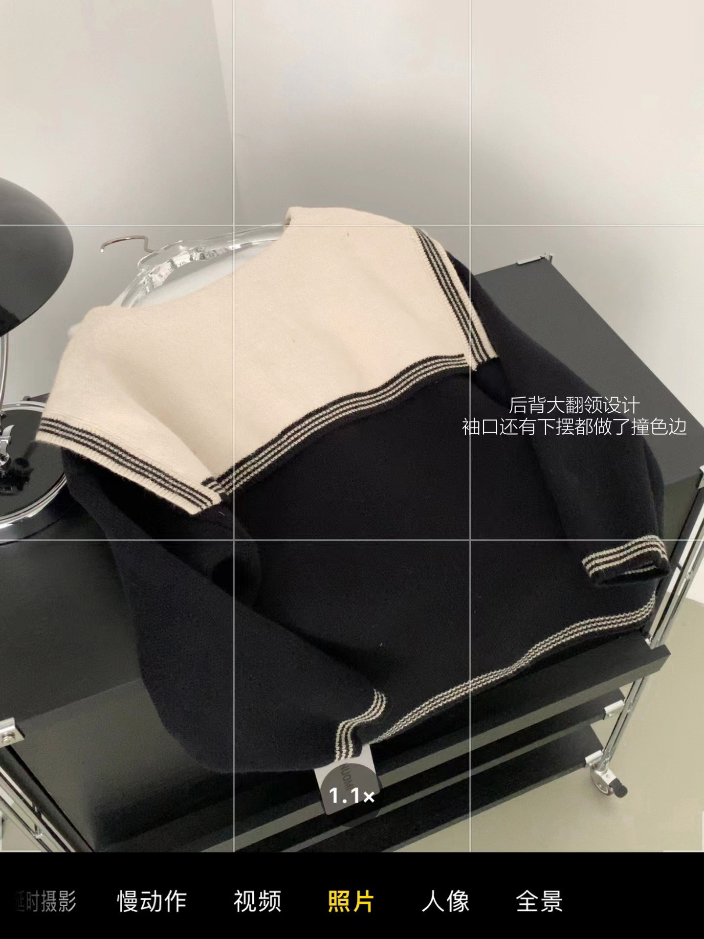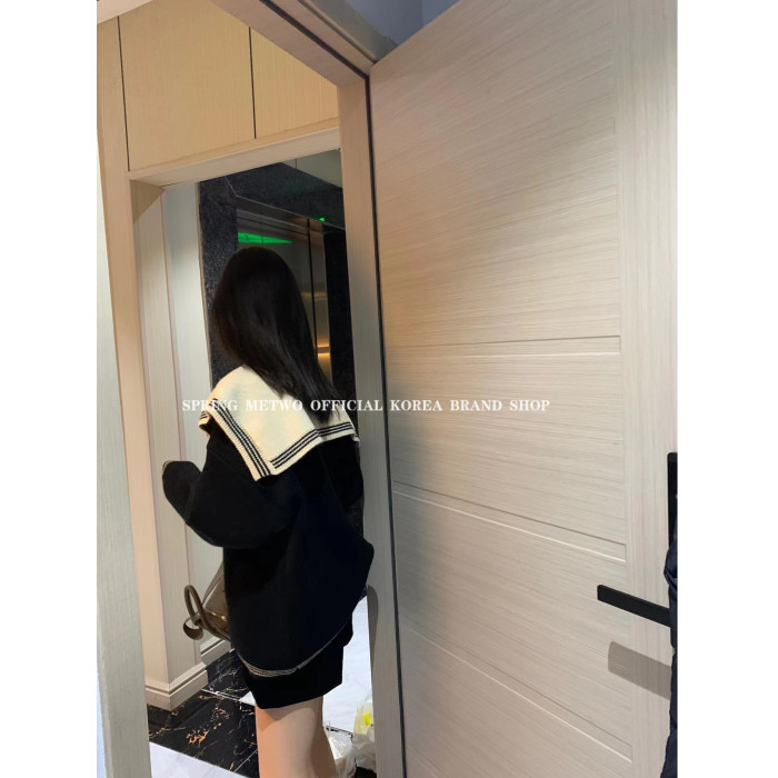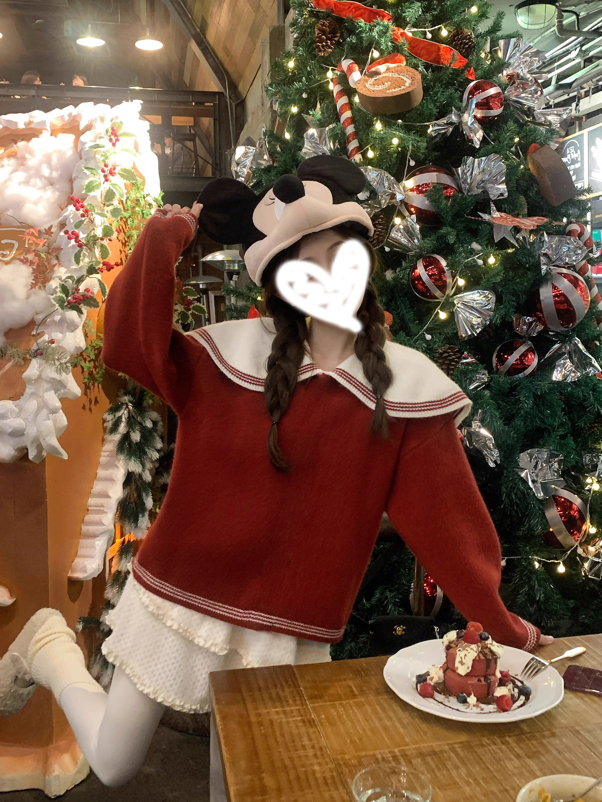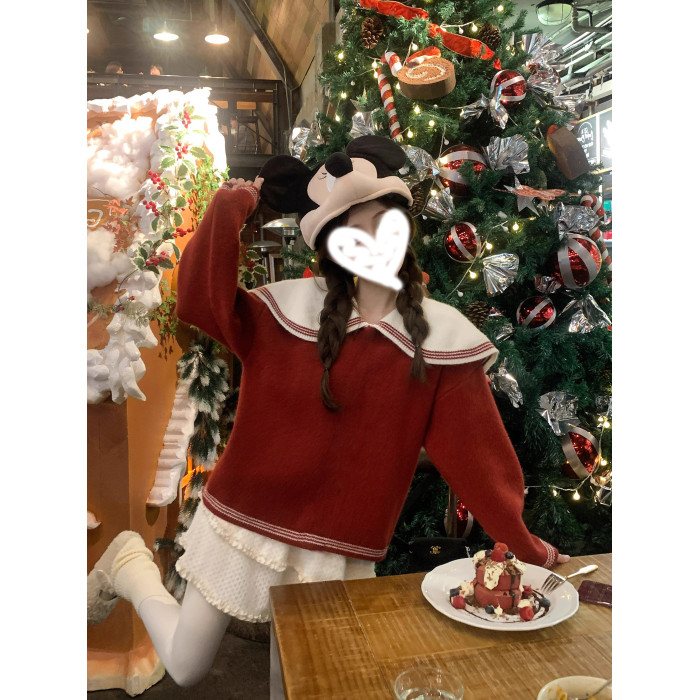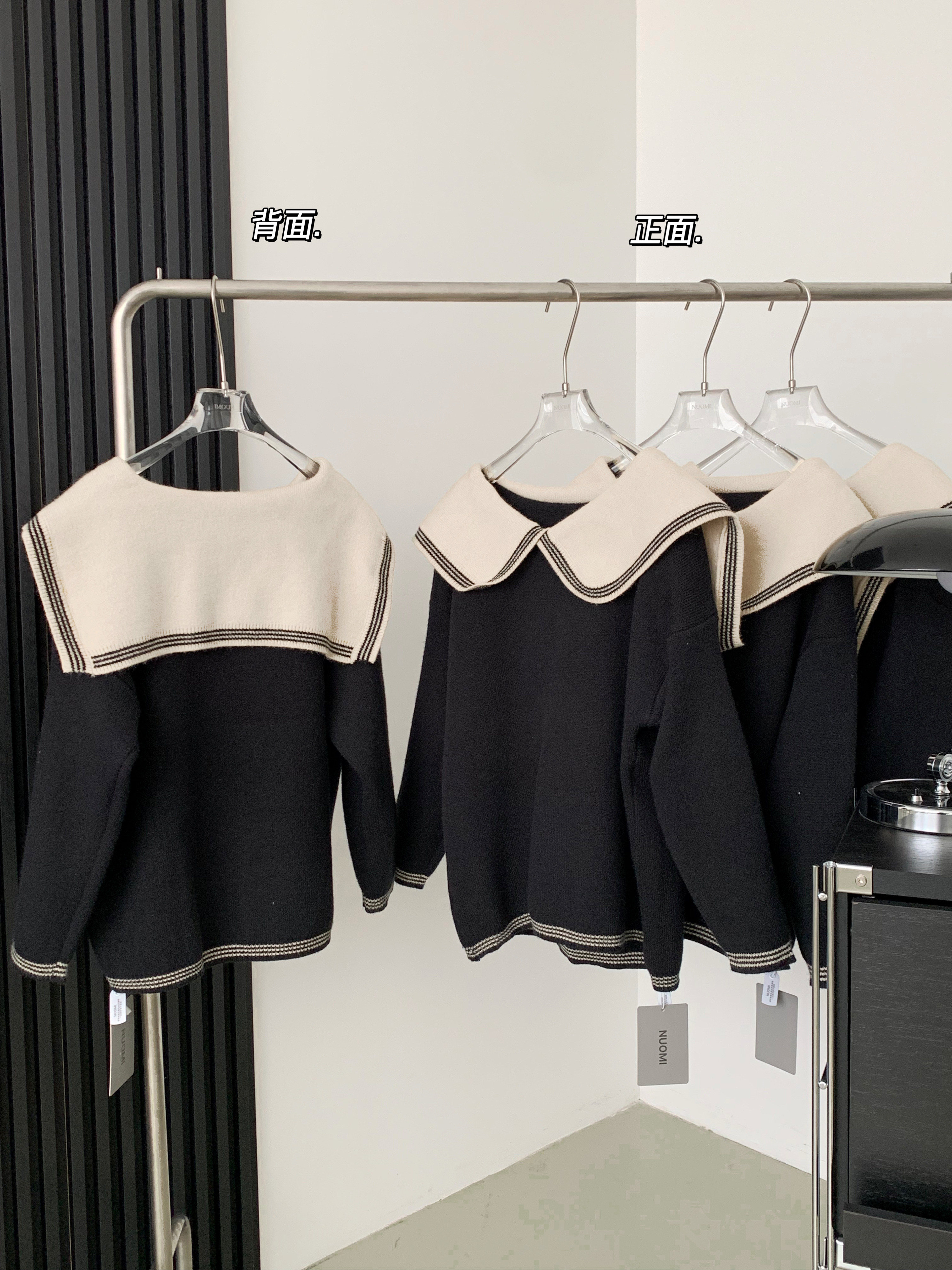 法式溫柔娃娃領學院風海軍大翻領慵懶風中長款套頭毛衣女秋冬上衣