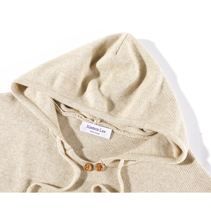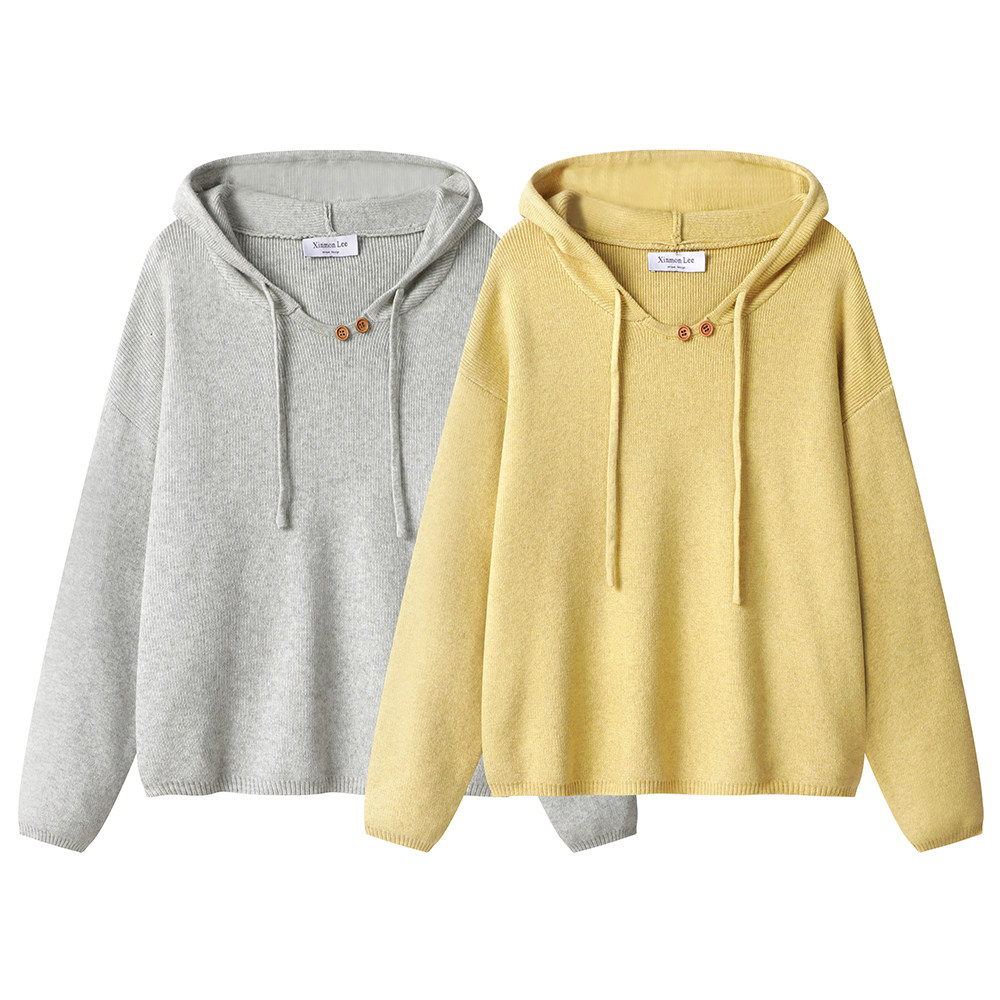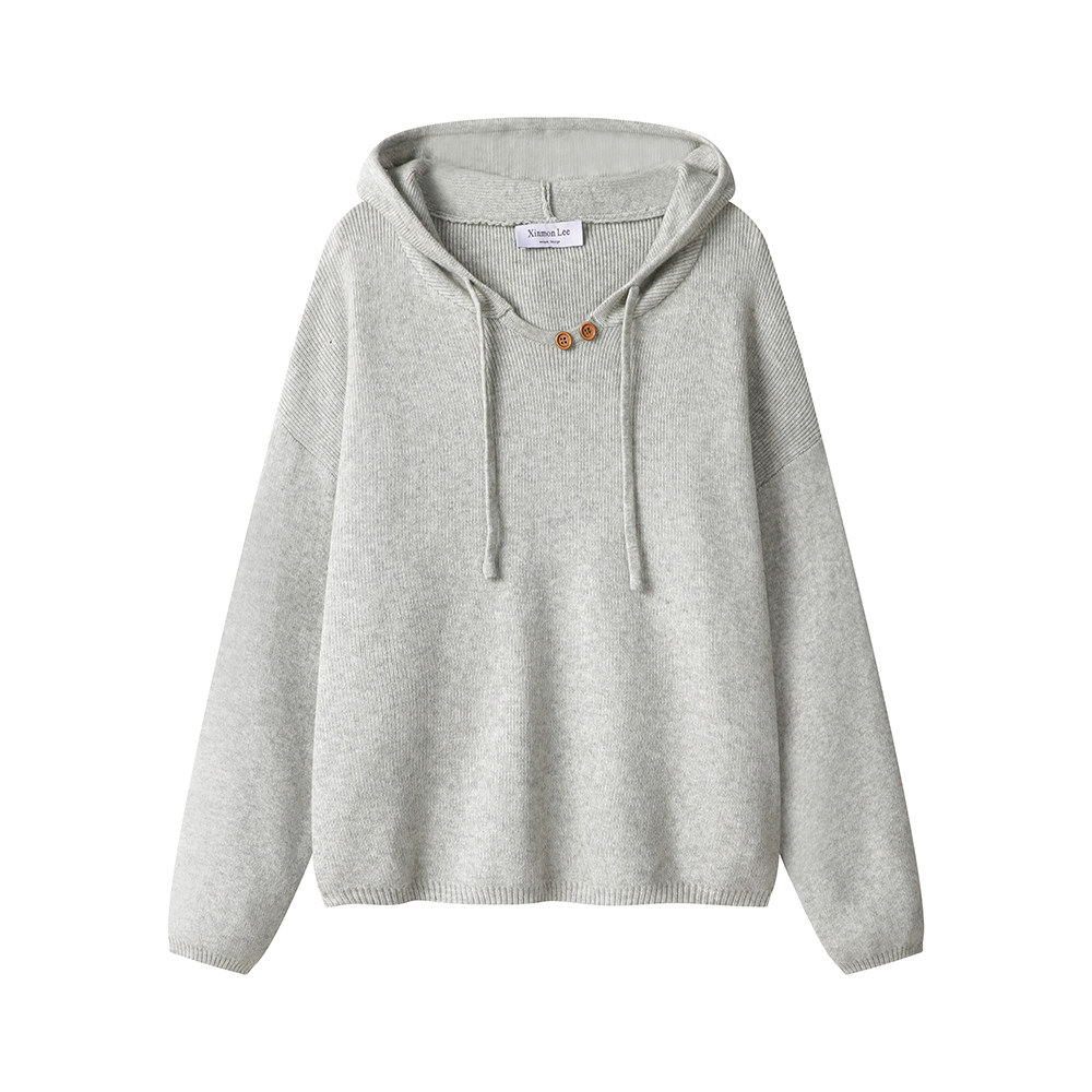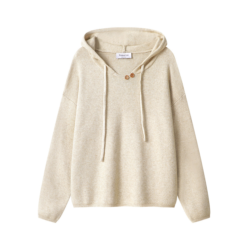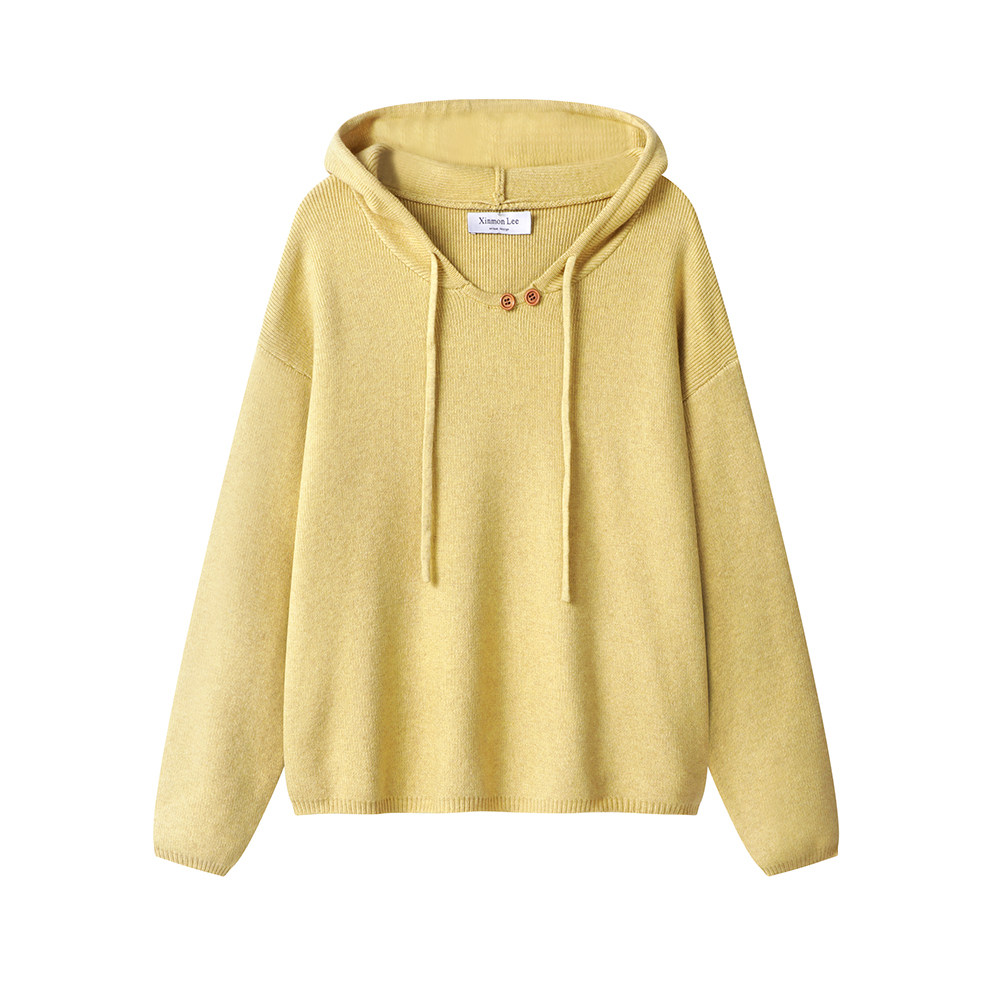 XinmonLee慵懶風連帽寬松毛衣軟糯套頭休閒寬松氣質簡約百搭帽衫