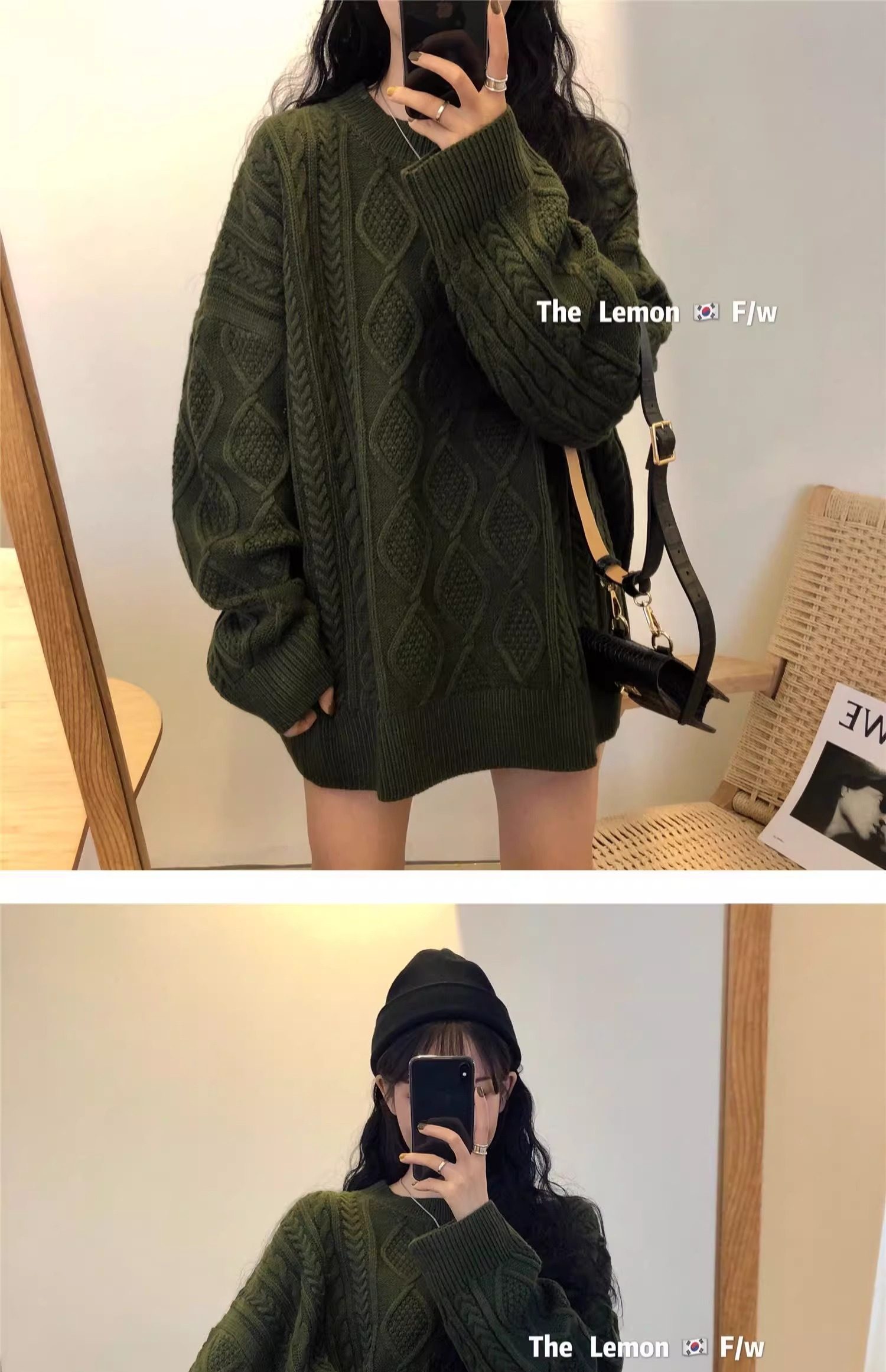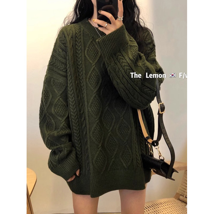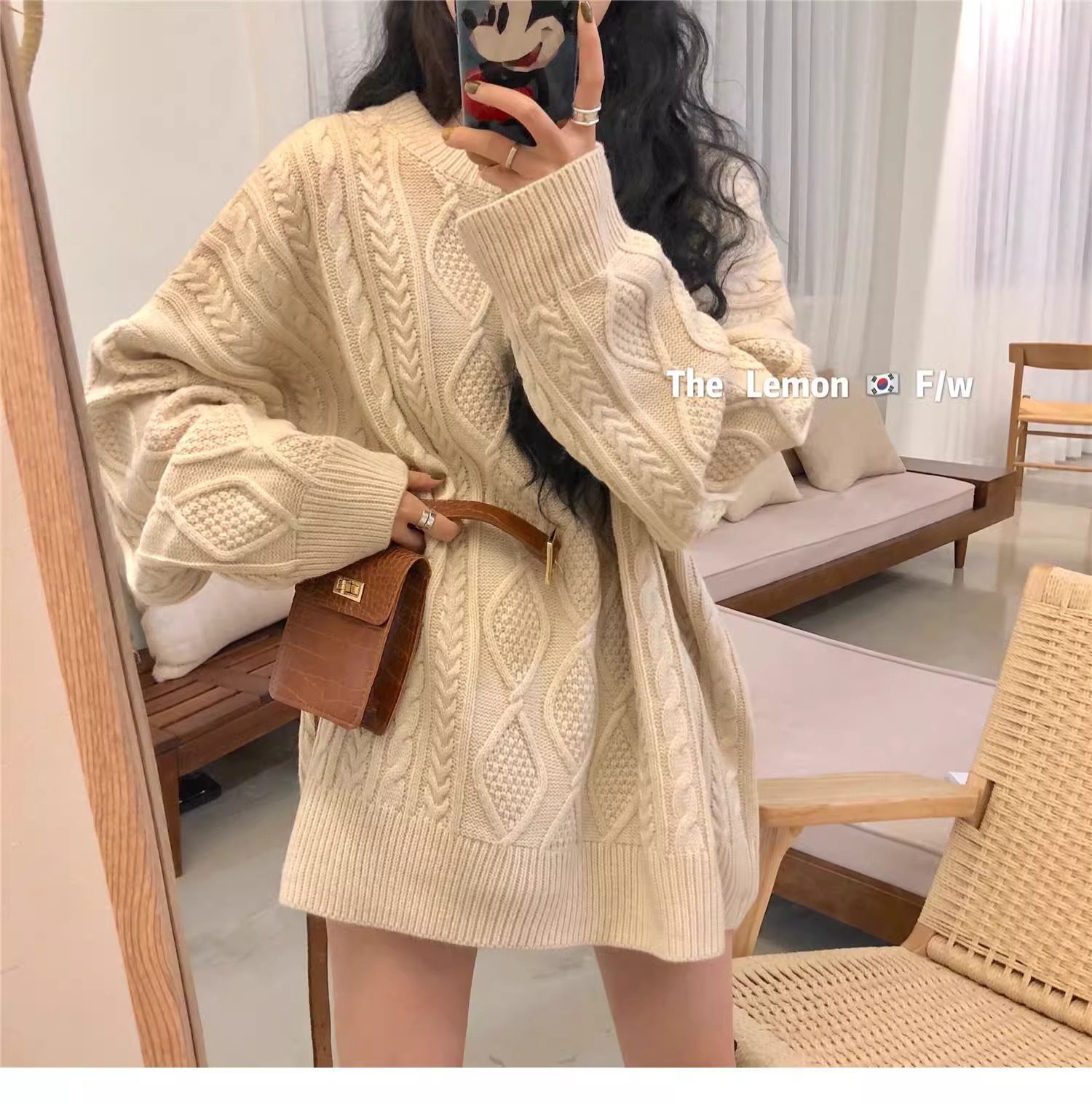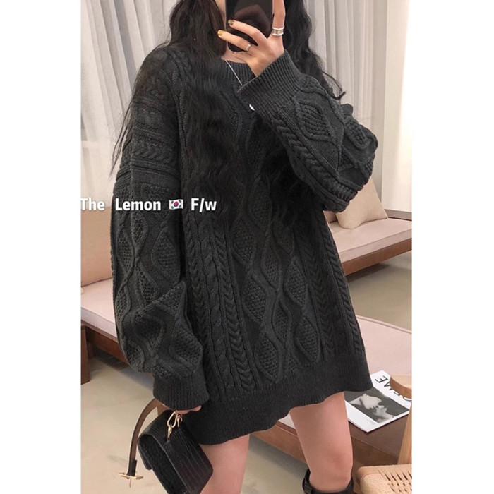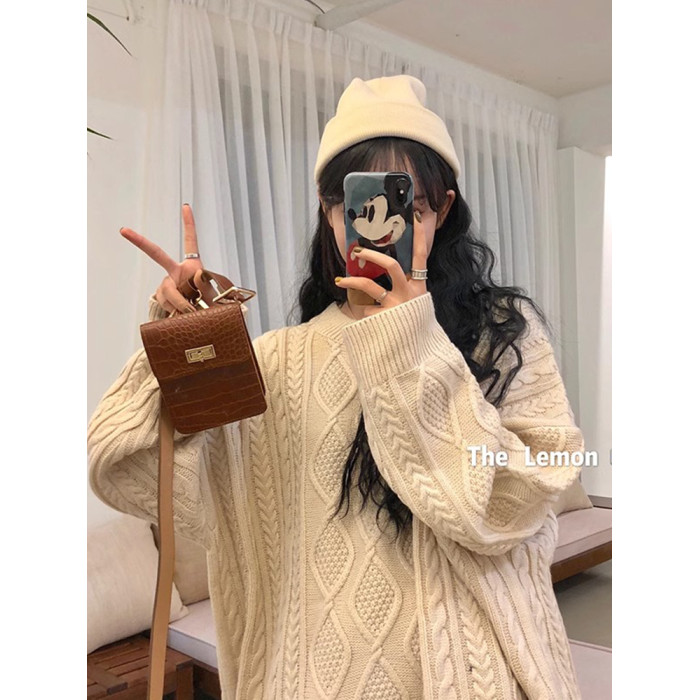 歐貨中長款麻花重工毛衣女外穿2025冬季設計感加厚針織衫慵懶上衣