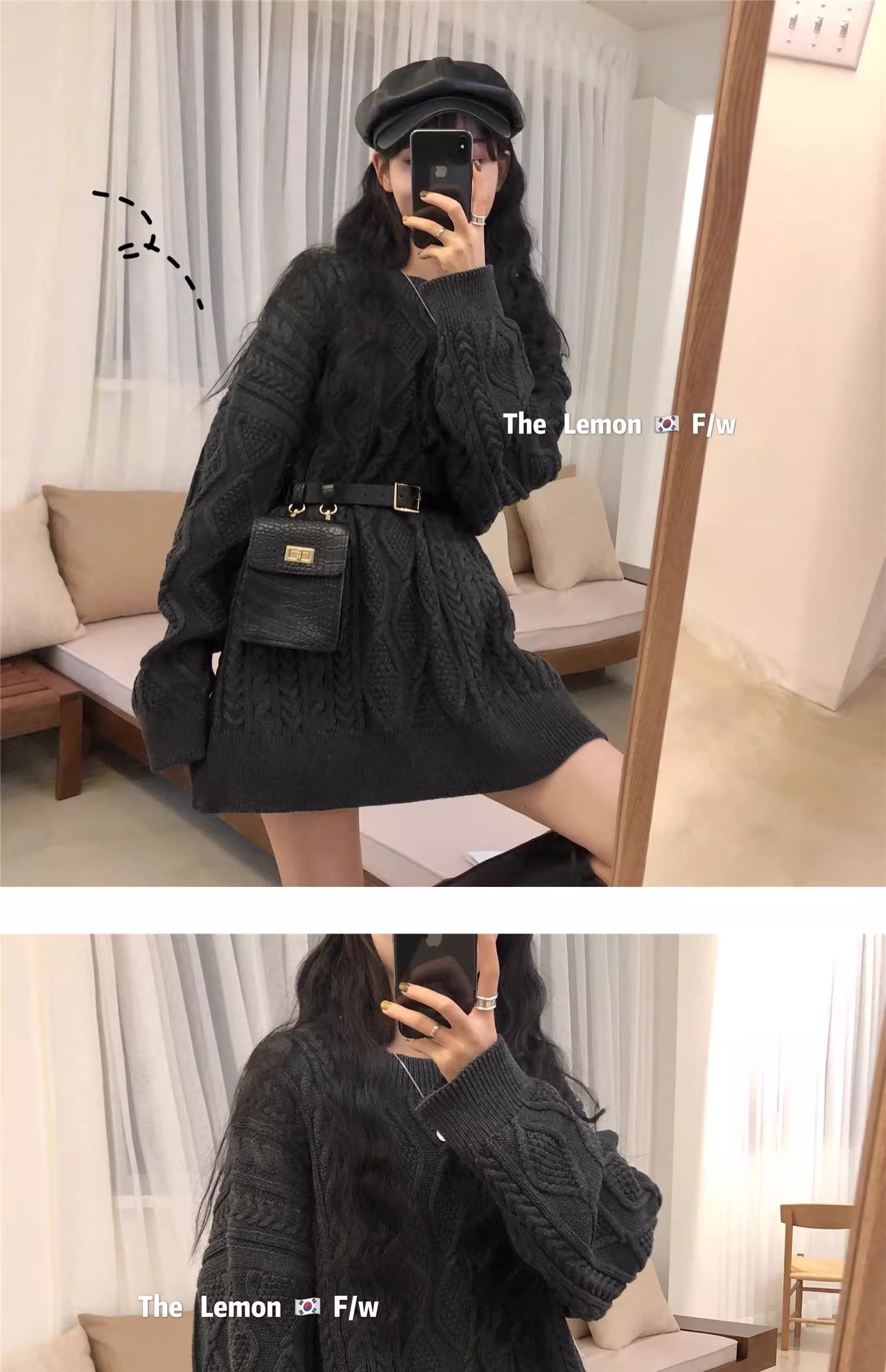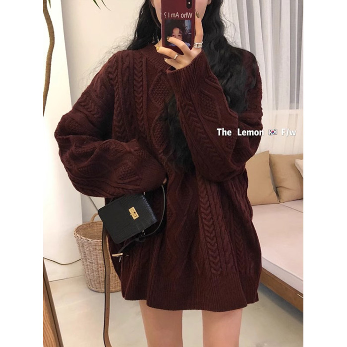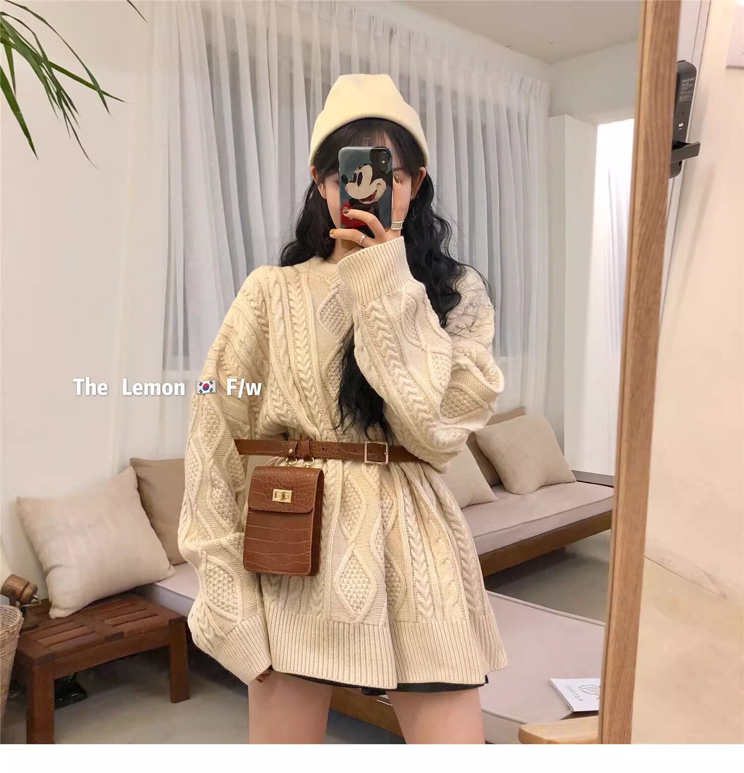 歐貨中長款麻花重工毛衣女外穿2025冬季設計感加厚針織衫慵懶上衣