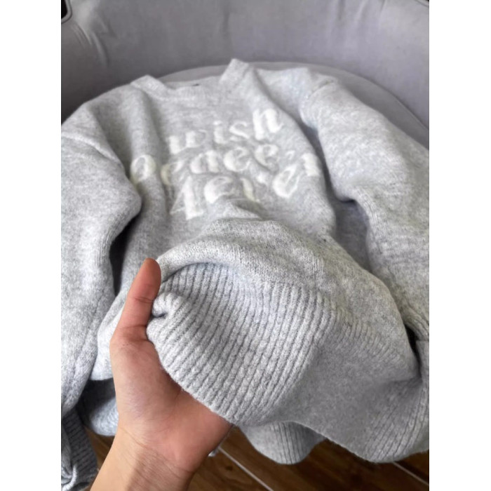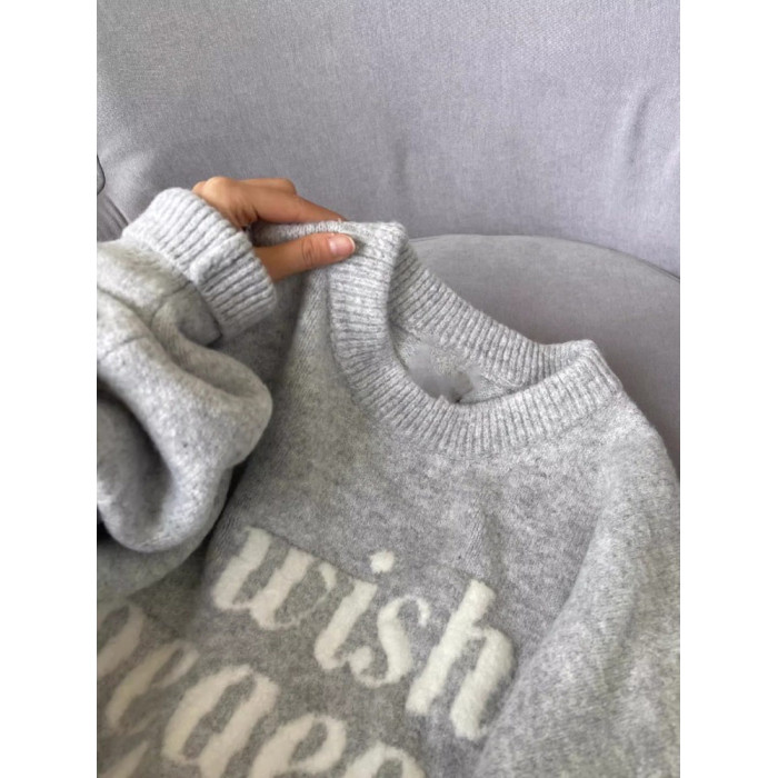 美式復古字母提花灰色毛衣女秋冬寬松外穿慵懶風圓領軟糯針織上衣