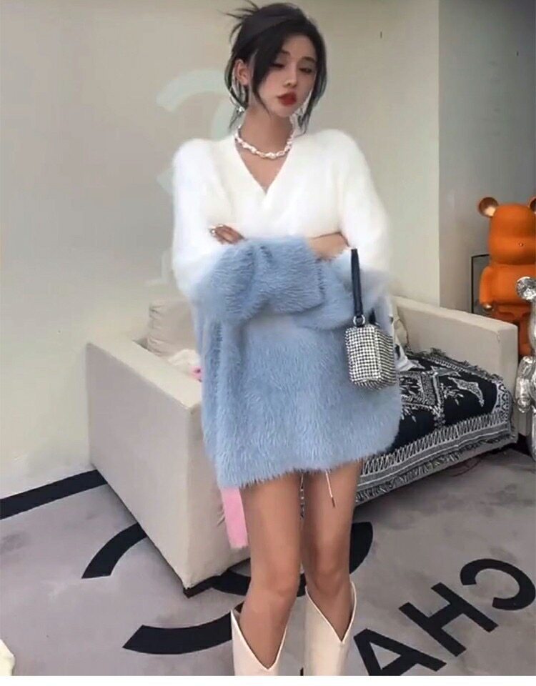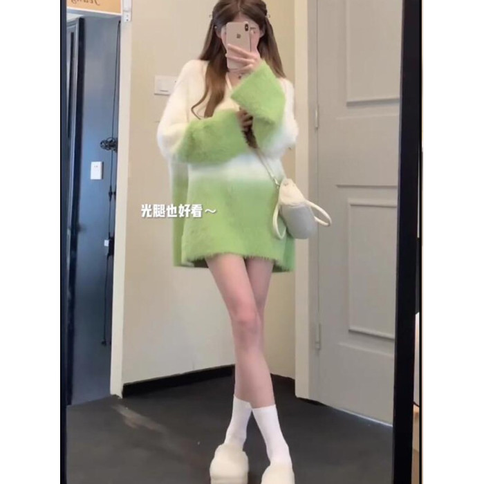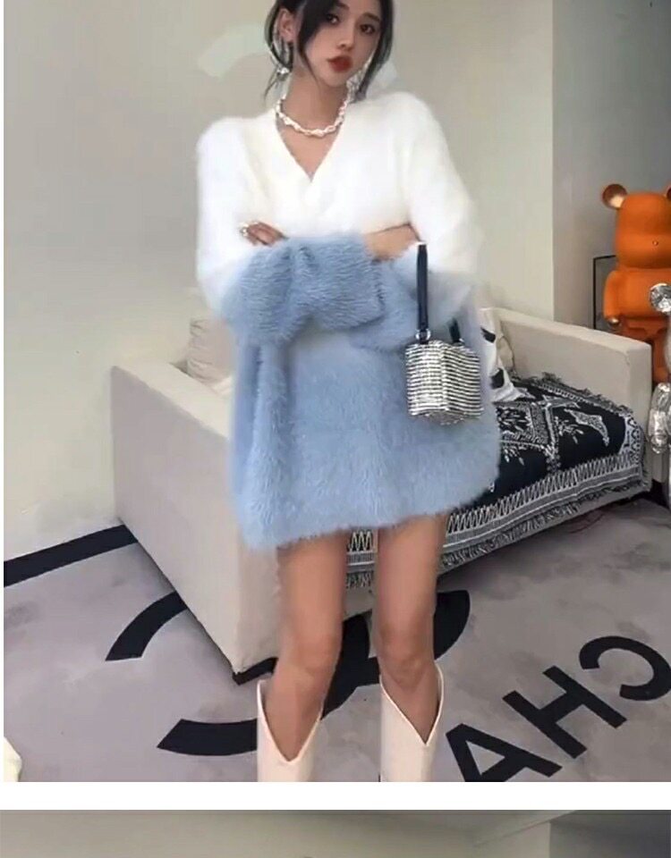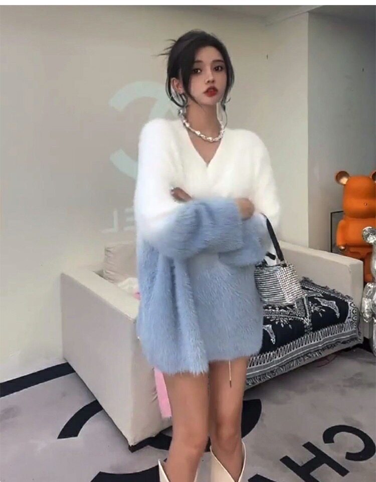 慵懶高級感水貂絨軟糯秋冬溫柔風寬松套頭加厚針織毛衣女外穿上衣