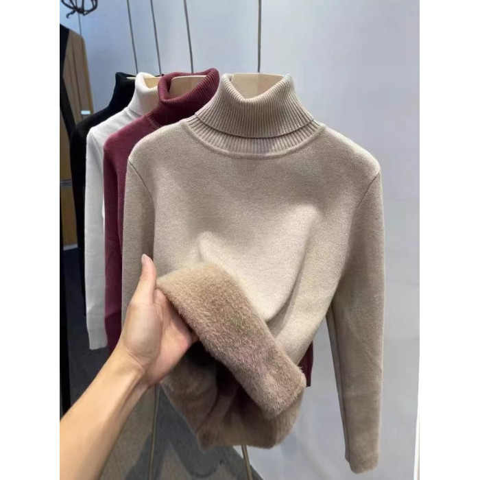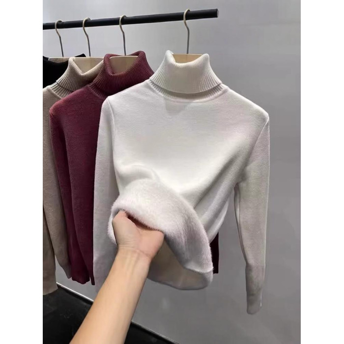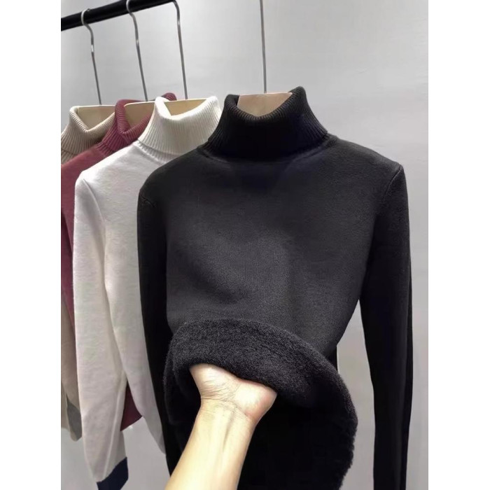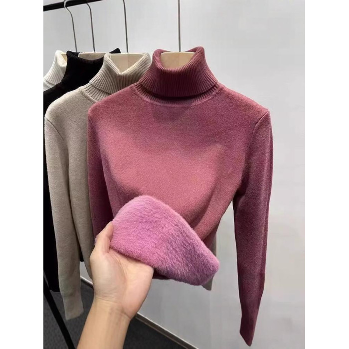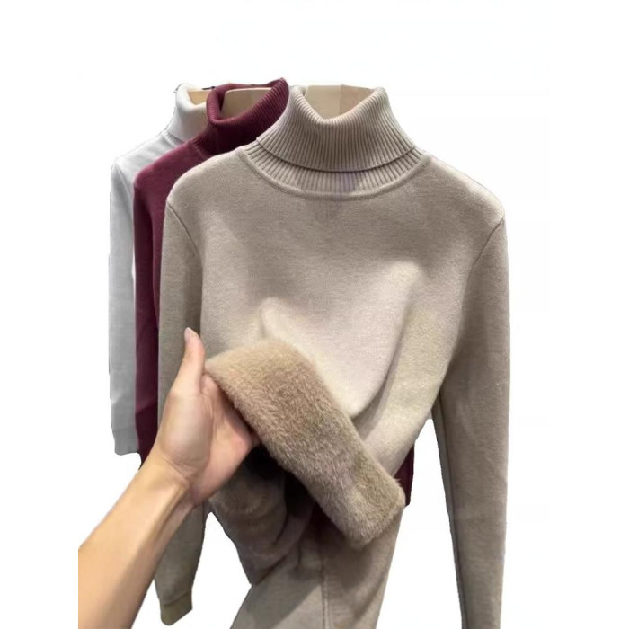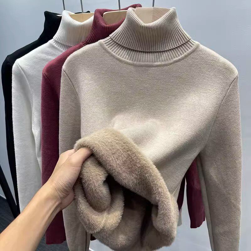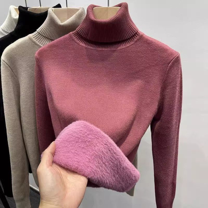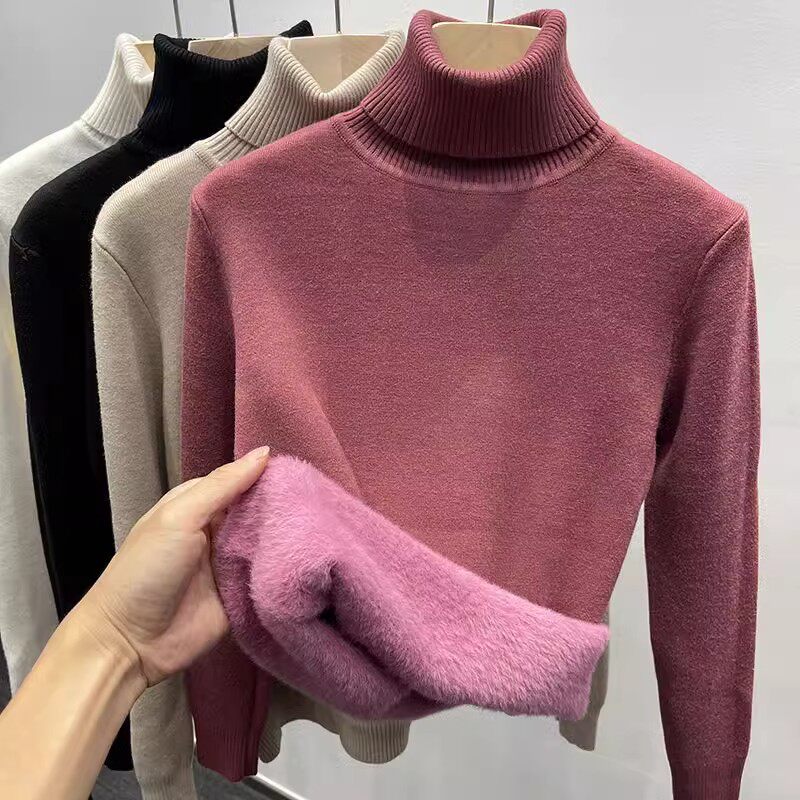 東北哈爾濱雪鄕一體絨高領加絨加厚毛衣女秋冬內搭針織保暖打底衫