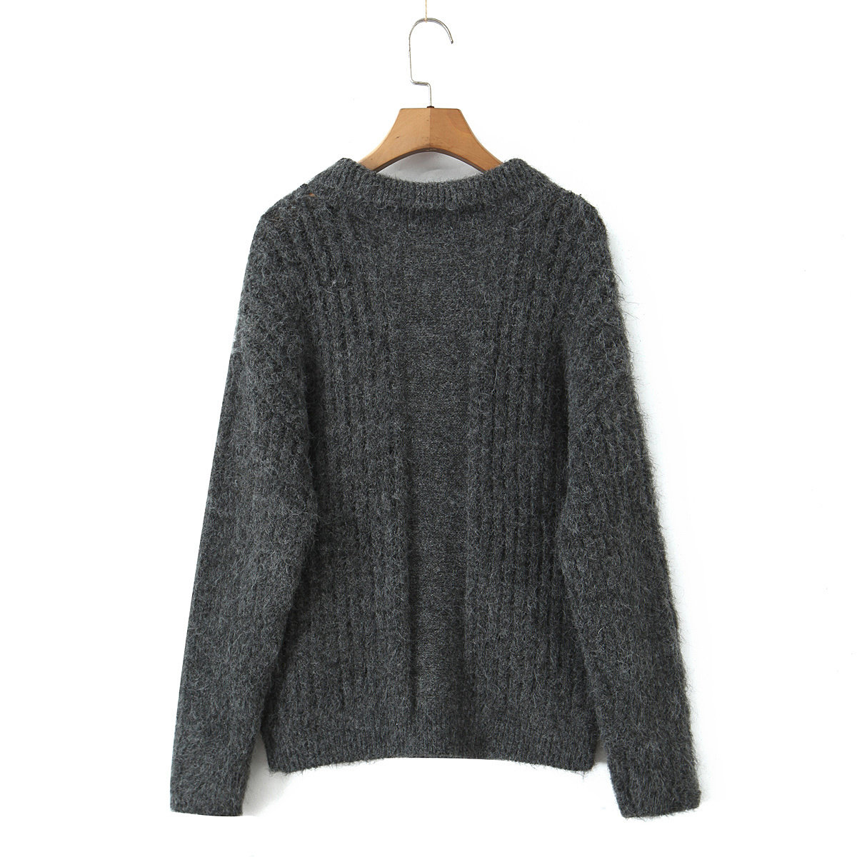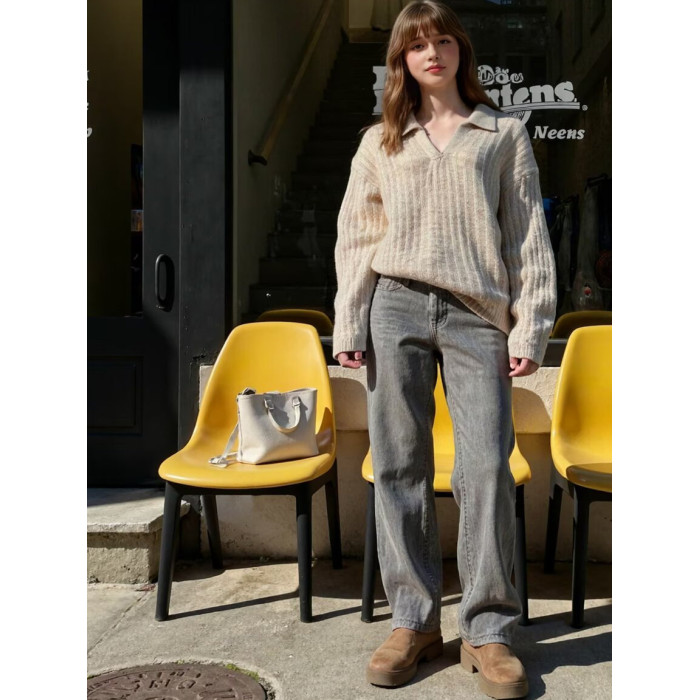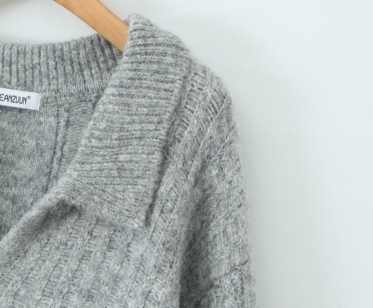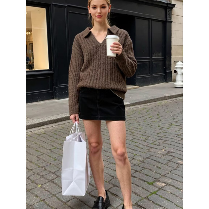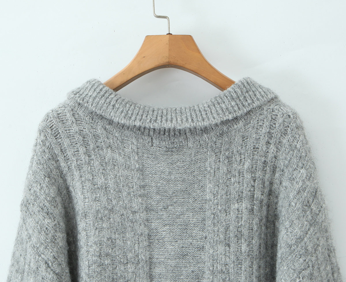 法式簡約慵懶風套頭翻領復古毛衣韓系V領顯瘦打底衫休閒寬松上衣