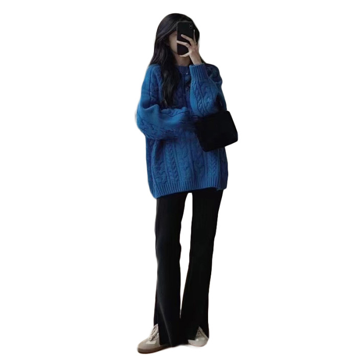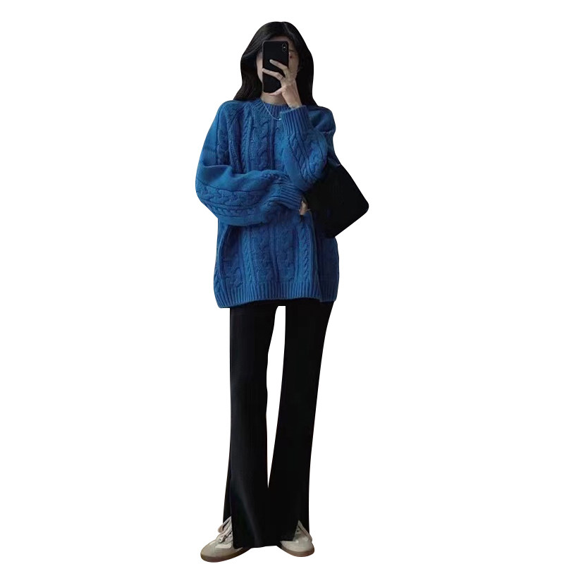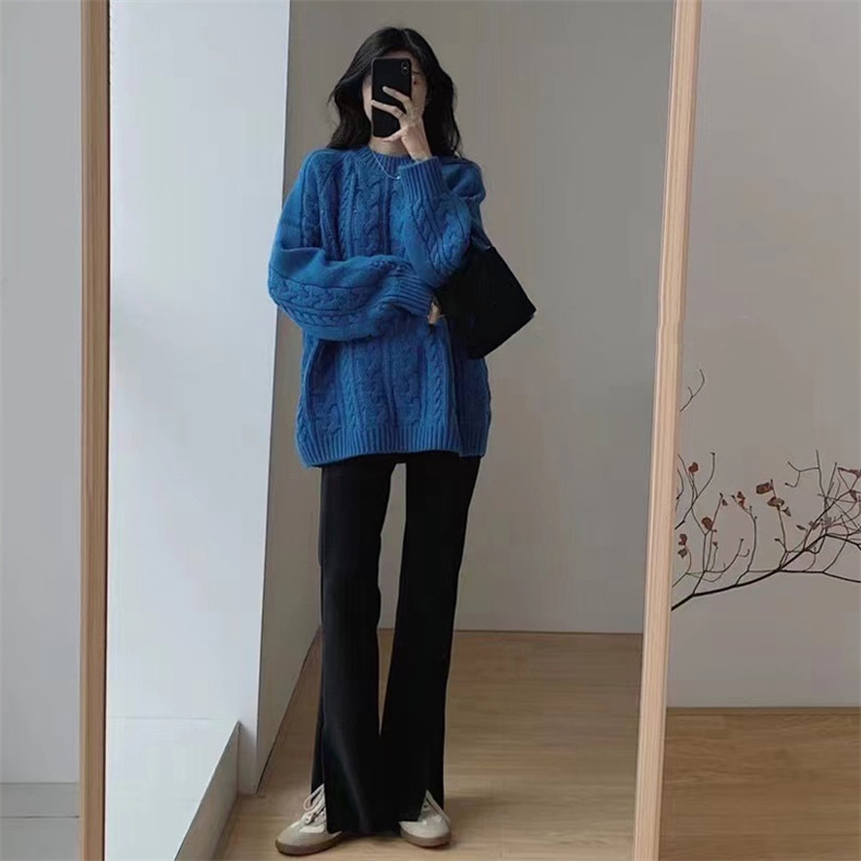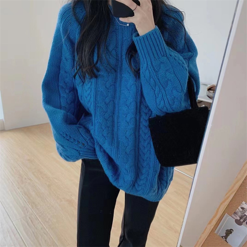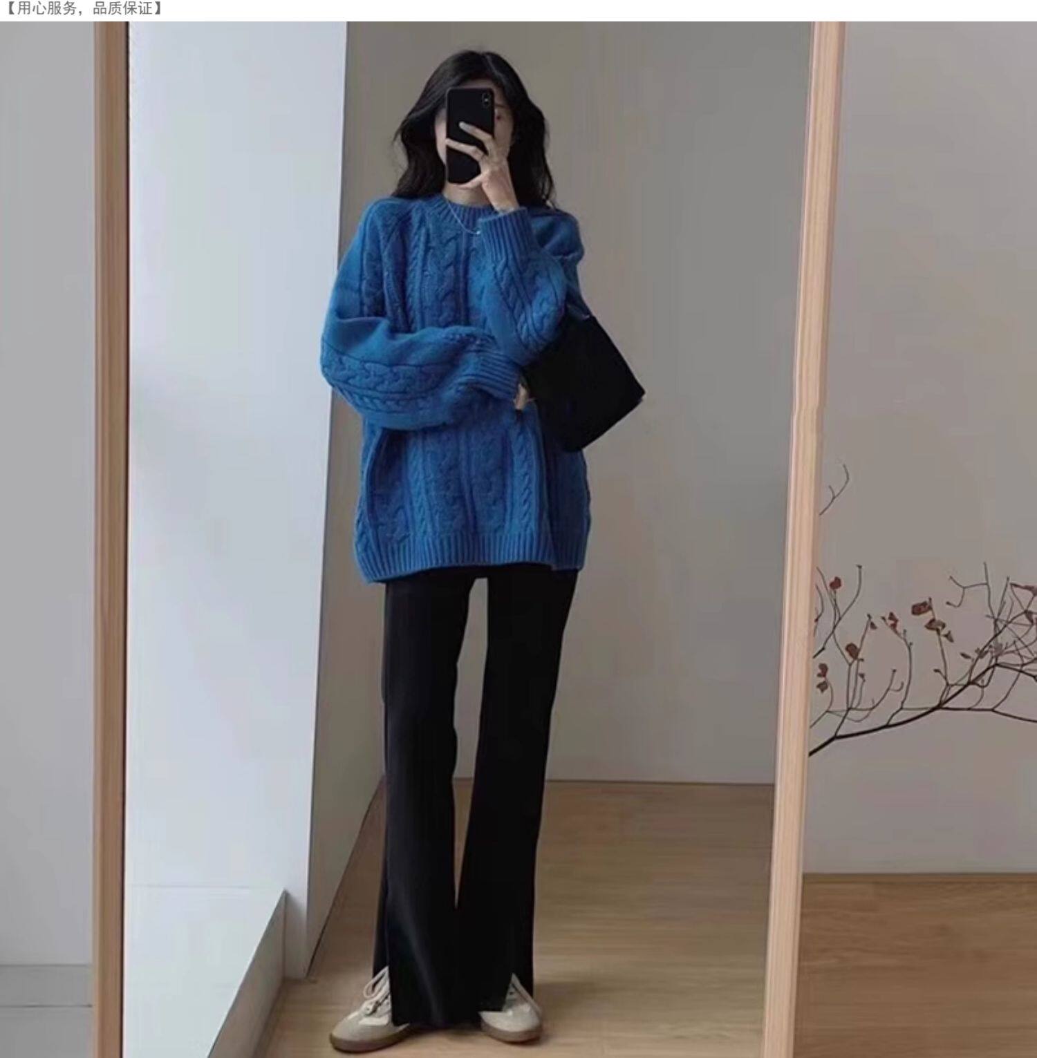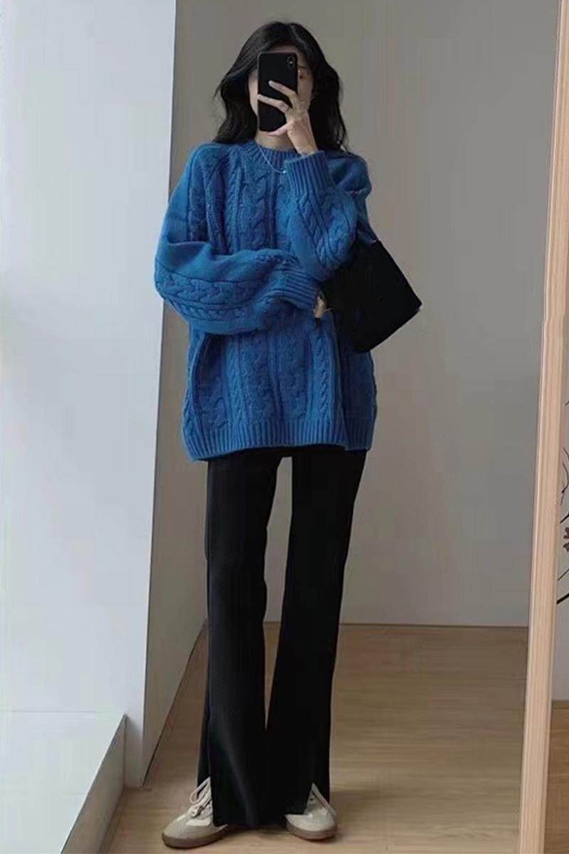大碼女裝胖mm2025秋冬款克萊因藍慵懶風超好看毛衣寬松顯瘦針織衫