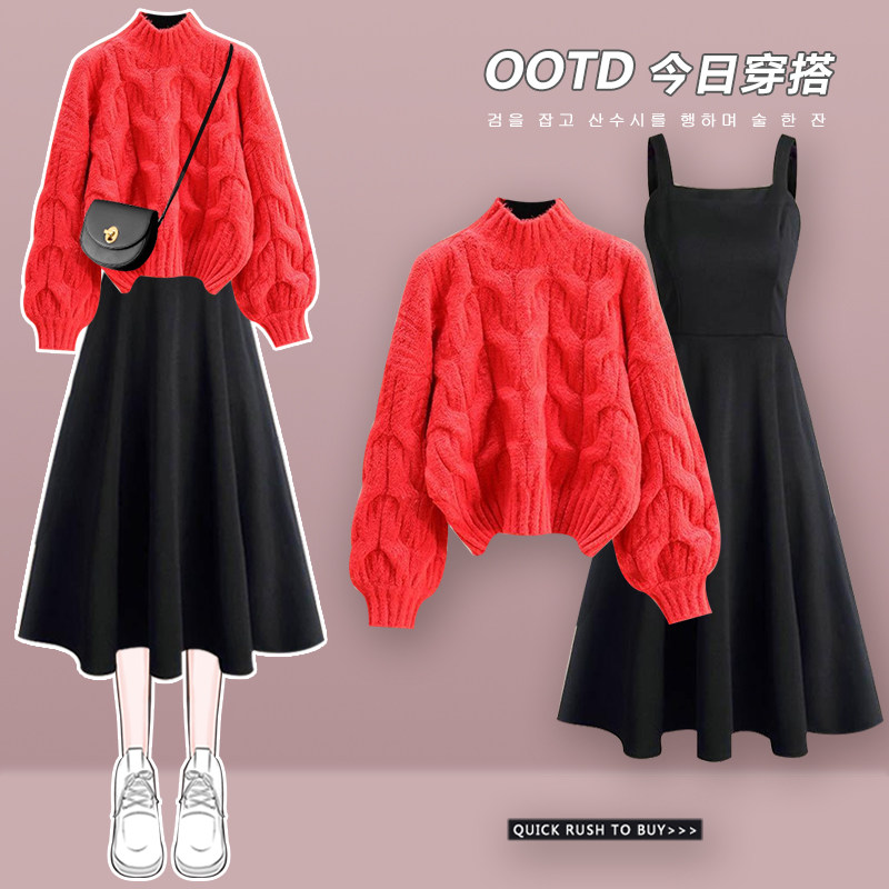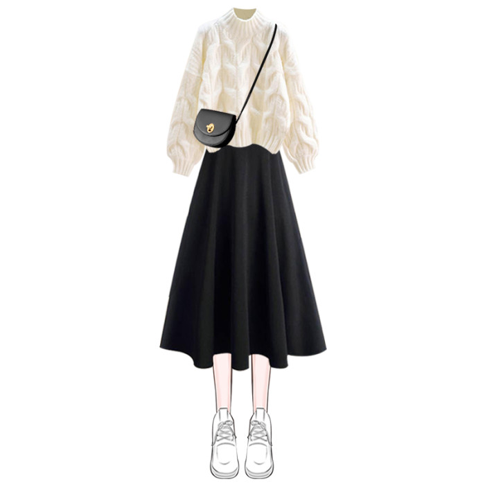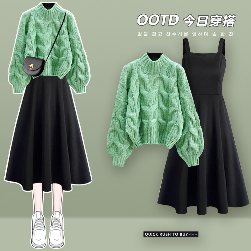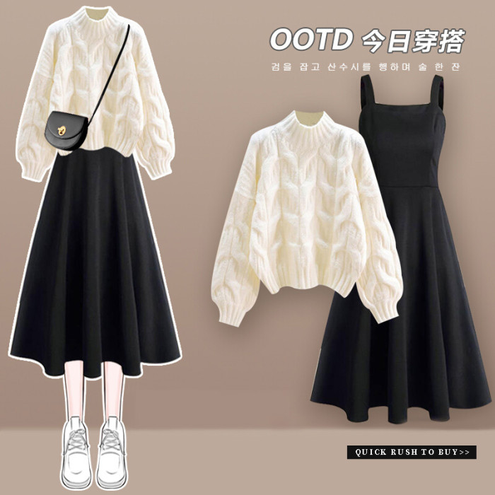 小個子春秋套裝裙子女溫柔風奶fufu麻花針織慵懶毛衣連衣裙兩件套