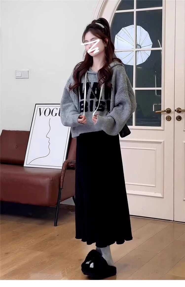 法式灰色毛衣套裝連衣裙子女深秋初冬季2024新款溫柔系穿搭一整套