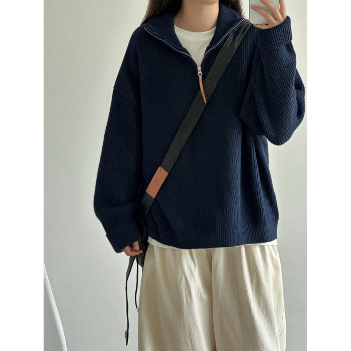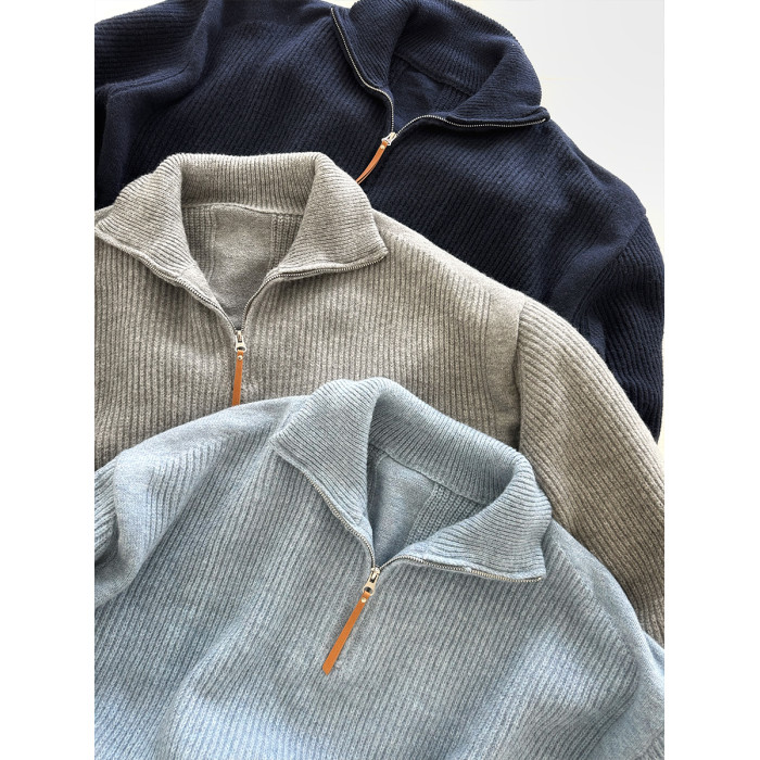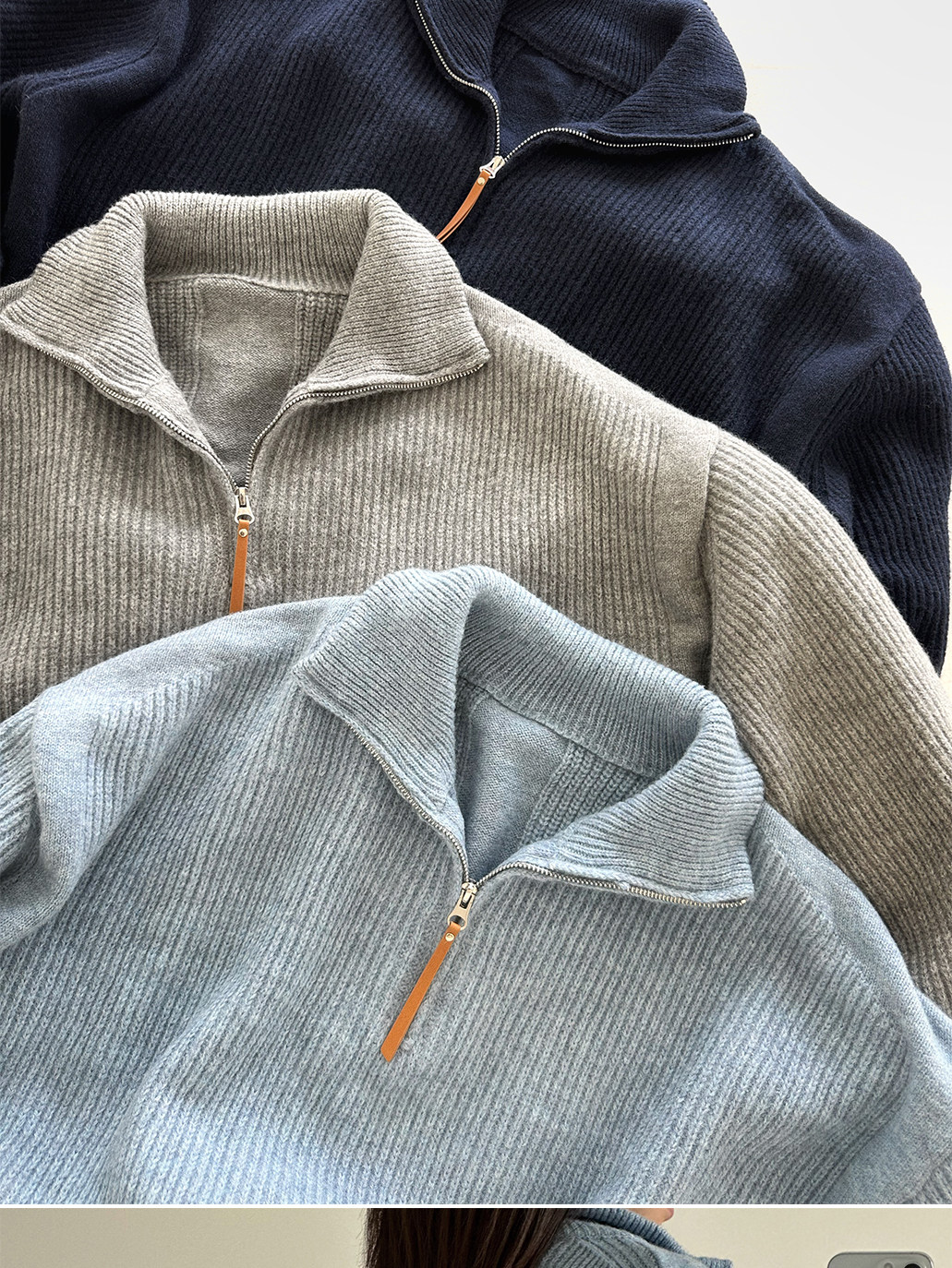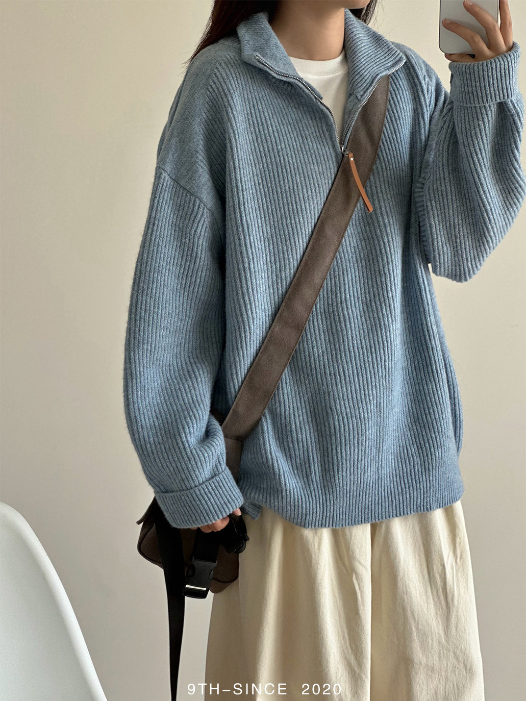 9TH半拉鍊羊毛針織衫 毛衣冬季保暖日系復古套頭寬松秋冬上衣開衫
