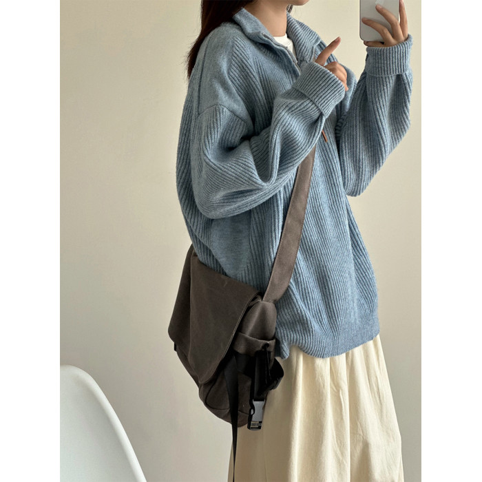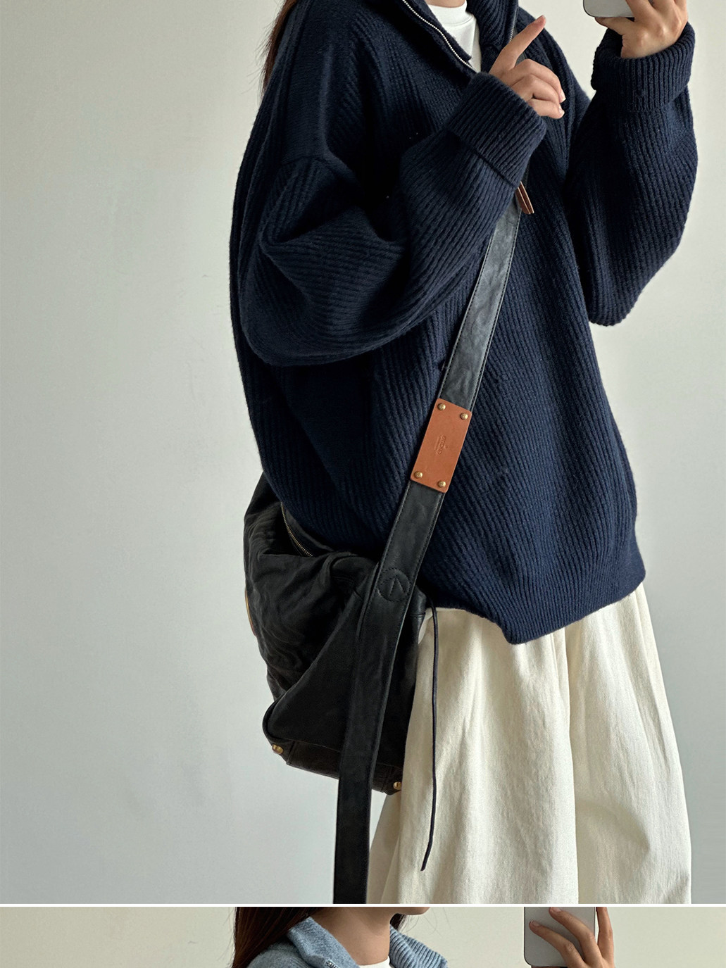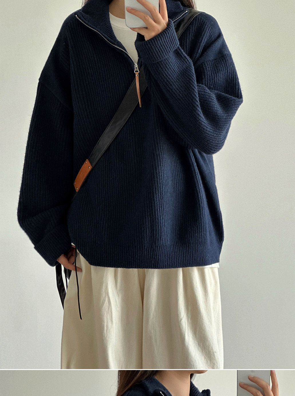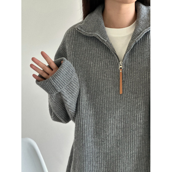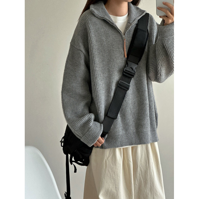 9TH半拉鍊羊毛針織衫 毛衣冬季保暖日系復古套頭寬松秋冬上衣開衫