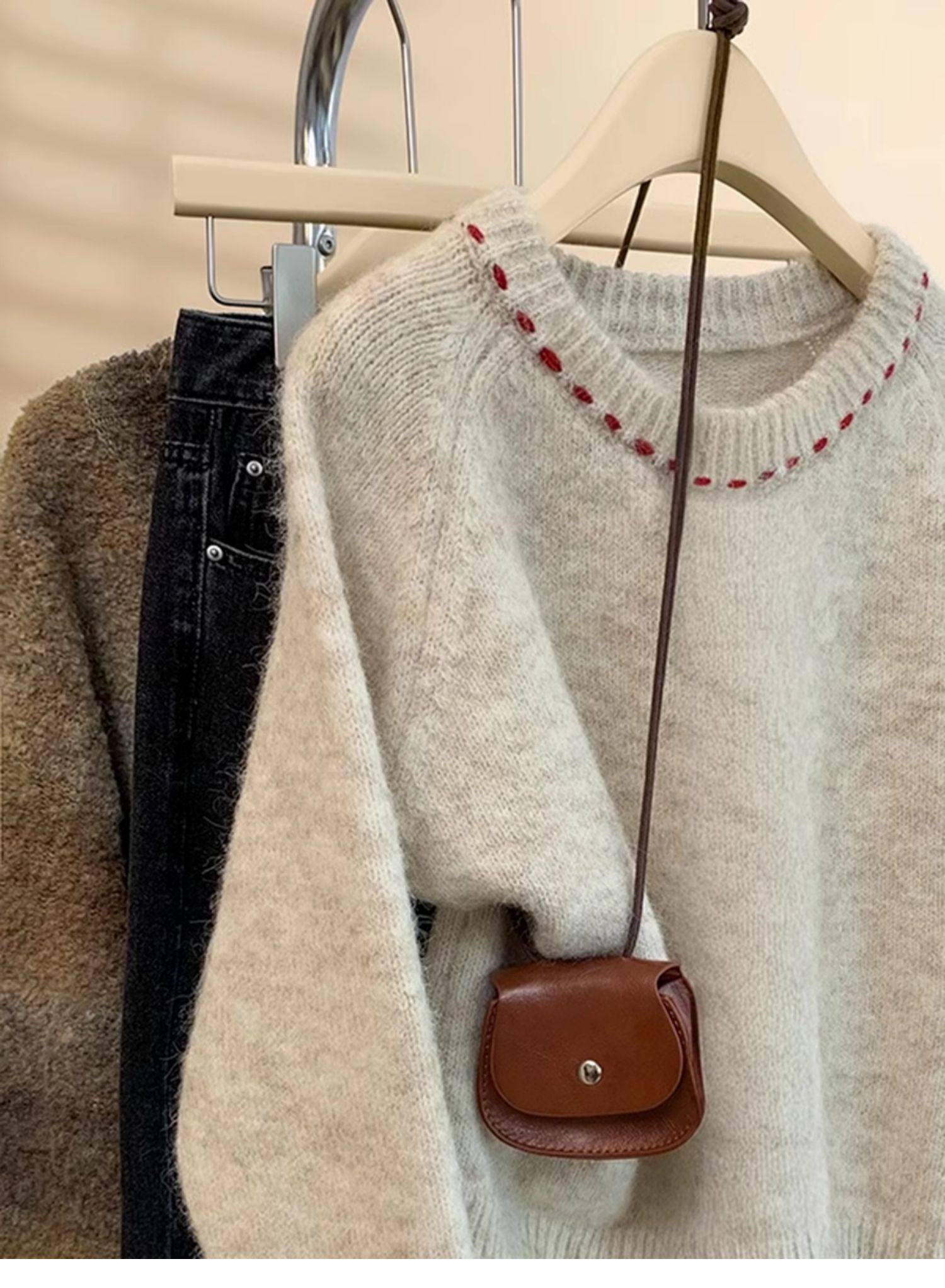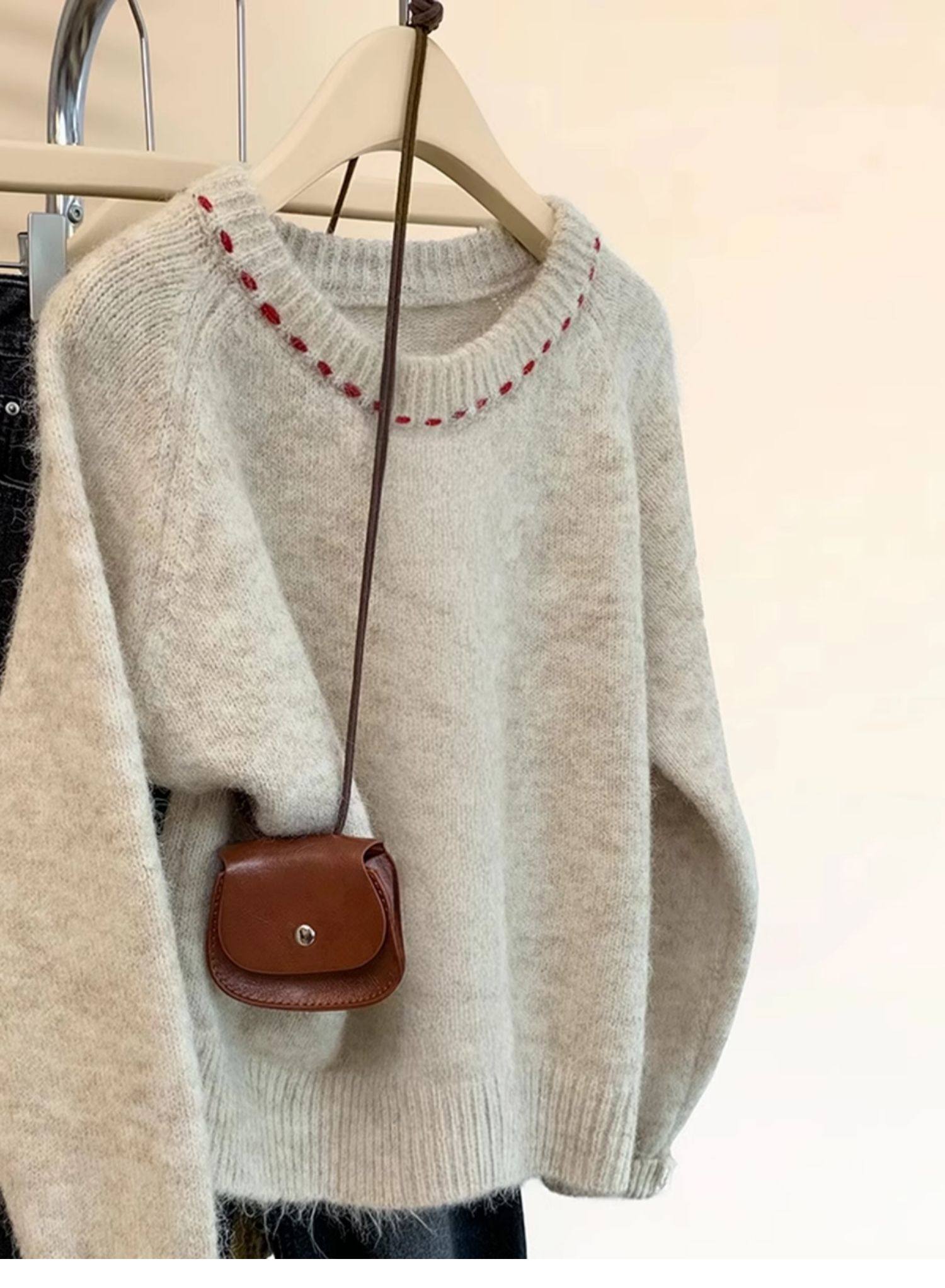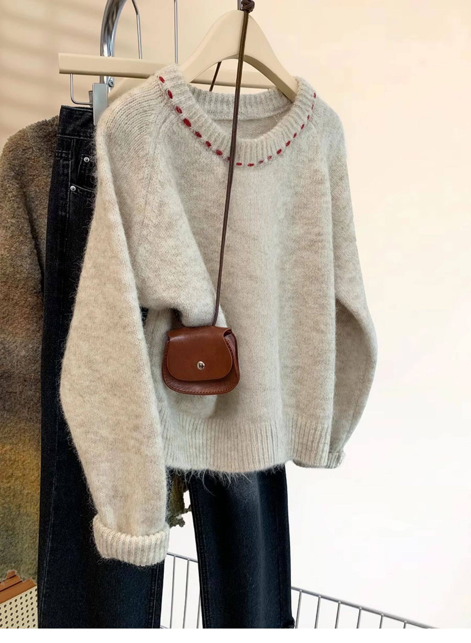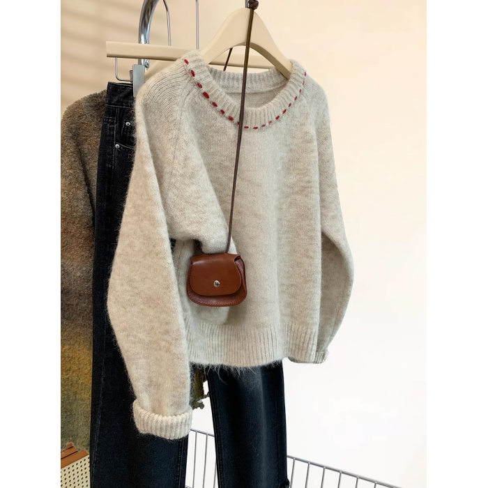 杏色圓領套頭軟糯毛衣女秋冬2025新款慵懶加厚內搭打底針織衫秋冬