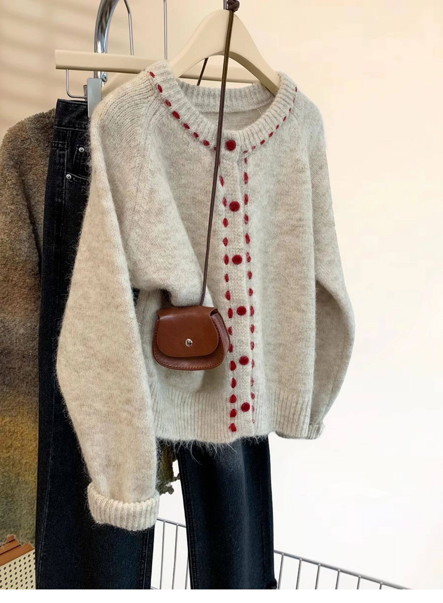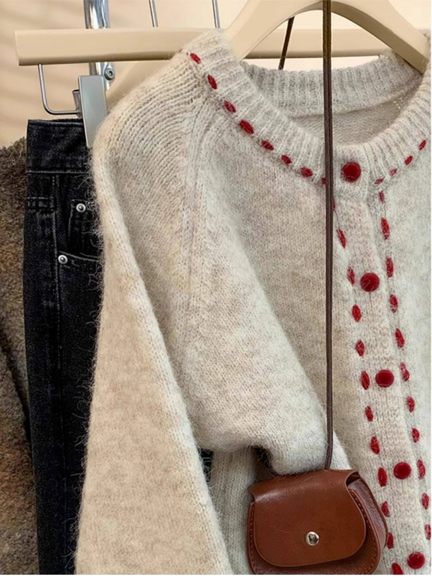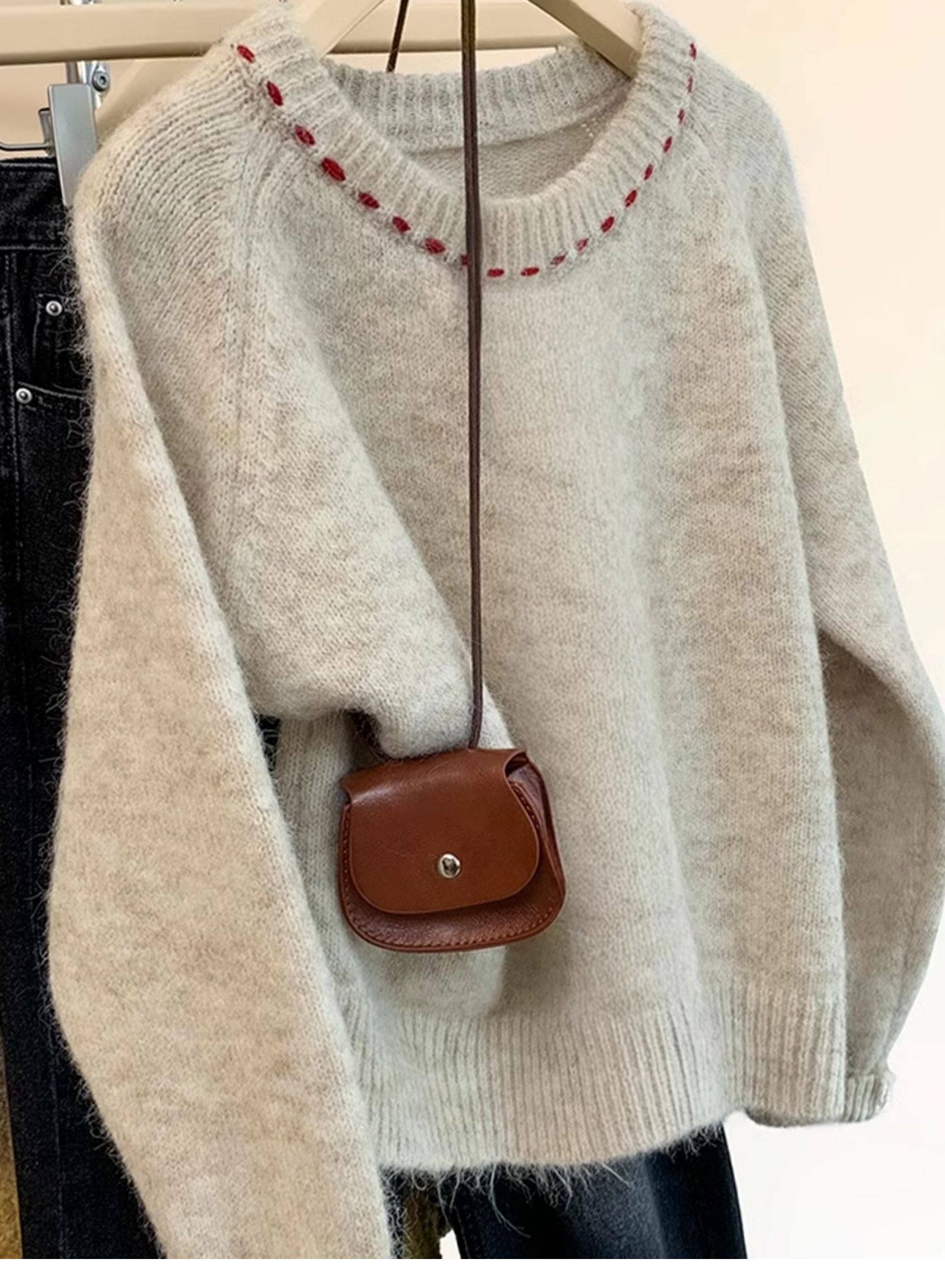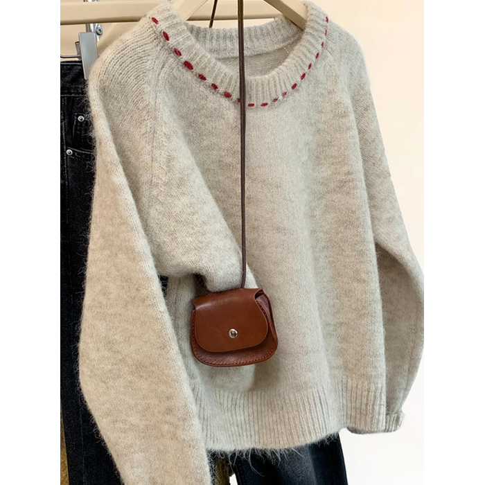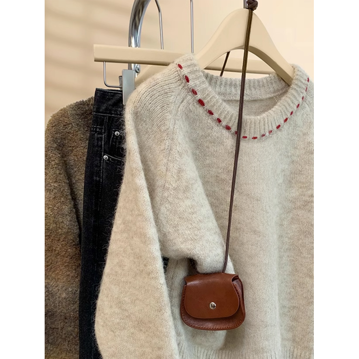 杏色圓領套頭軟糯毛衣女秋冬2025新款慵懶加厚內搭打底針織衫秋冬