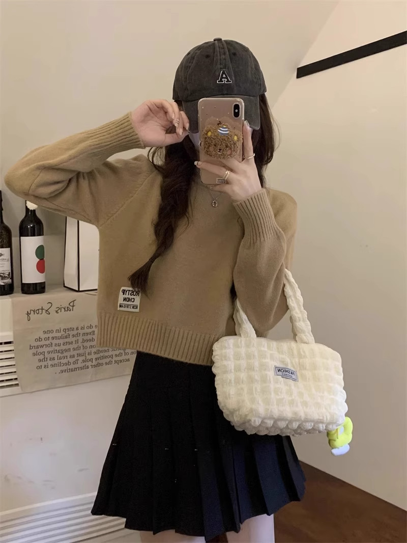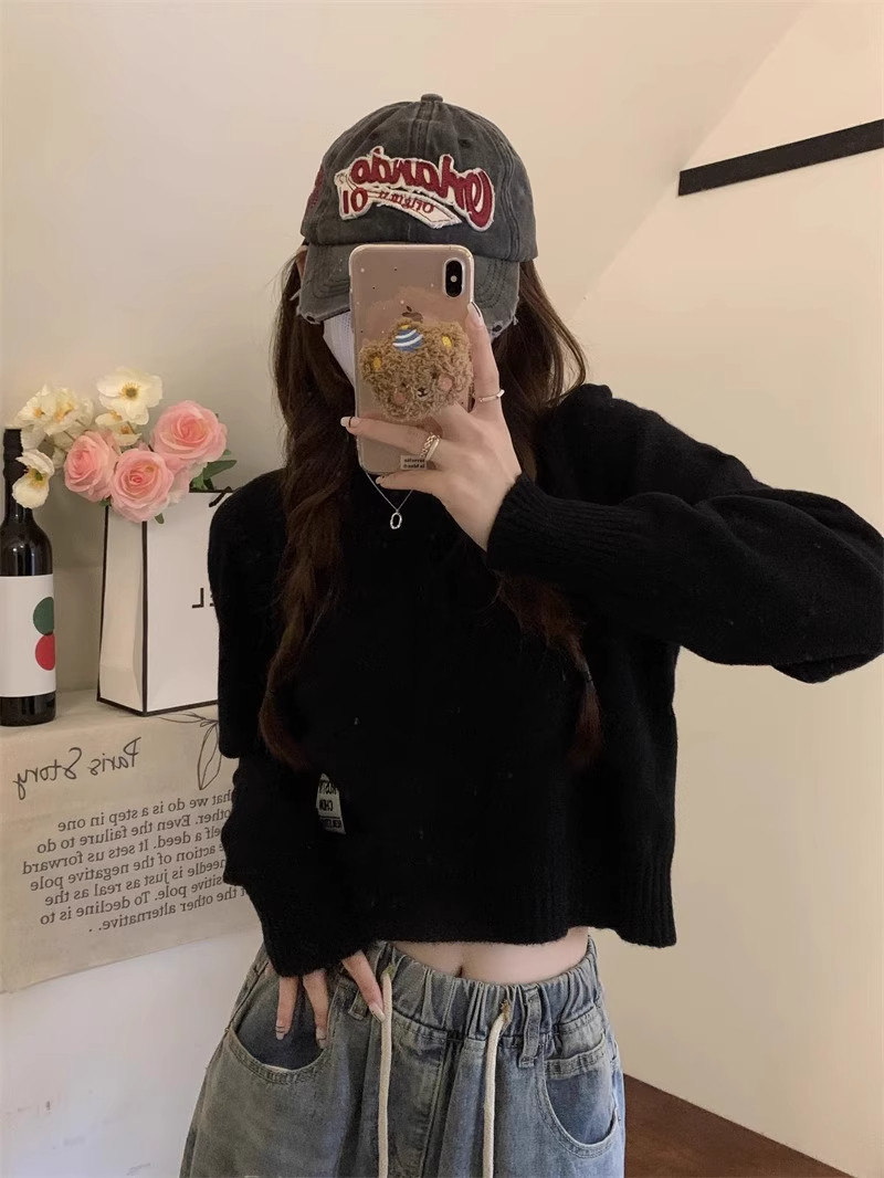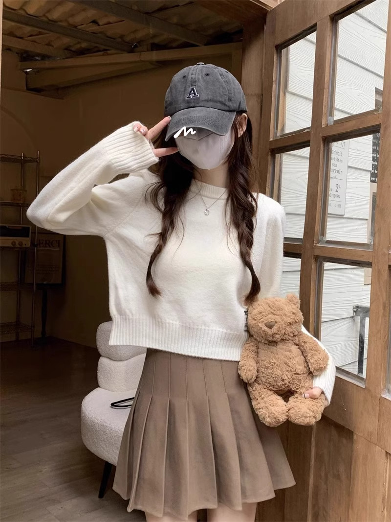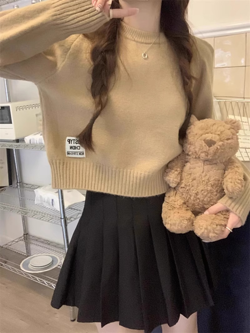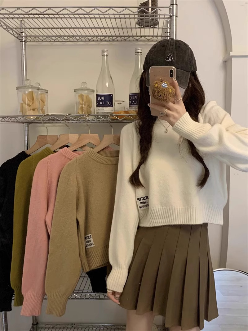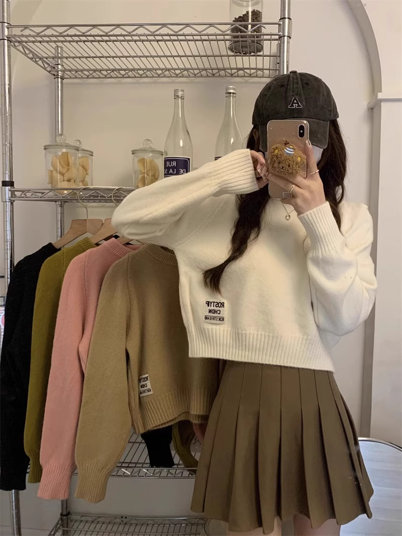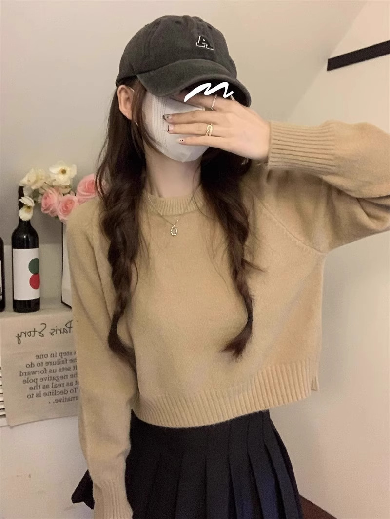 秋冬季短款小個子內搭毛衣女加厚寬松時尚新款百搭針織打底衫上衣